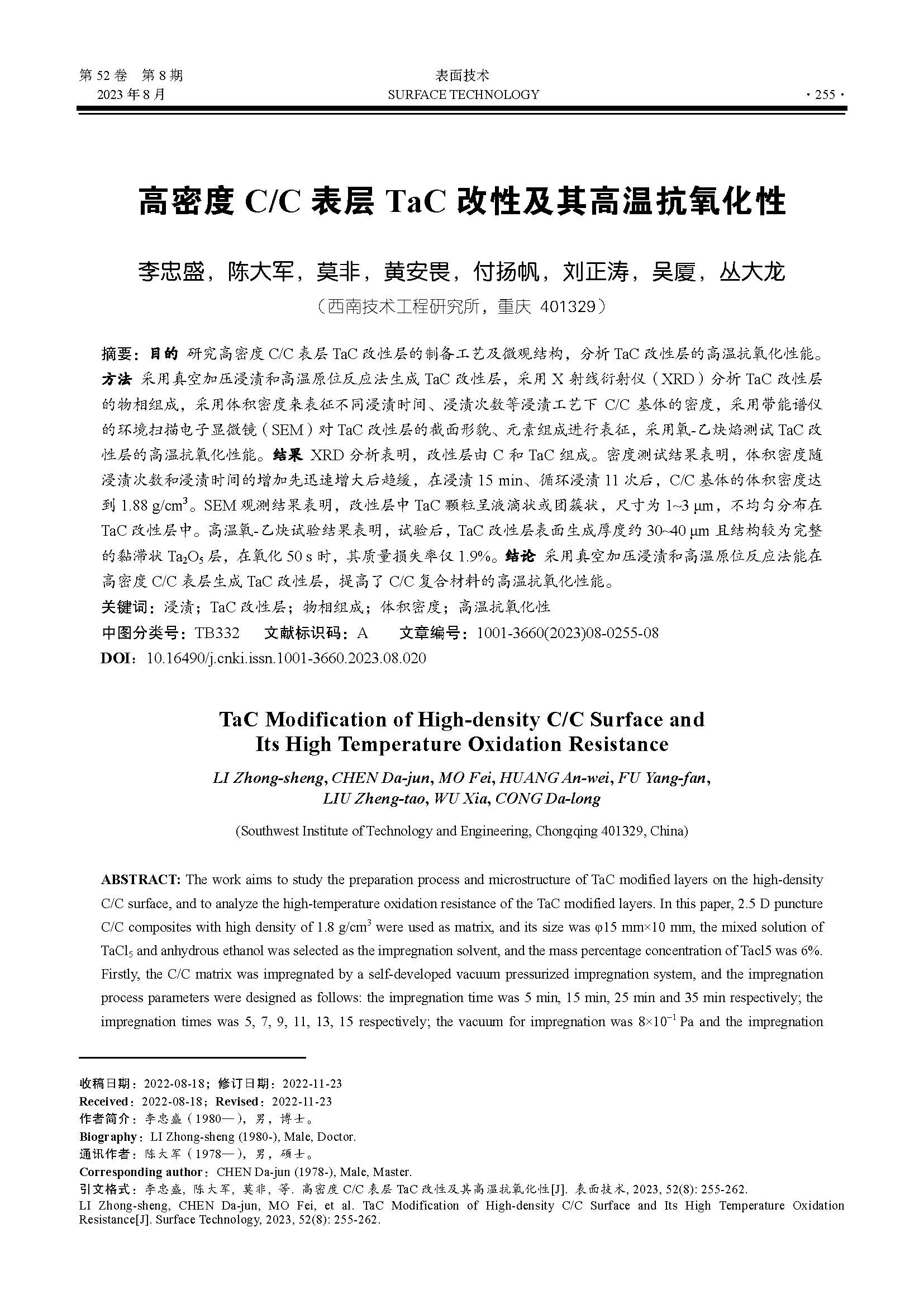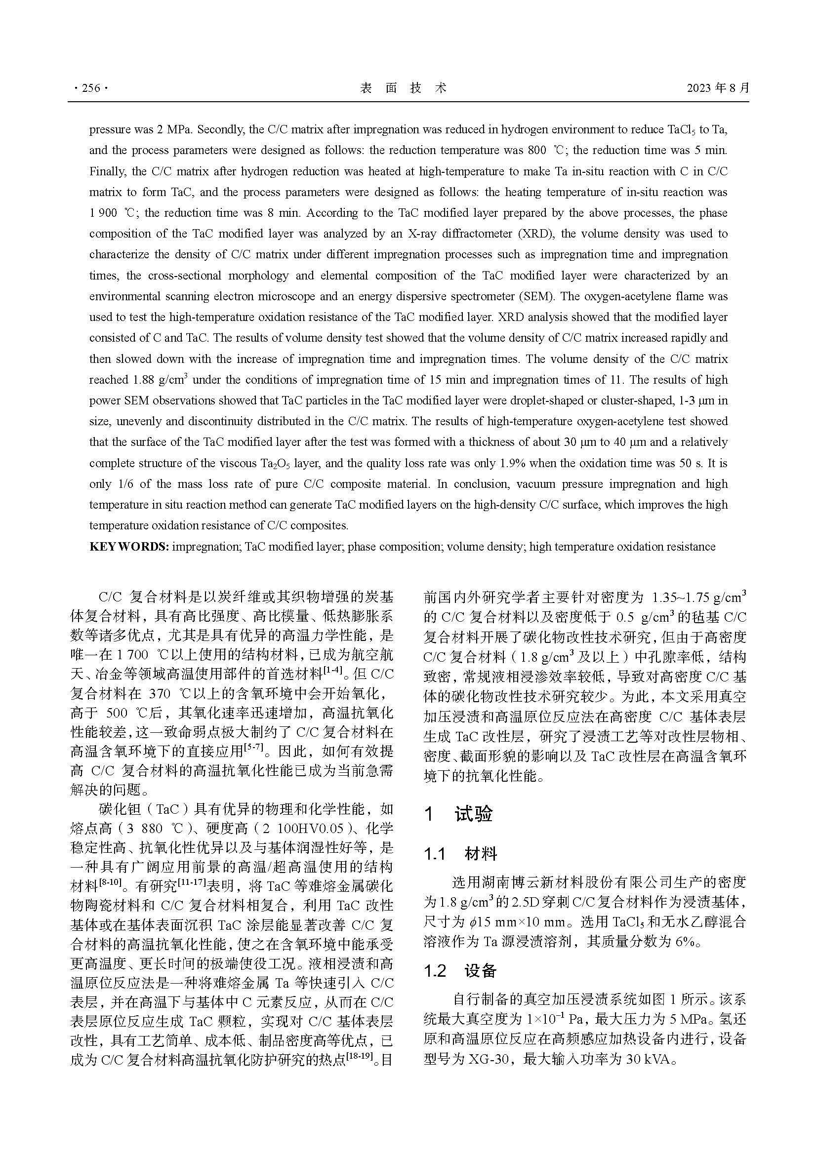 高密度 C/C 表层 TaC 改性及其高温抗氧化性