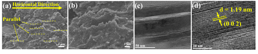 图4. (a) 纳米片在涂层中定向排列的机理;(b-d) 复合涂层抗磨损机理。