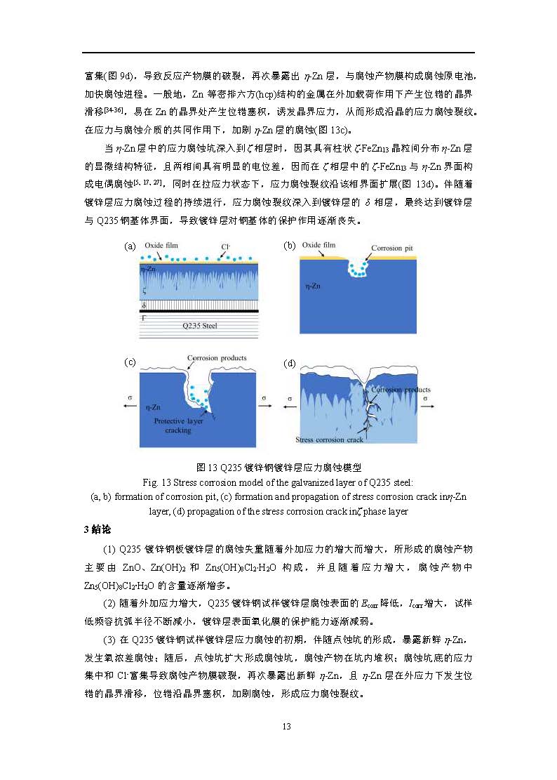 Q235钢结构表面热镀锌层的应力腐蚀及其机理