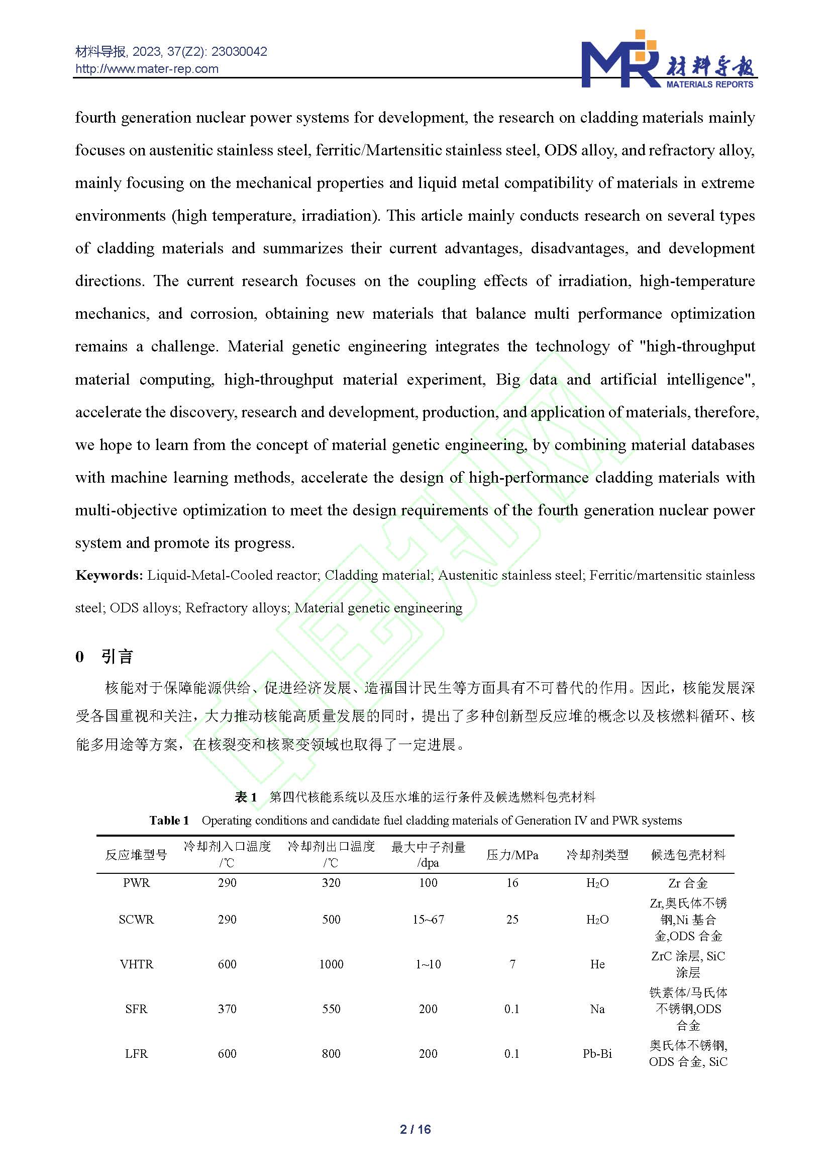 面向液态金属冷却堆的高性能包壳材料研究进展