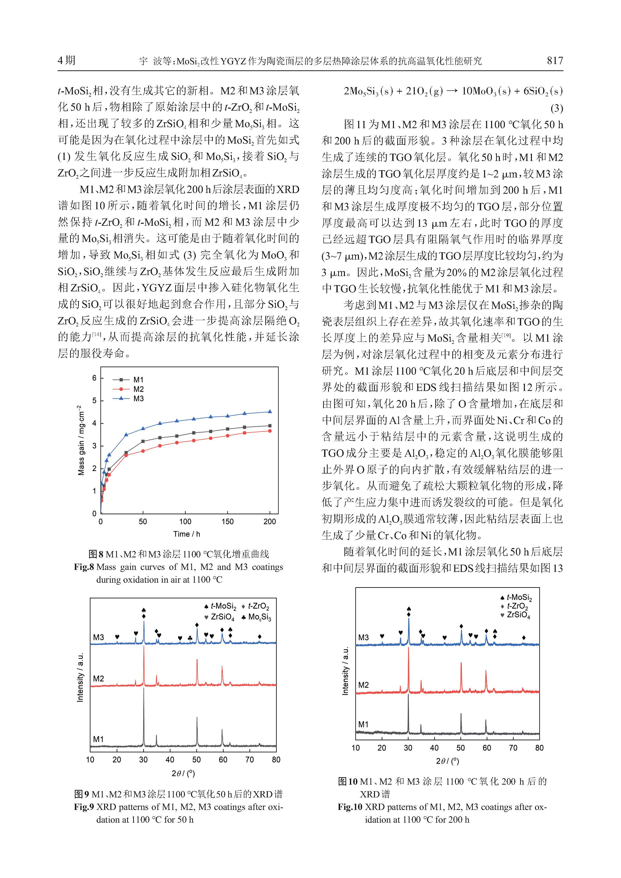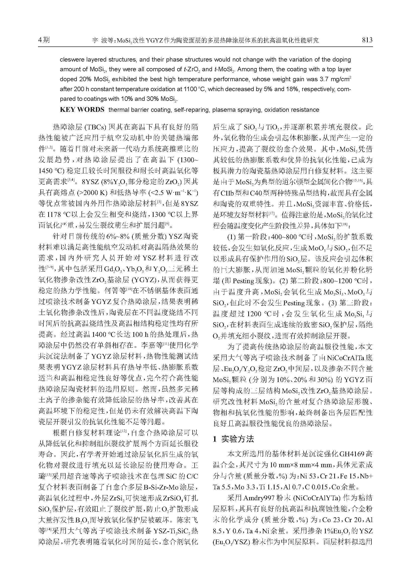 MoSi2 改性YGYZ作为陶瓷面层的多层热障涂层体系的抗高温氧化性能研究