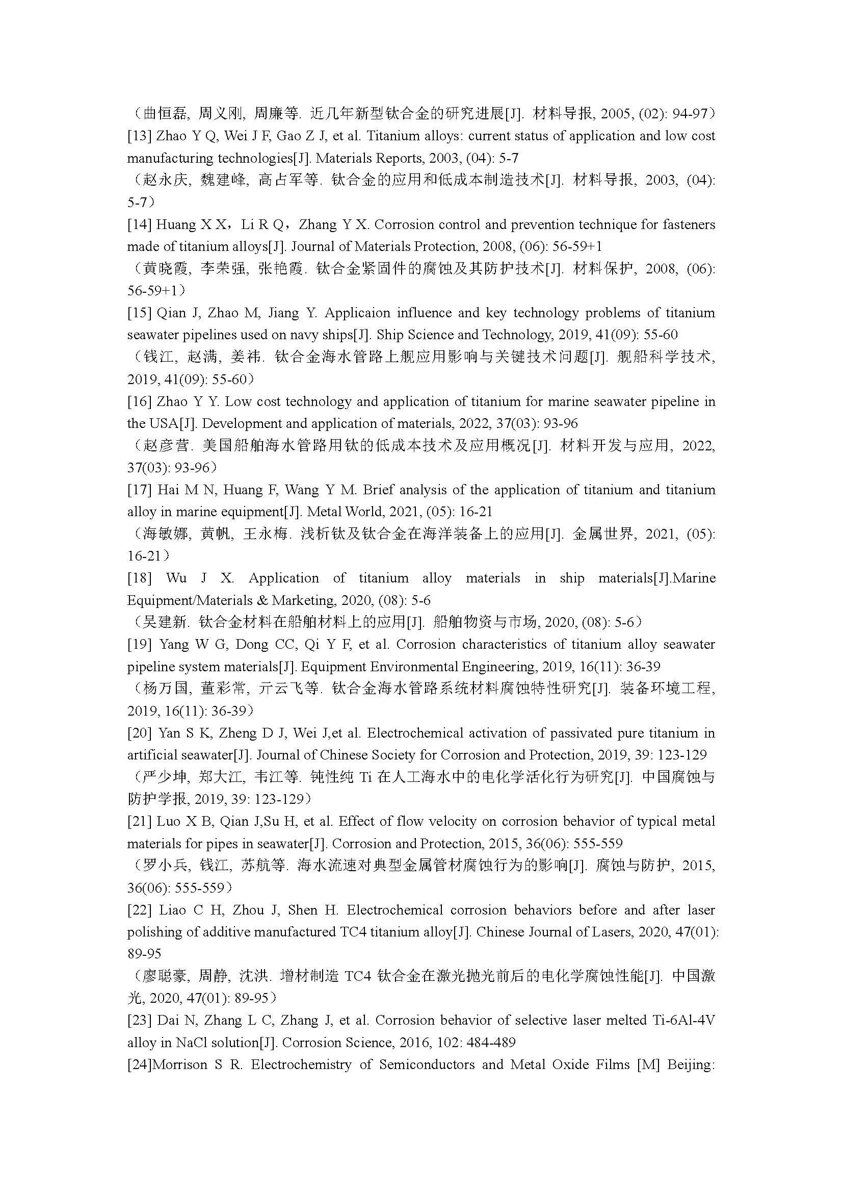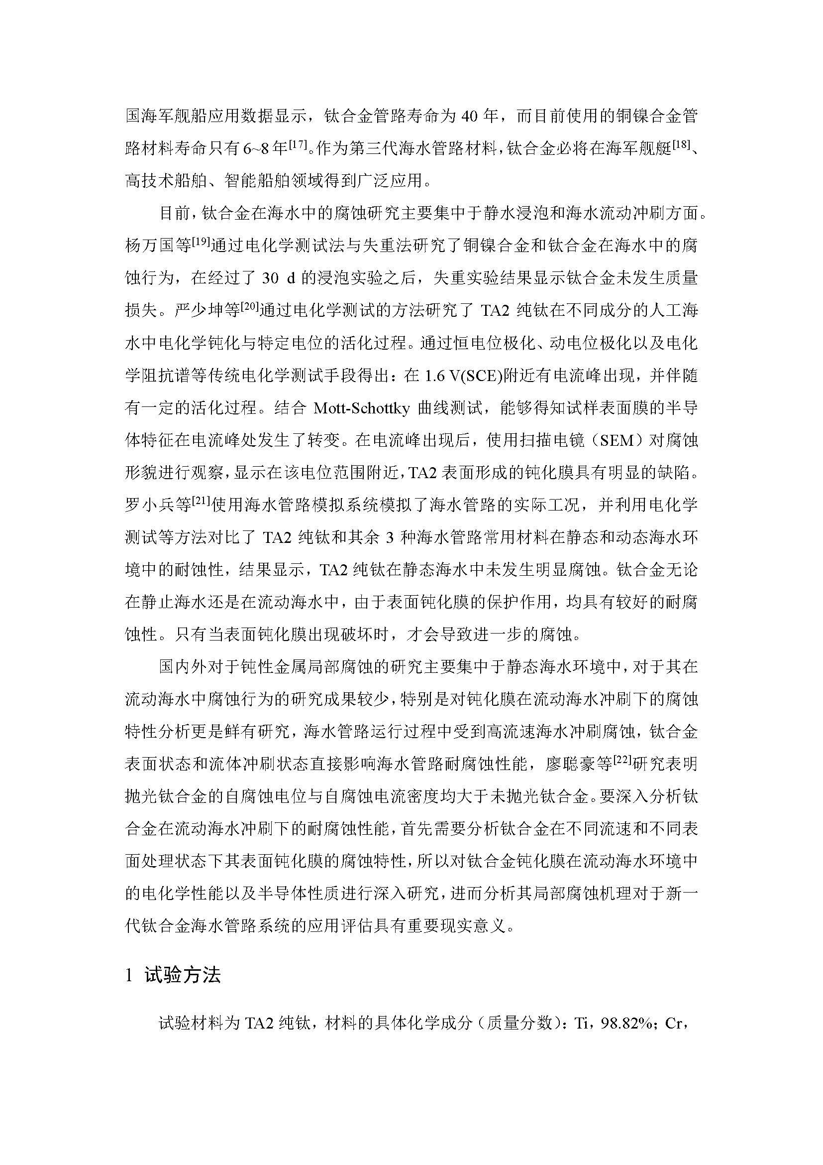 流动海水冲刷下TA2纯钛管路钝化膜腐蚀特性研究