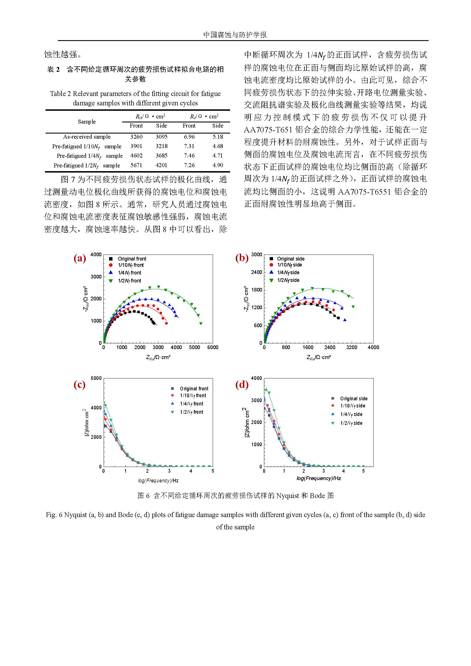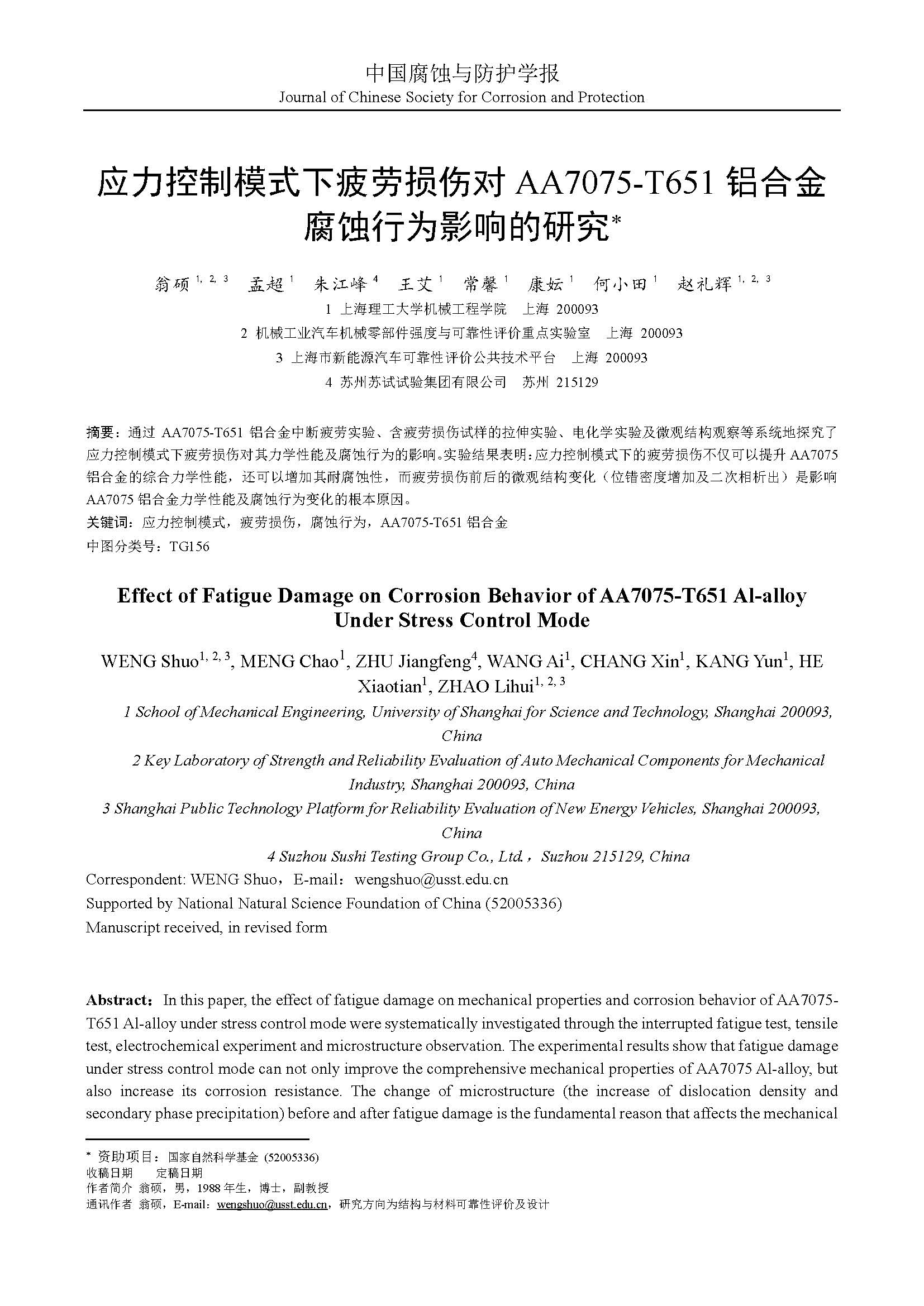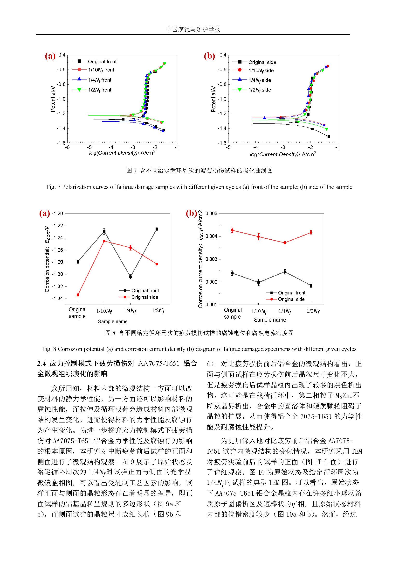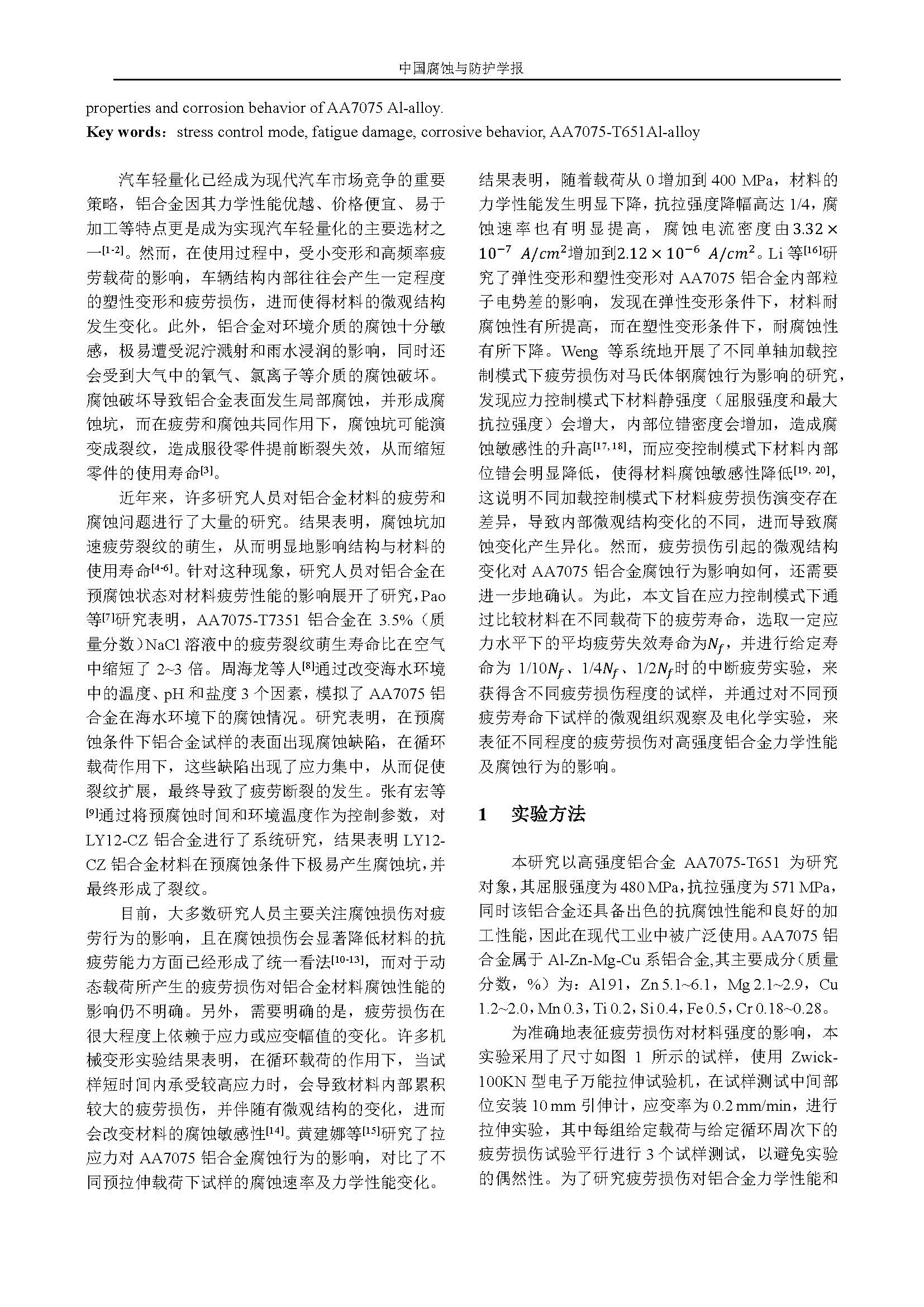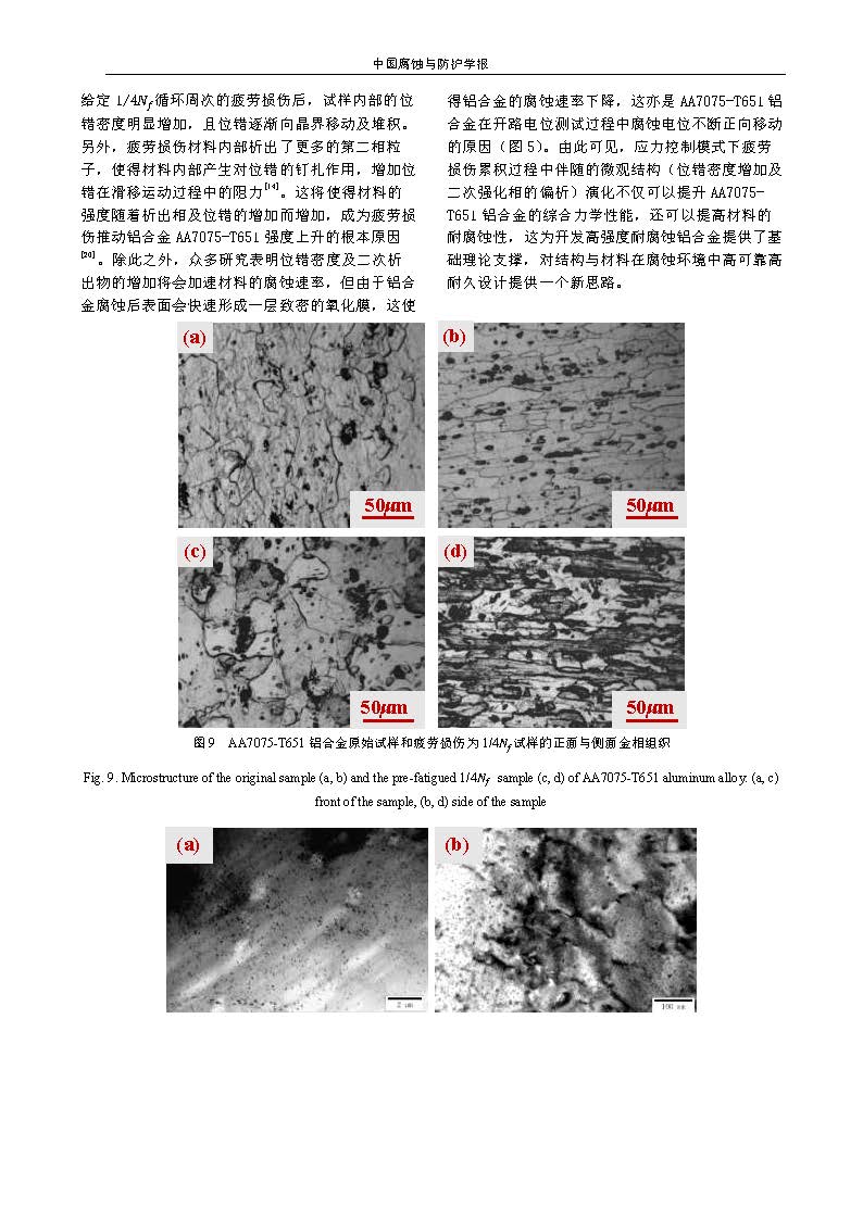 应力控制模式下疲劳损伤对AA7075-T651铝合金腐蚀行为影响的研究