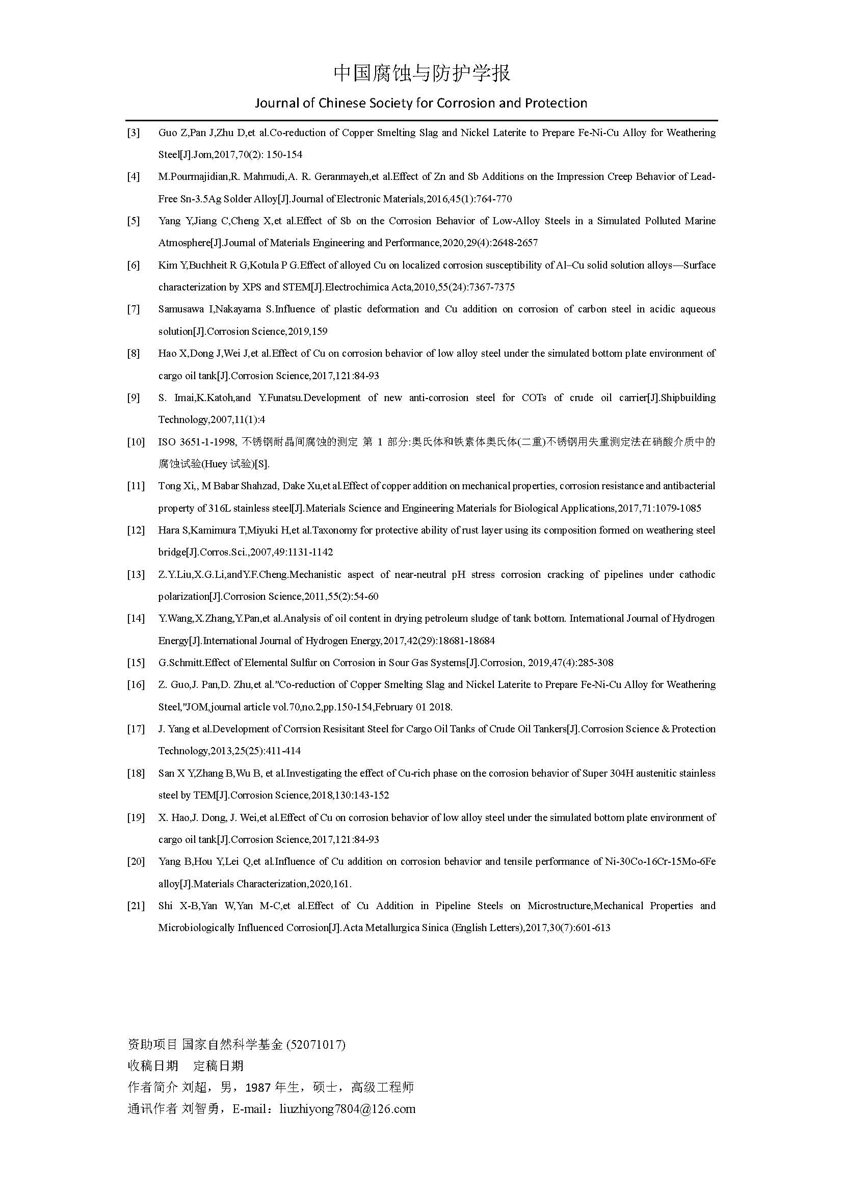 来源:中国腐蚀与防护学报