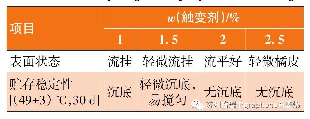 为解决填料导致的涂料沉底问题,加入触变剂有机膨润土881B。对触变剂质量分数进行研究,结果见表8。