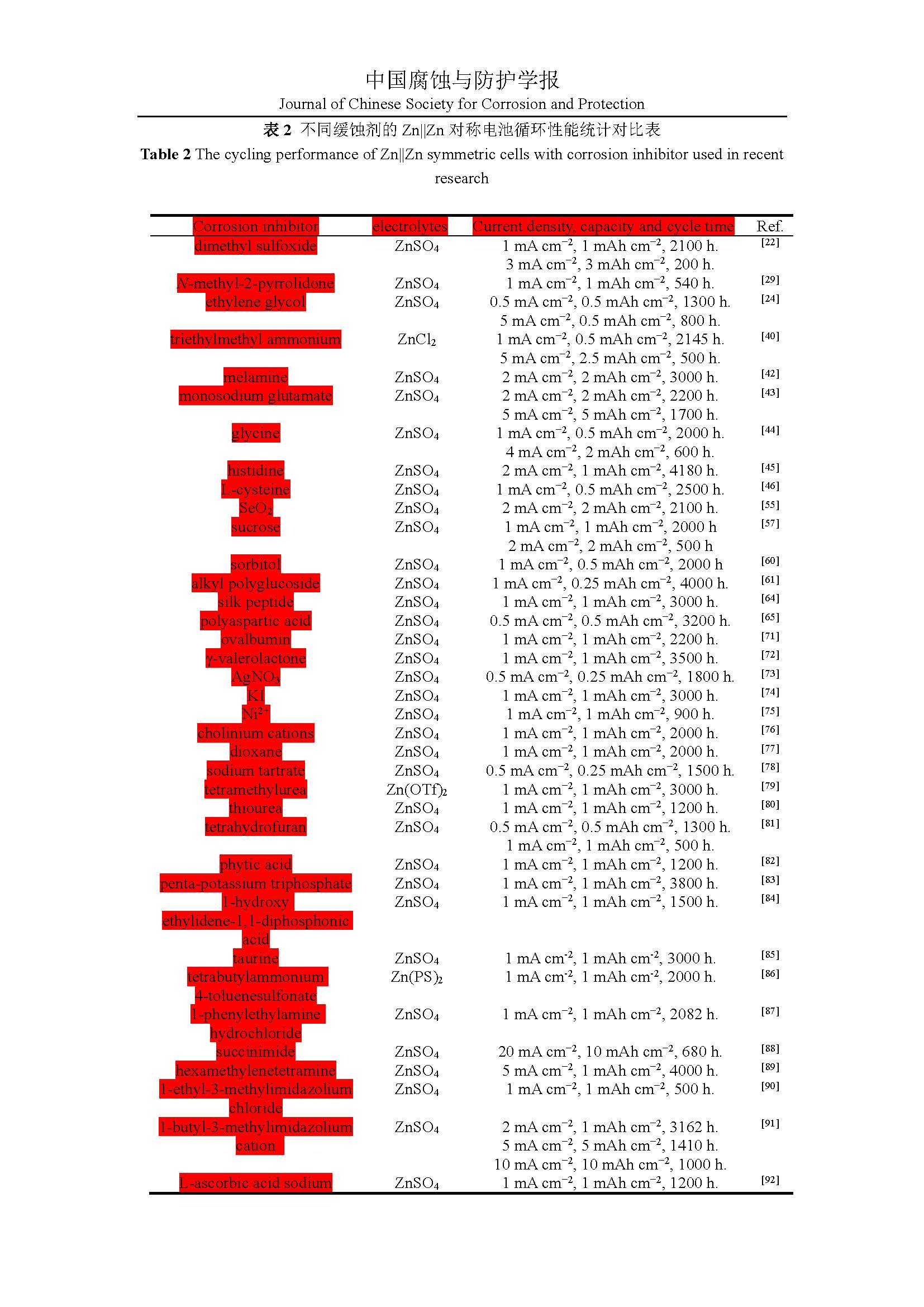 中性水系锌离子电池负极缓蚀剂