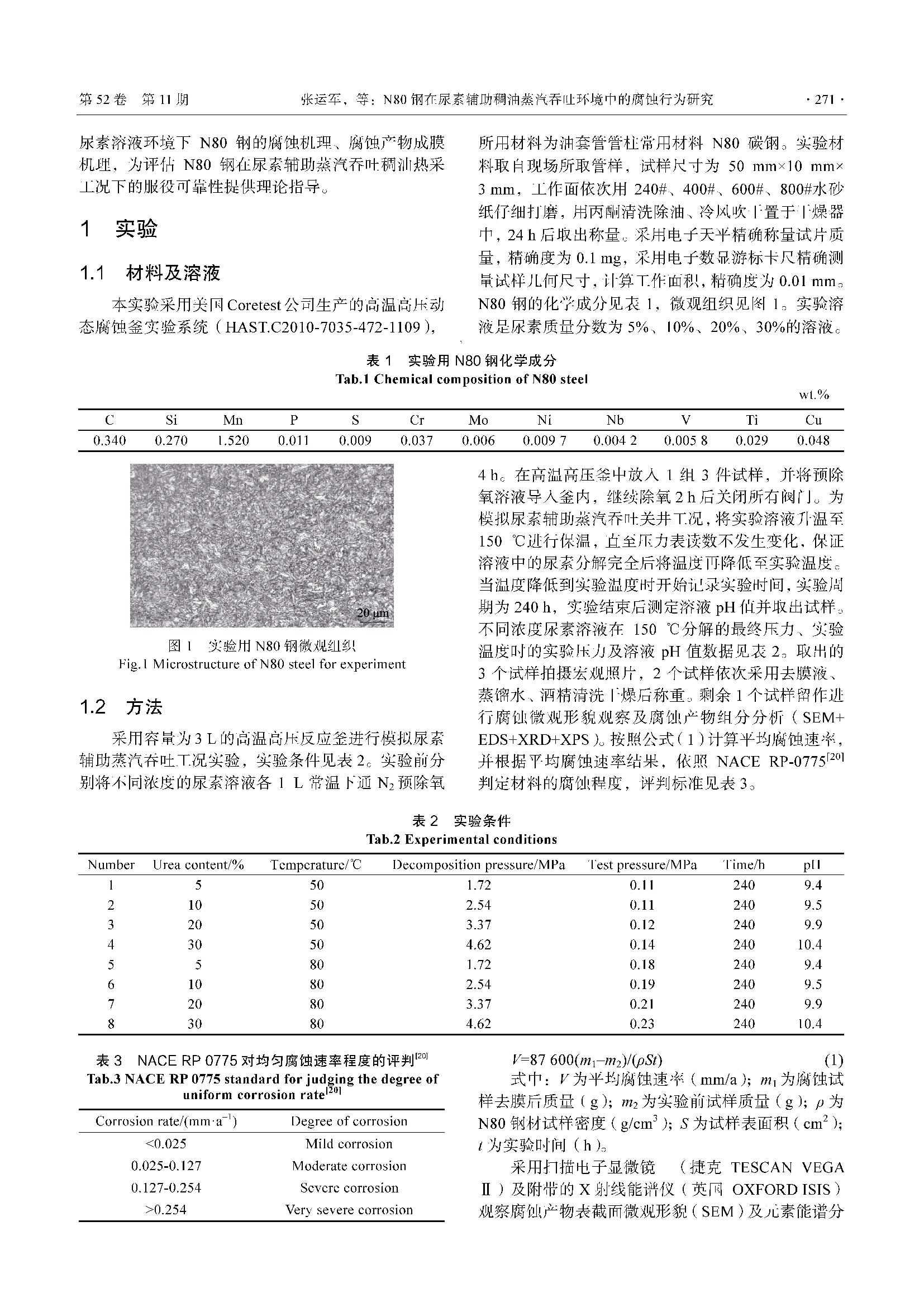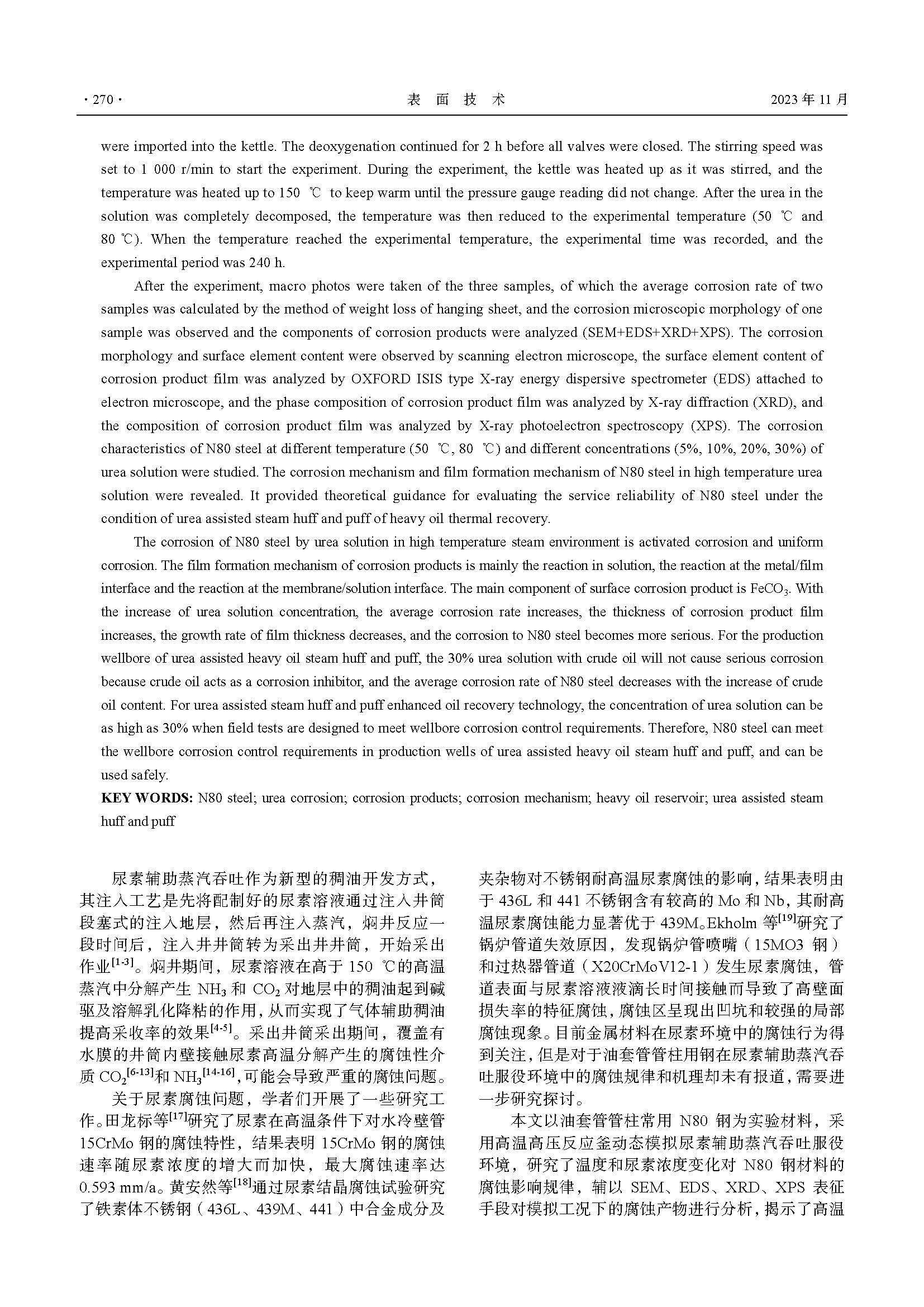 N80钢在尿素辅助稠油蒸汽吞吐环境中的腐蚀行为研究