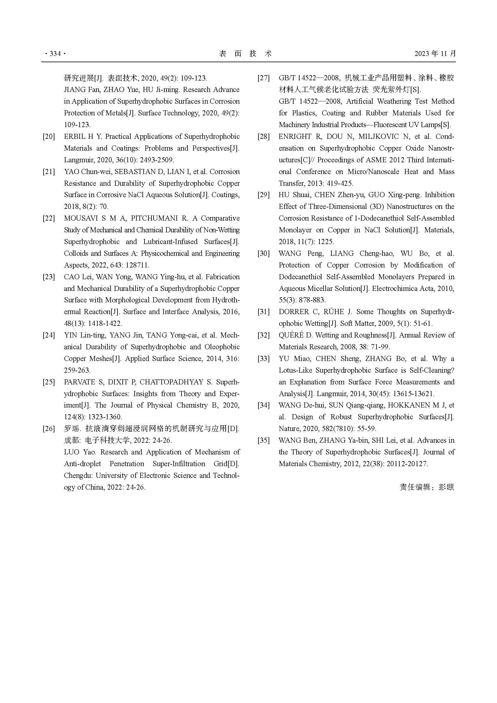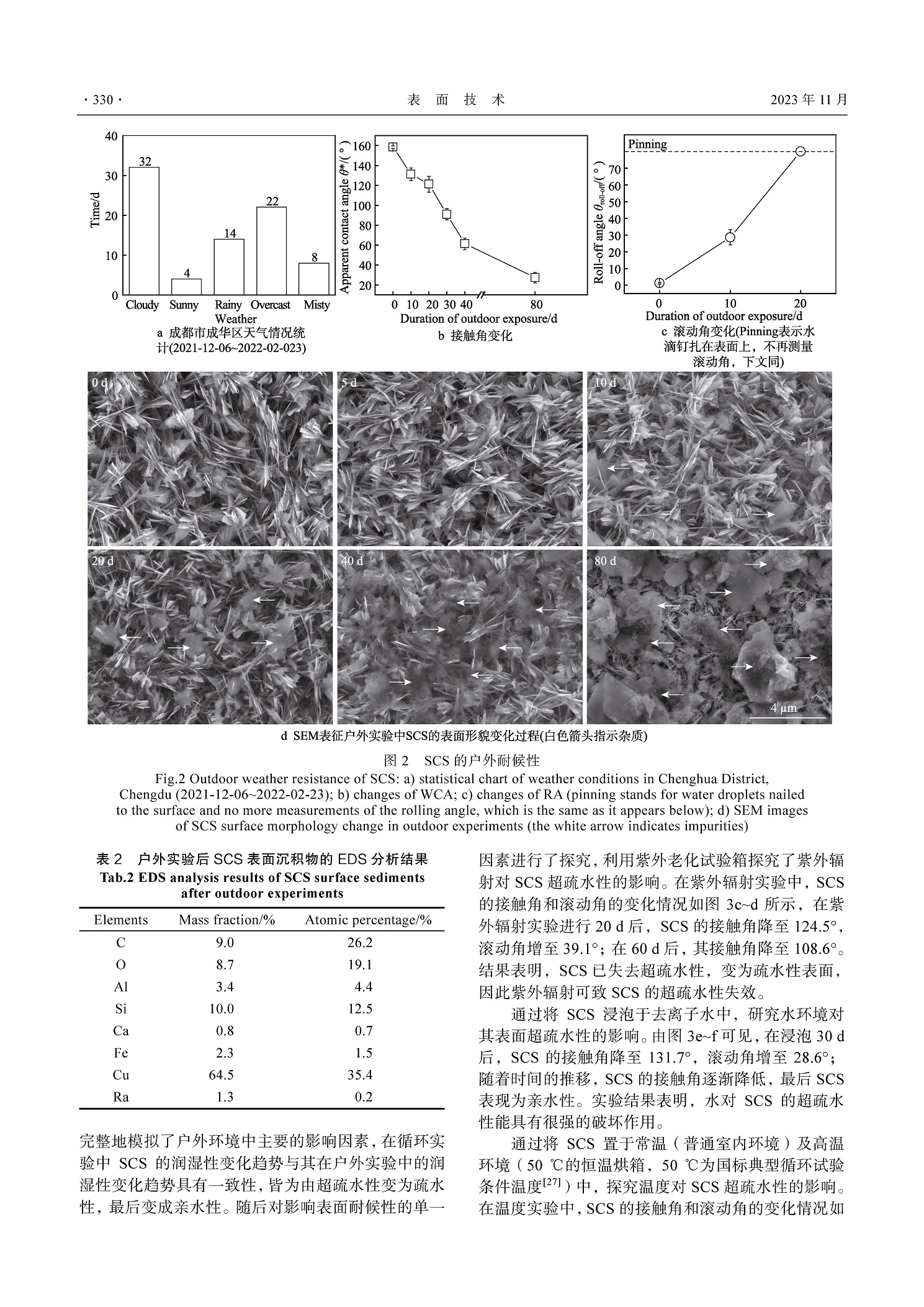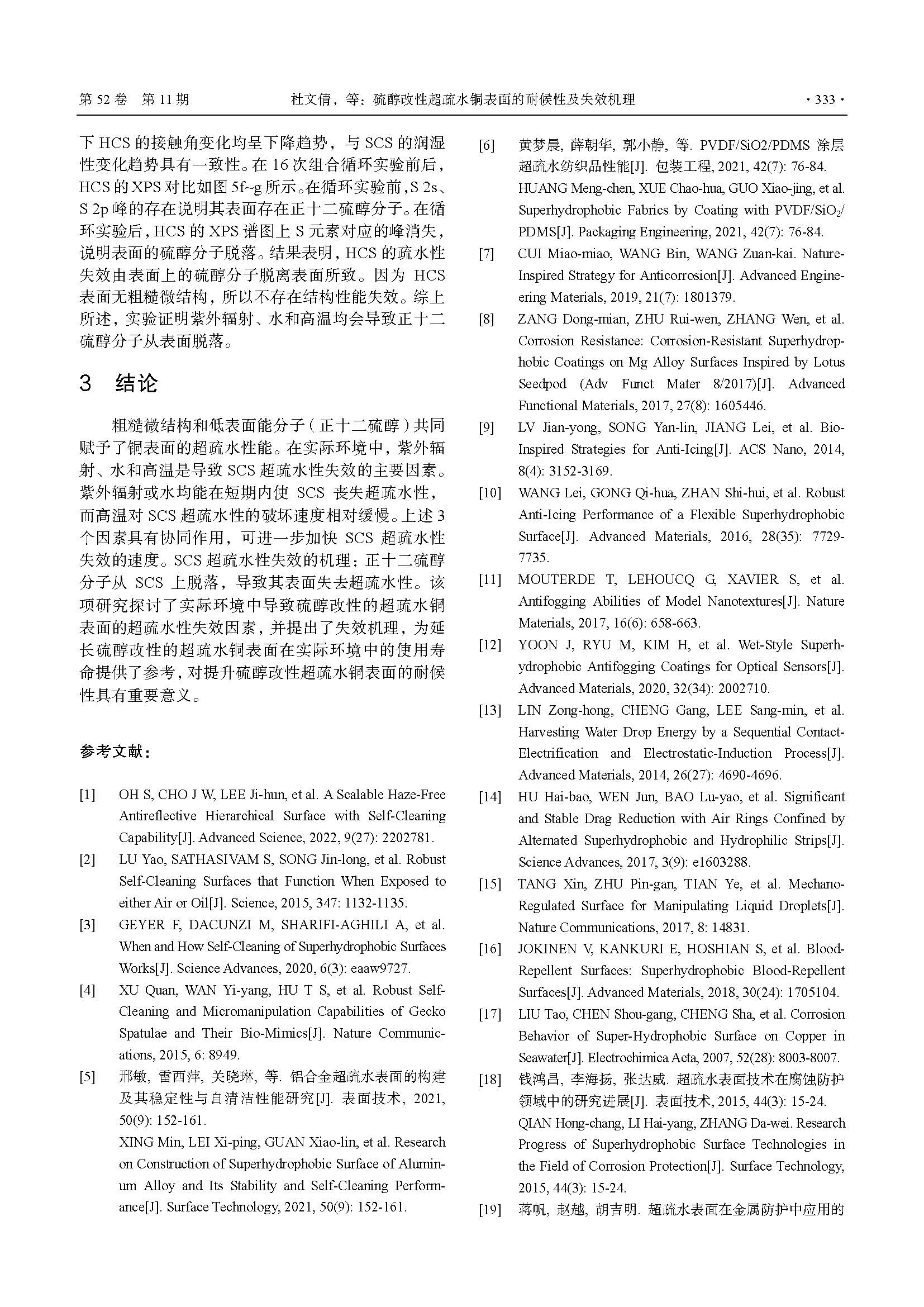 硫醇改性超疏水铜表面的耐候性及失效机理