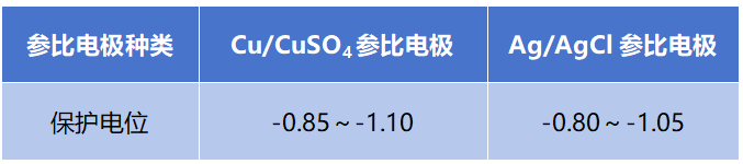 牺牲阳极阴极保护电位范围