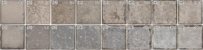 腐蚀失重速率的测定按照JBT7901-1999[27]开展。首先采用精密天平 (精度0.1 mg) 准确称量样品重量,然后分别在盐雾腐蚀实验第1、2、5、10、20和30 d将样品取出,按照GB/T16545-2015[28]规定去除腐蚀产物,清洗吹干后再次称量样品重量,腐蚀速率按如下公式计算[27]: