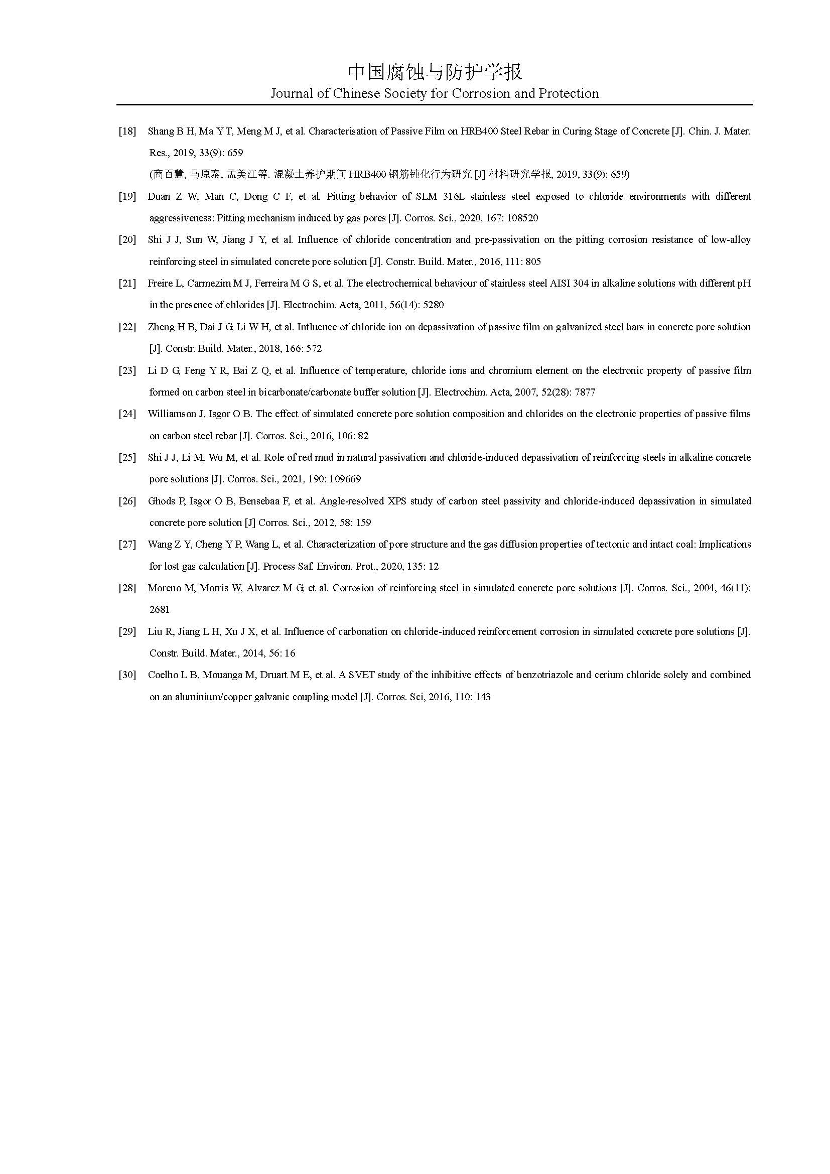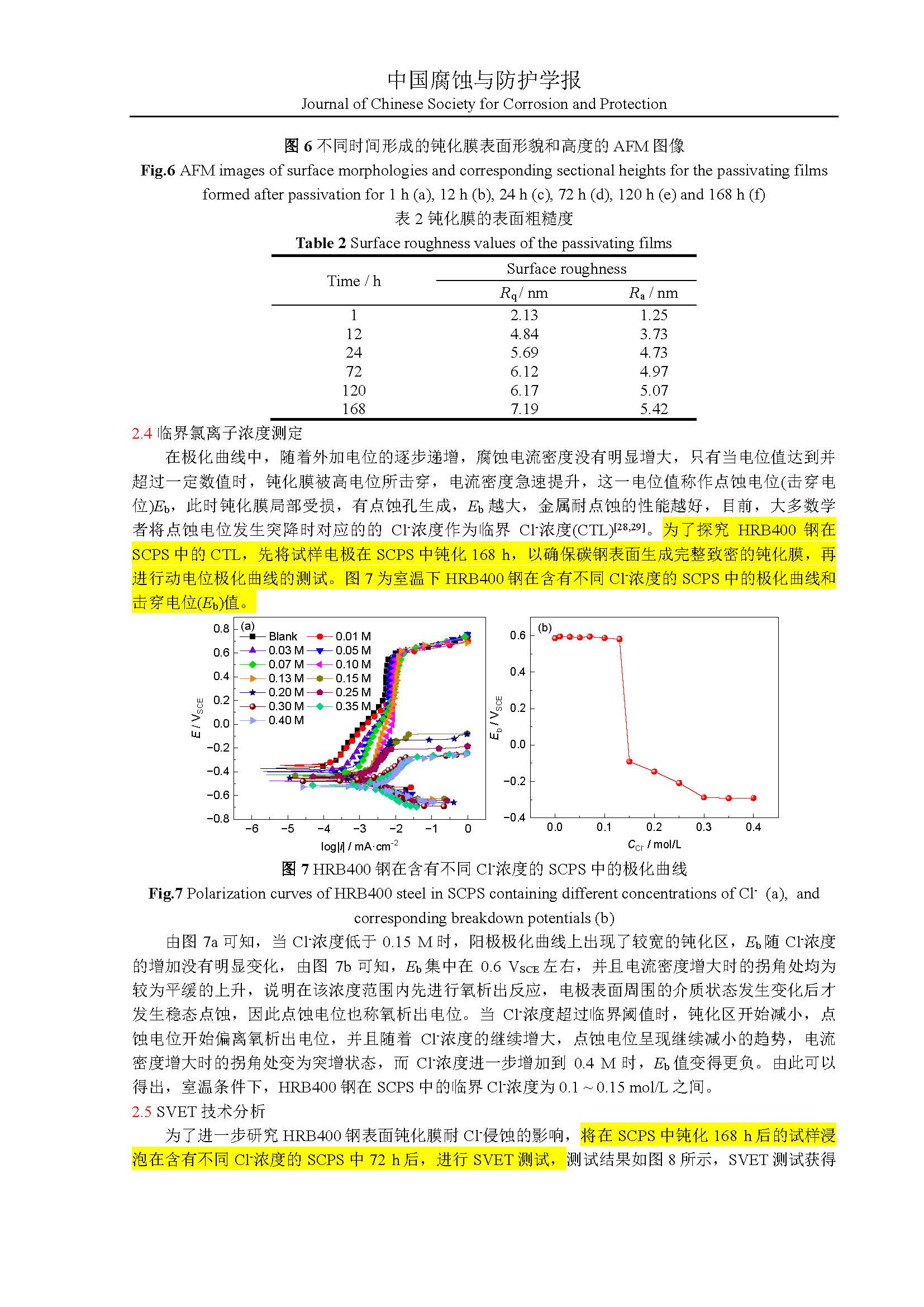 HRB400钢在模拟混凝土孔隙液中的自然钝化行为及耐蚀性能的研究