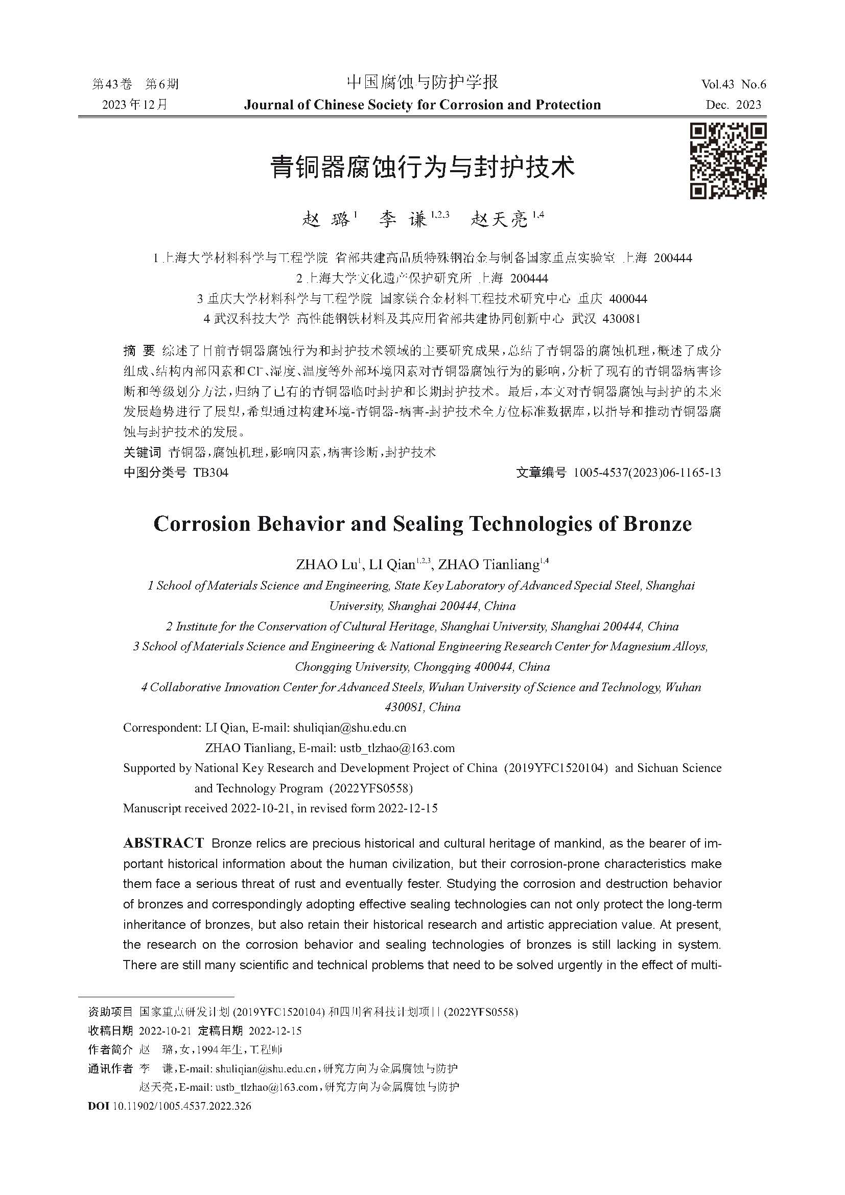 来源:中国腐蚀与防护学报