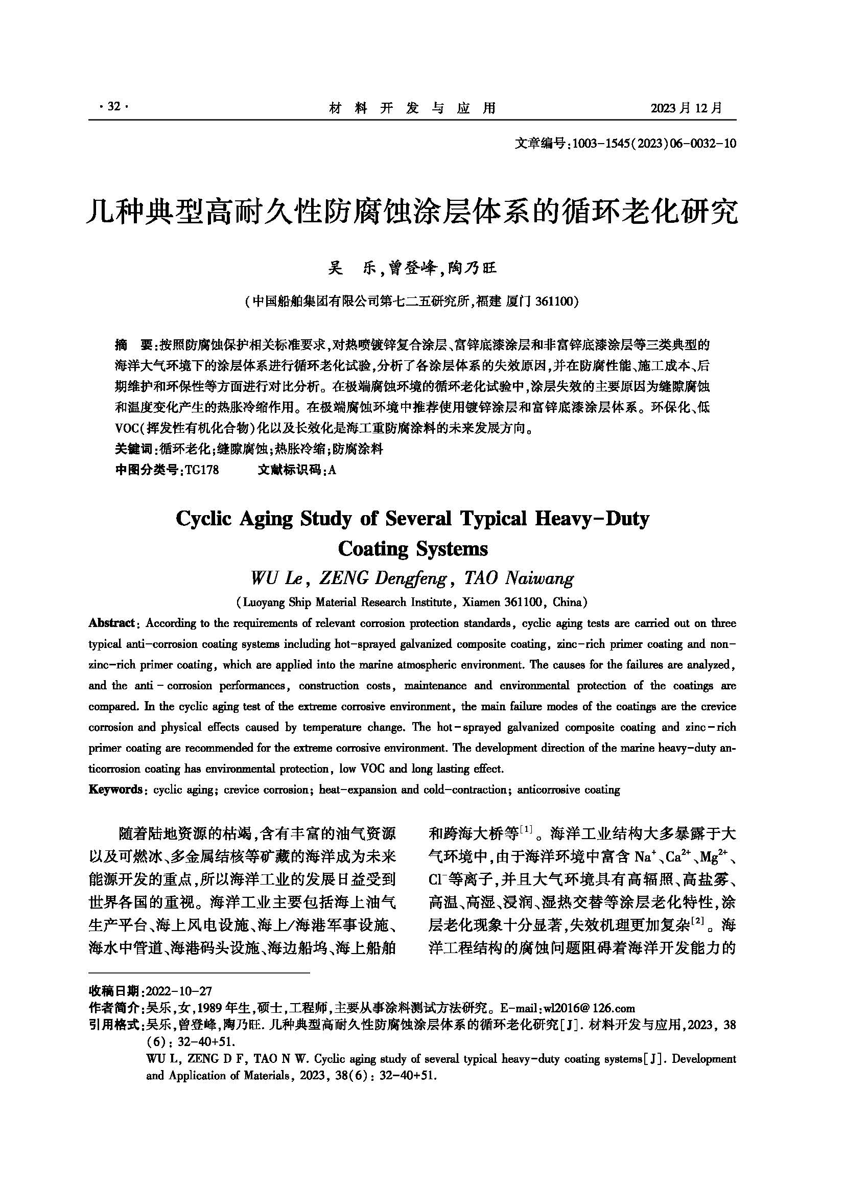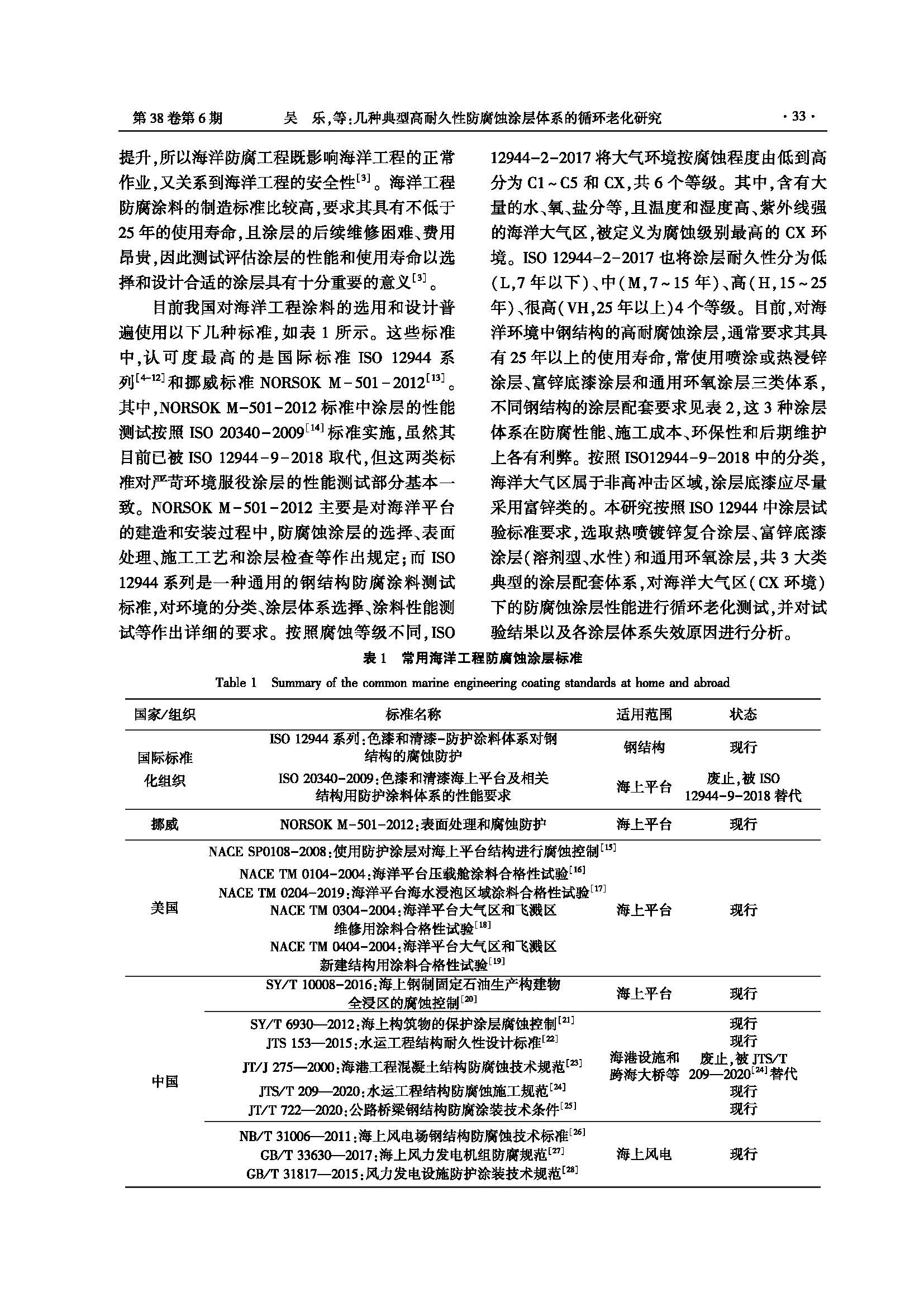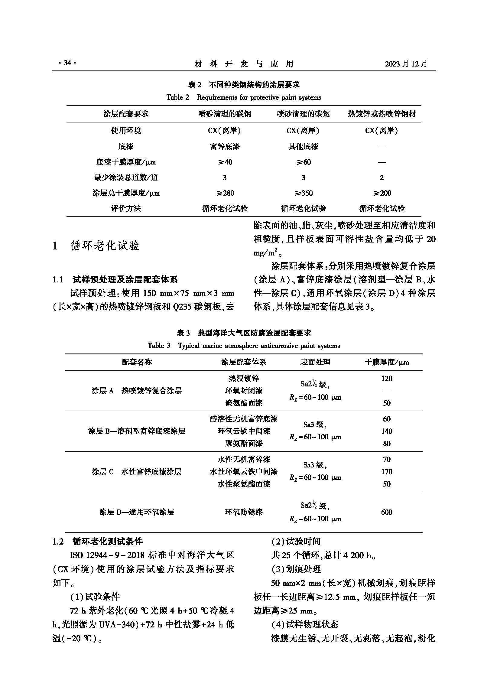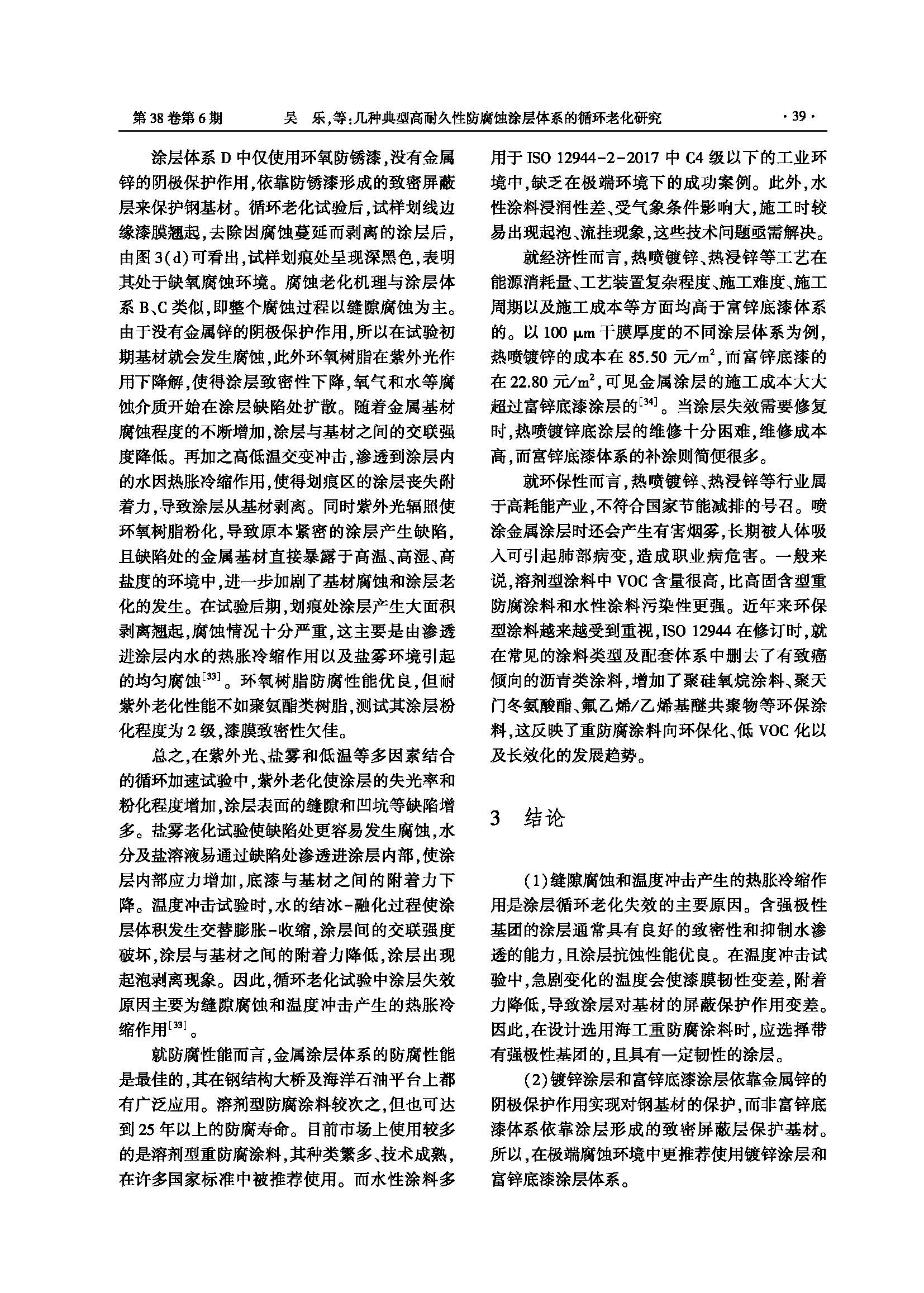 几种典型高耐久性防腐蚀涂层体系的循环老化研究