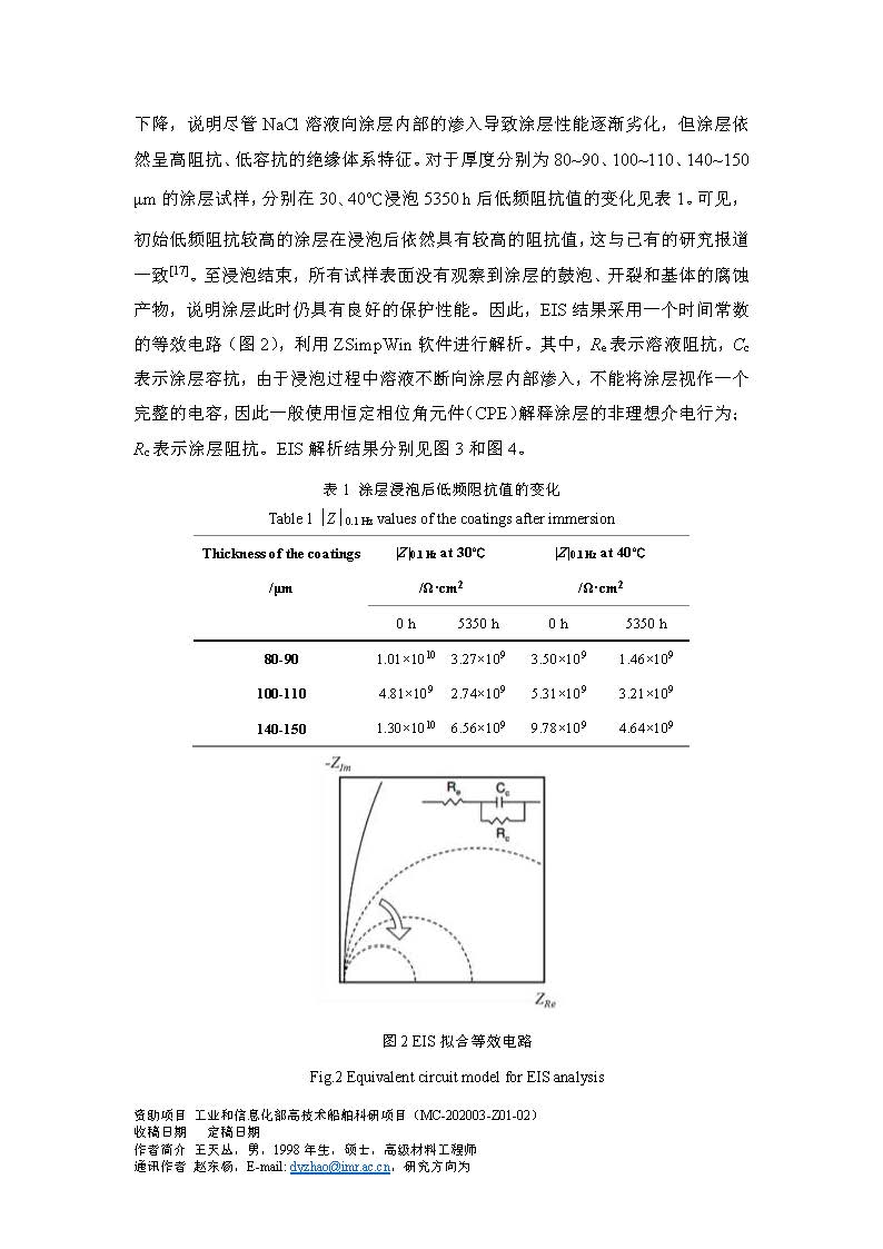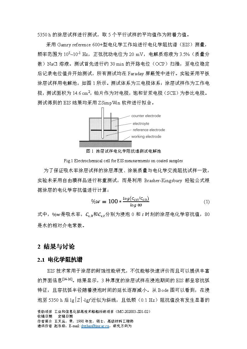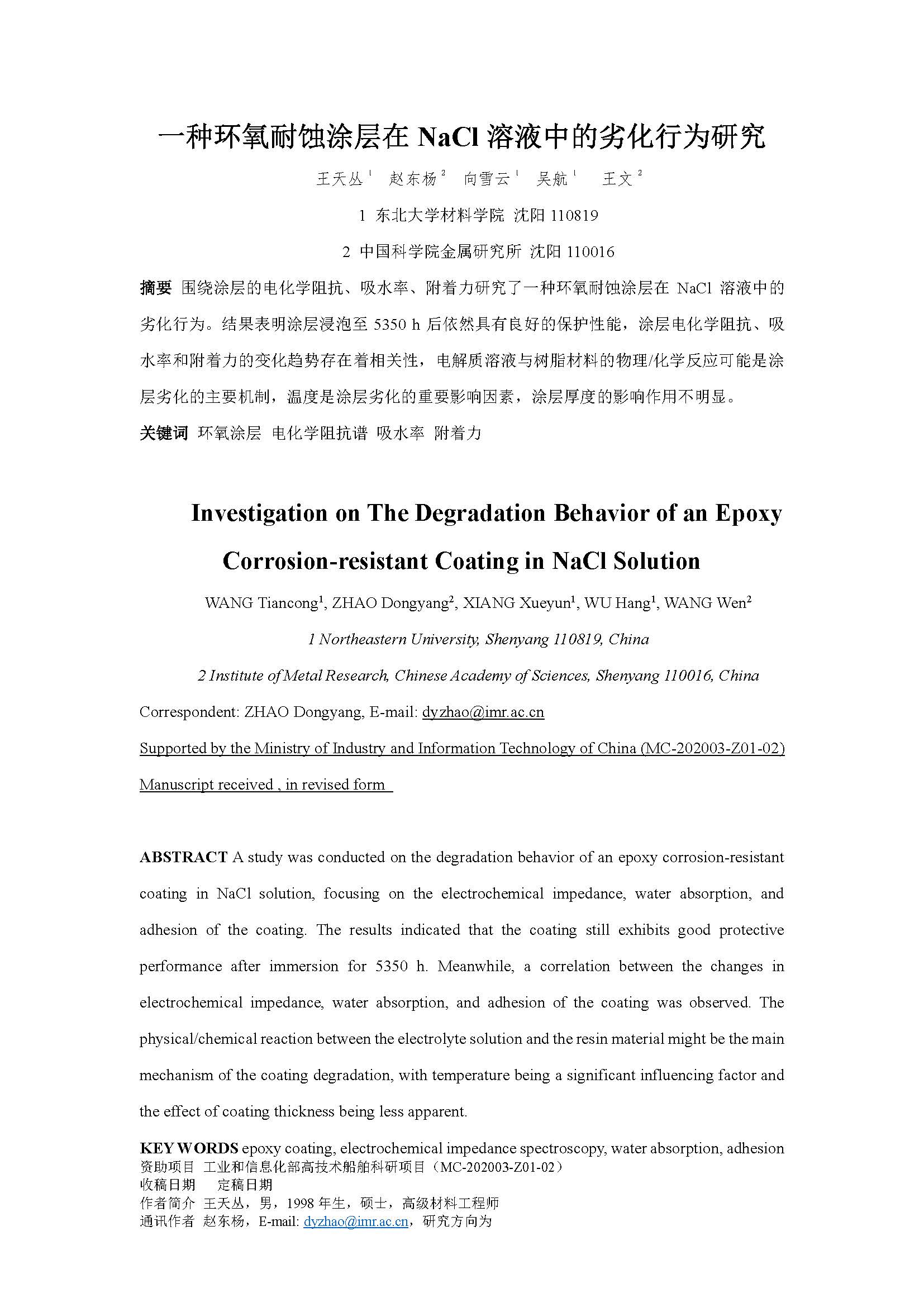 一种环氧耐蚀涂层在NaCl溶液中的劣化行为研究