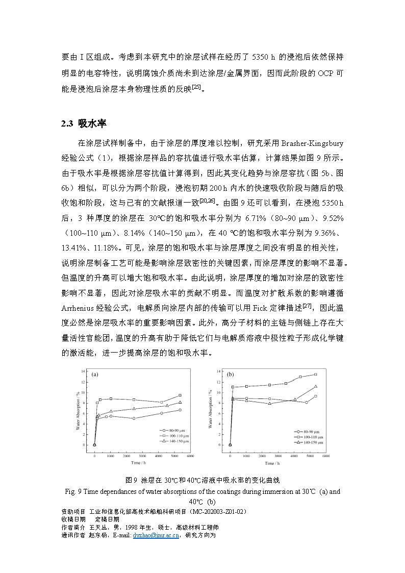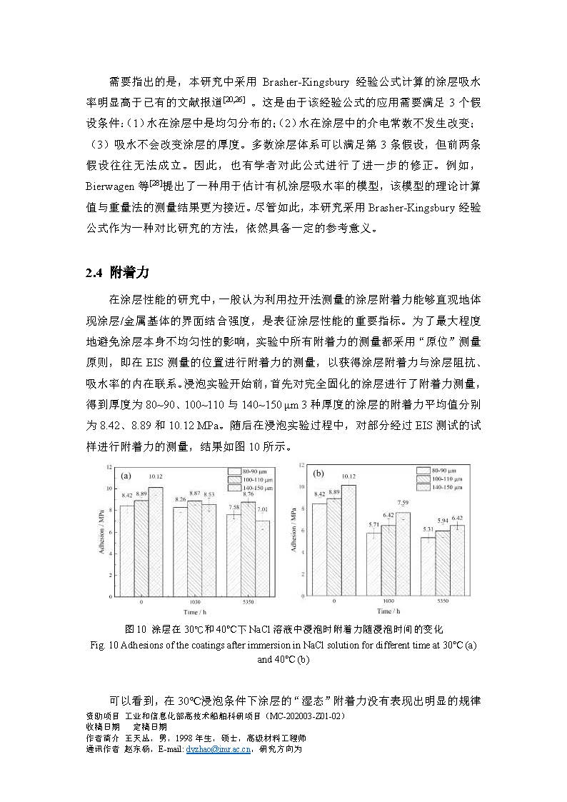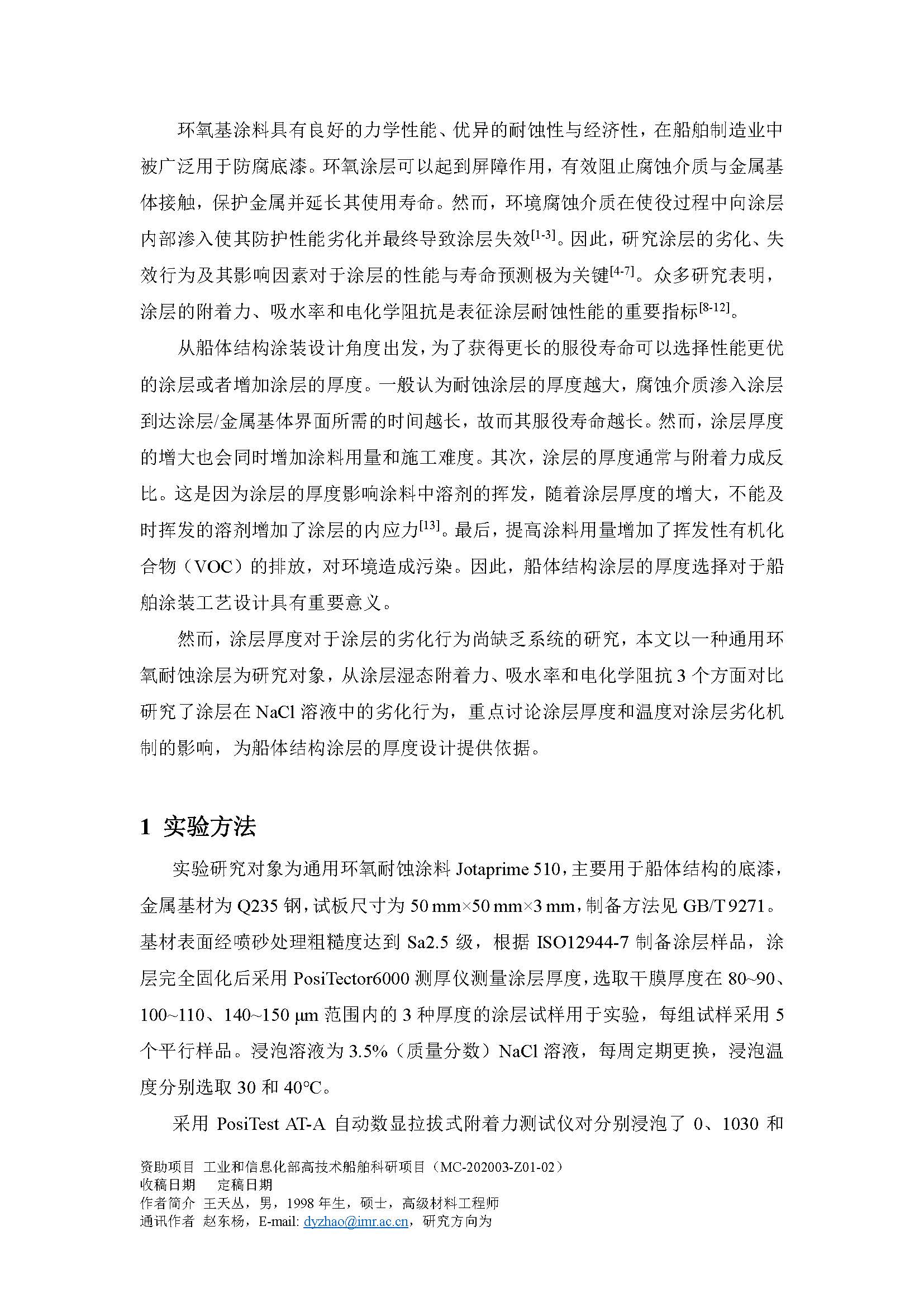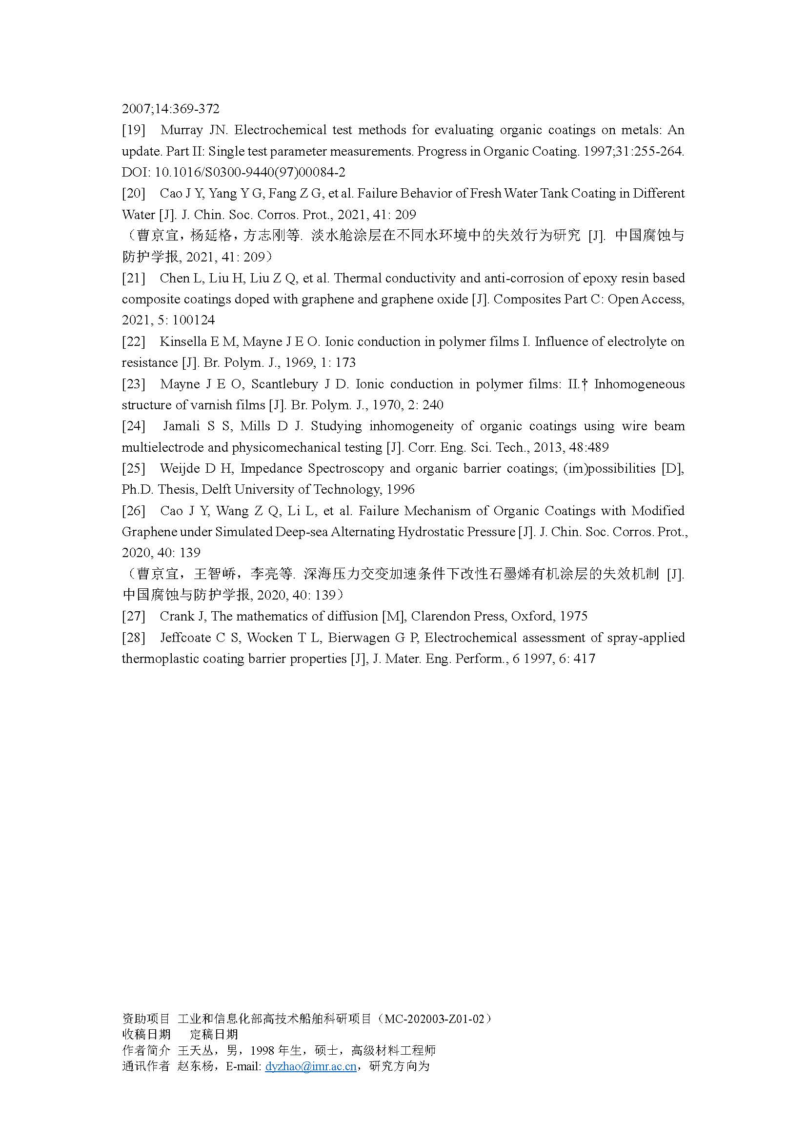 一种环氧耐蚀涂层在NaCl溶液中的劣化行为研究