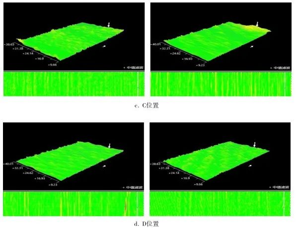 图5 LNG低温管道4个位置处的上下表面阵列涡流检测结果