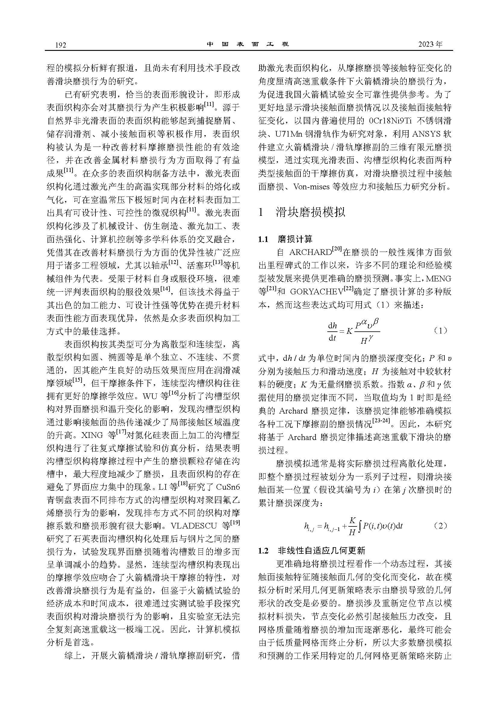 沟槽型织构化火箭橇滑块磨损行为的有限元模拟