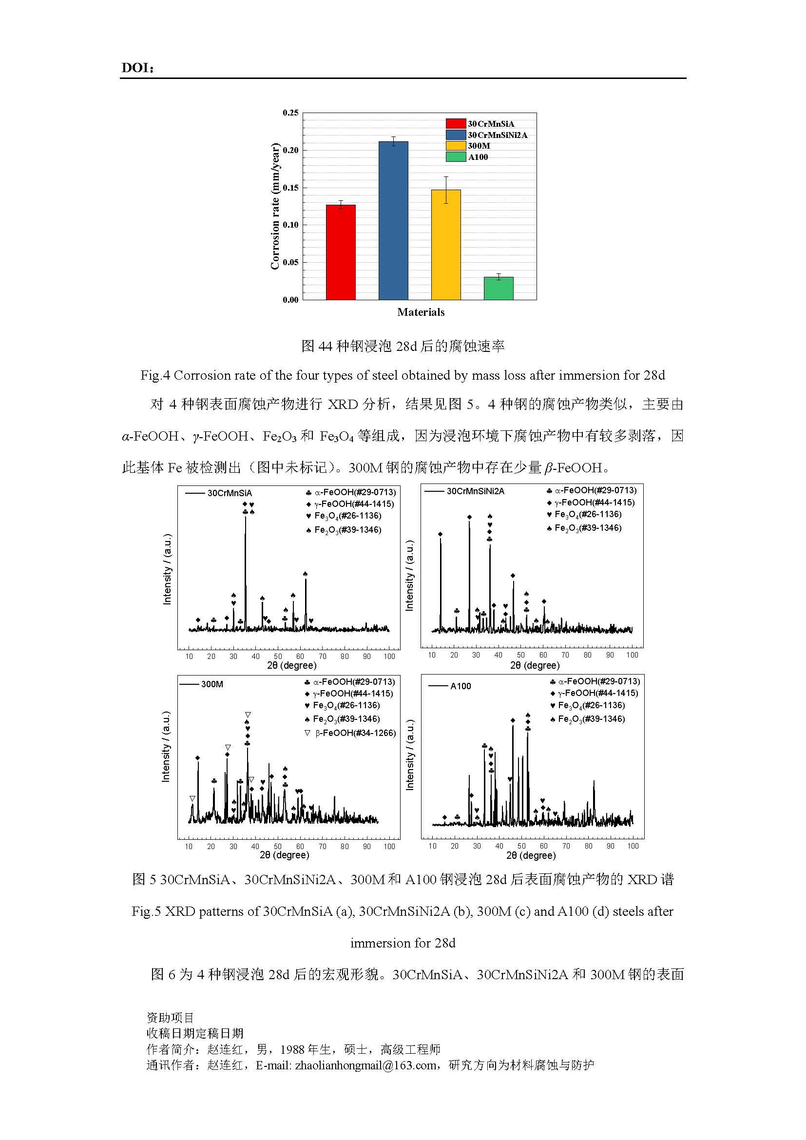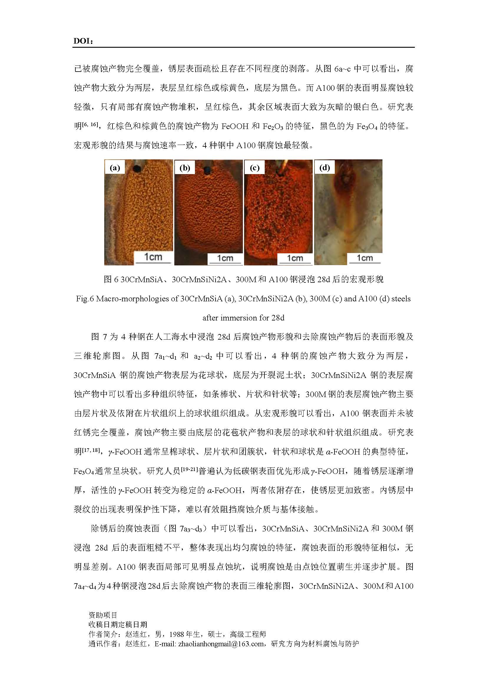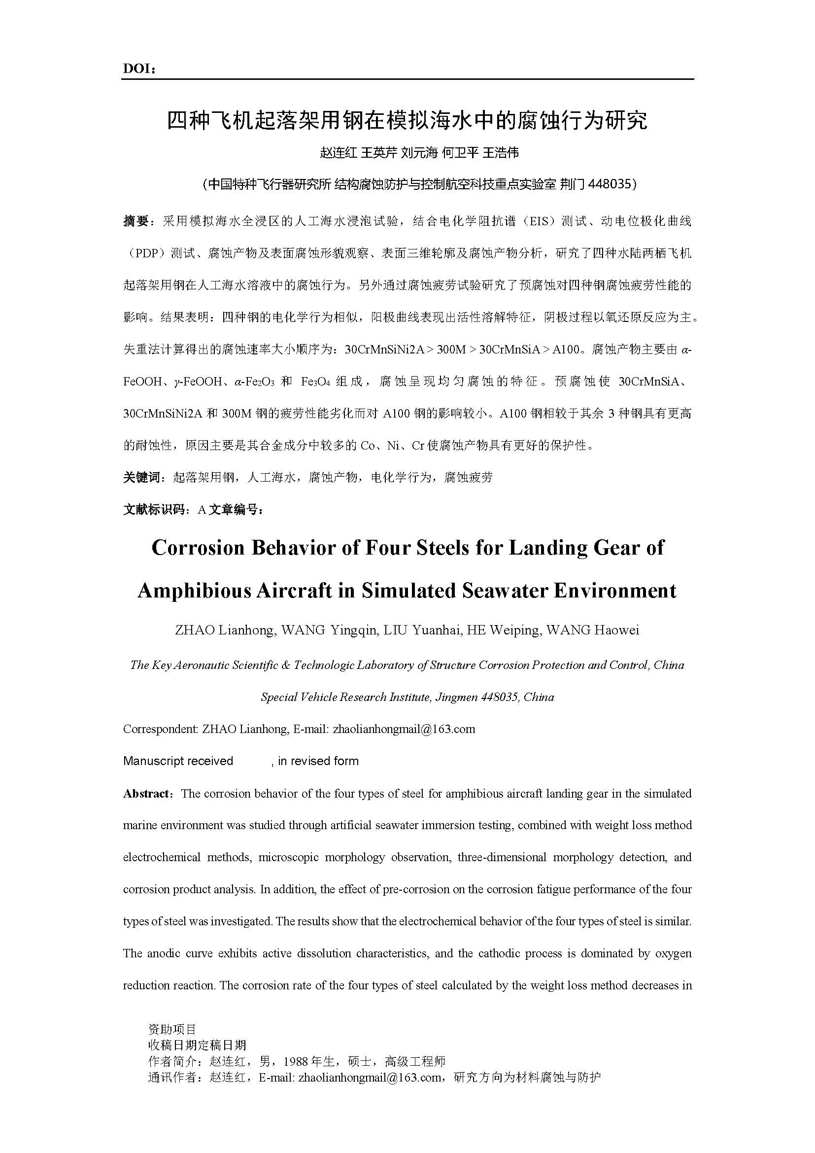 四种飞机起落架用钢在模拟海水中的腐蚀行为研究