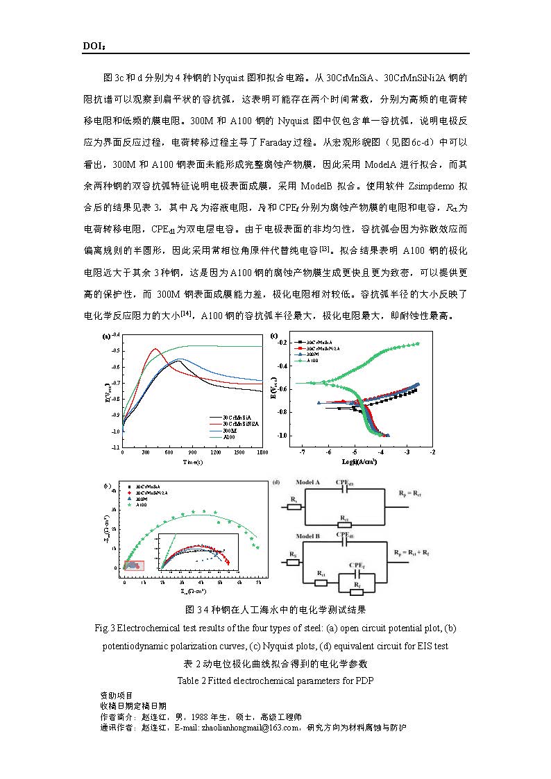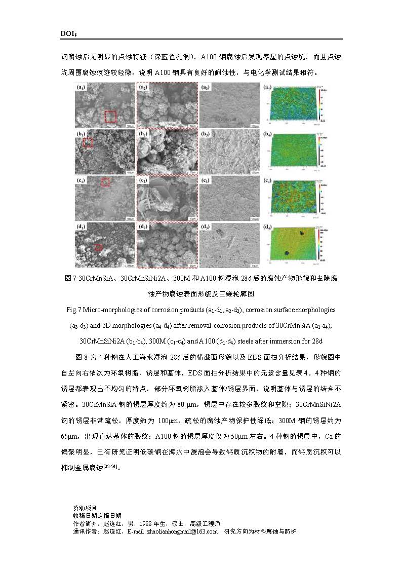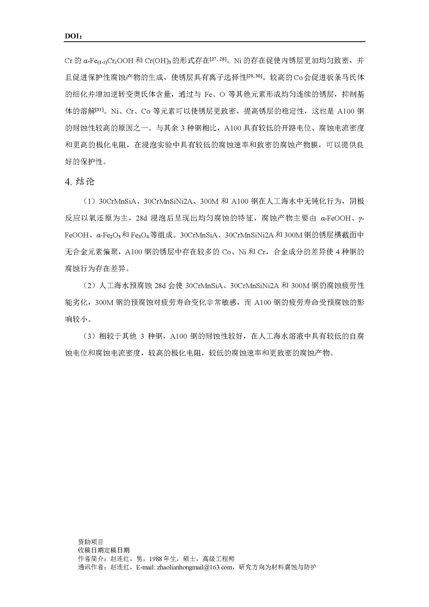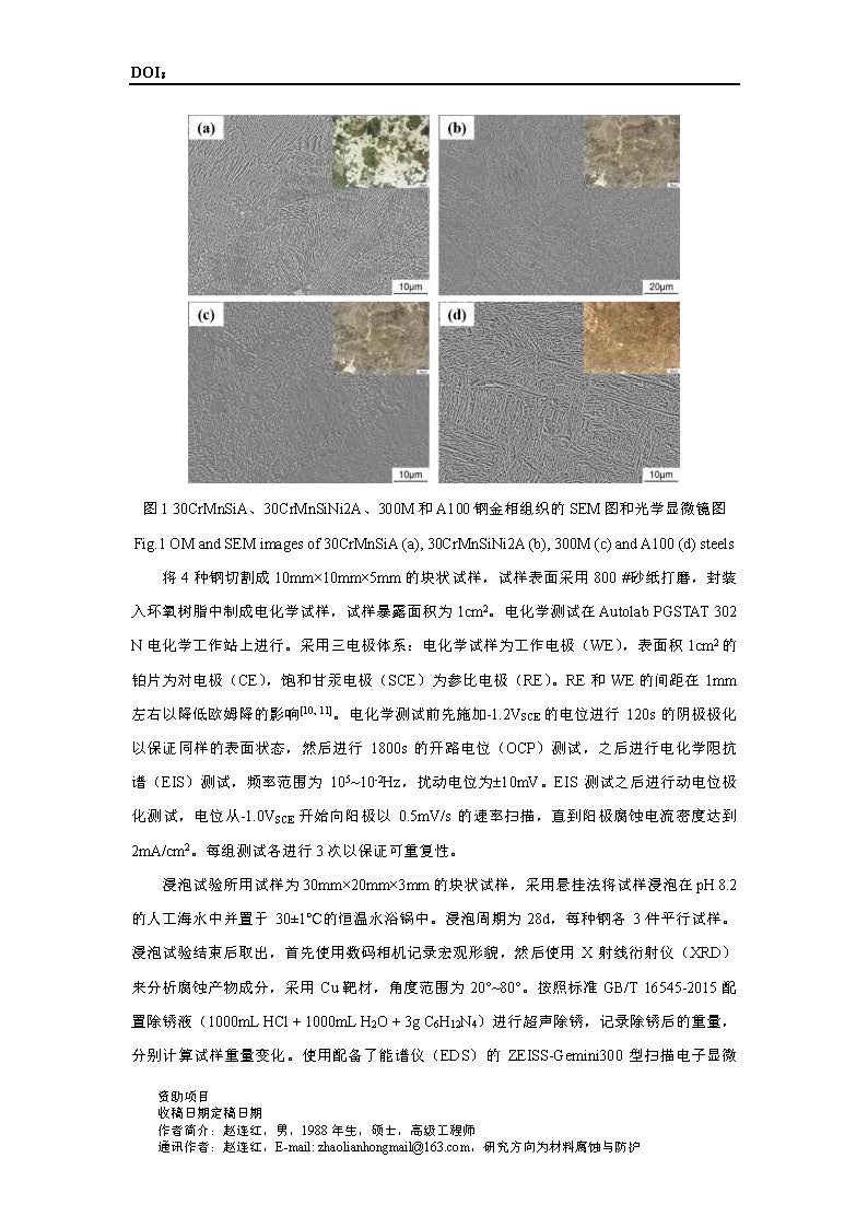 四种飞机起落架用钢在模拟海水中的腐蚀行为研究