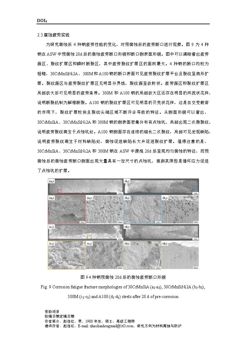 海水环境下船用高强钢腐蚀疲劳损伤行为研究