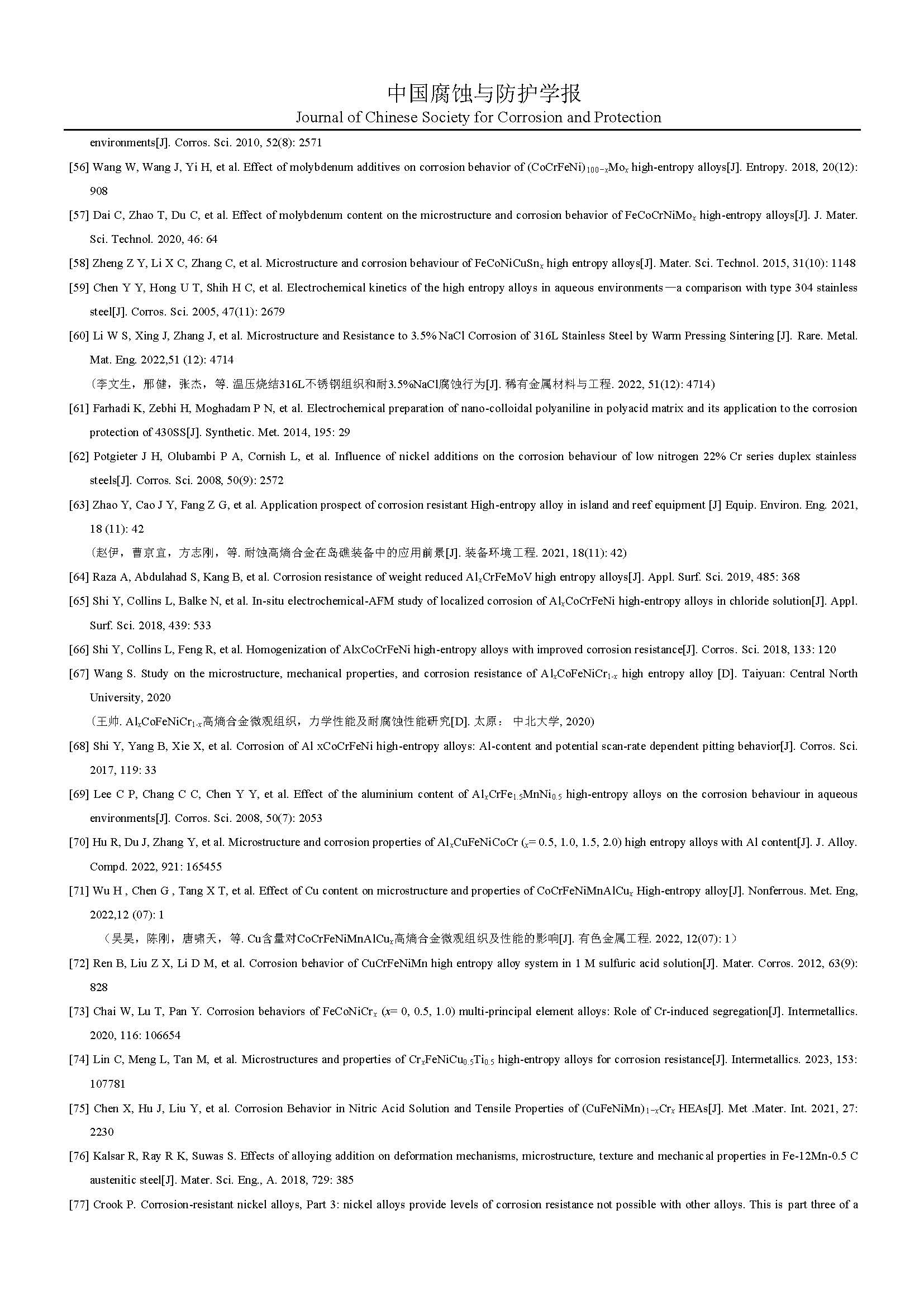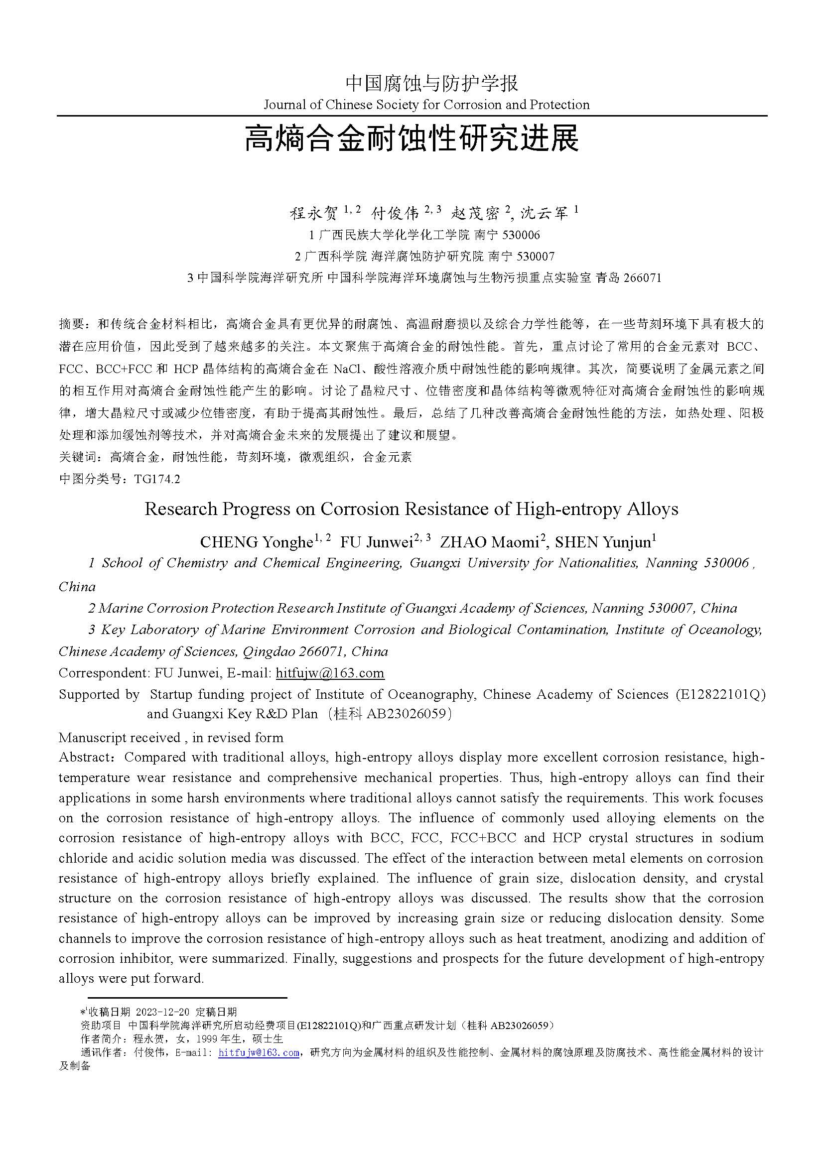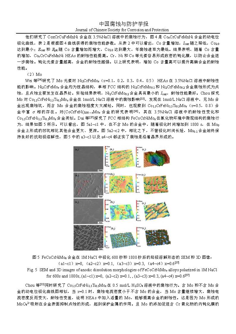 来源:中国腐蚀与防护学报