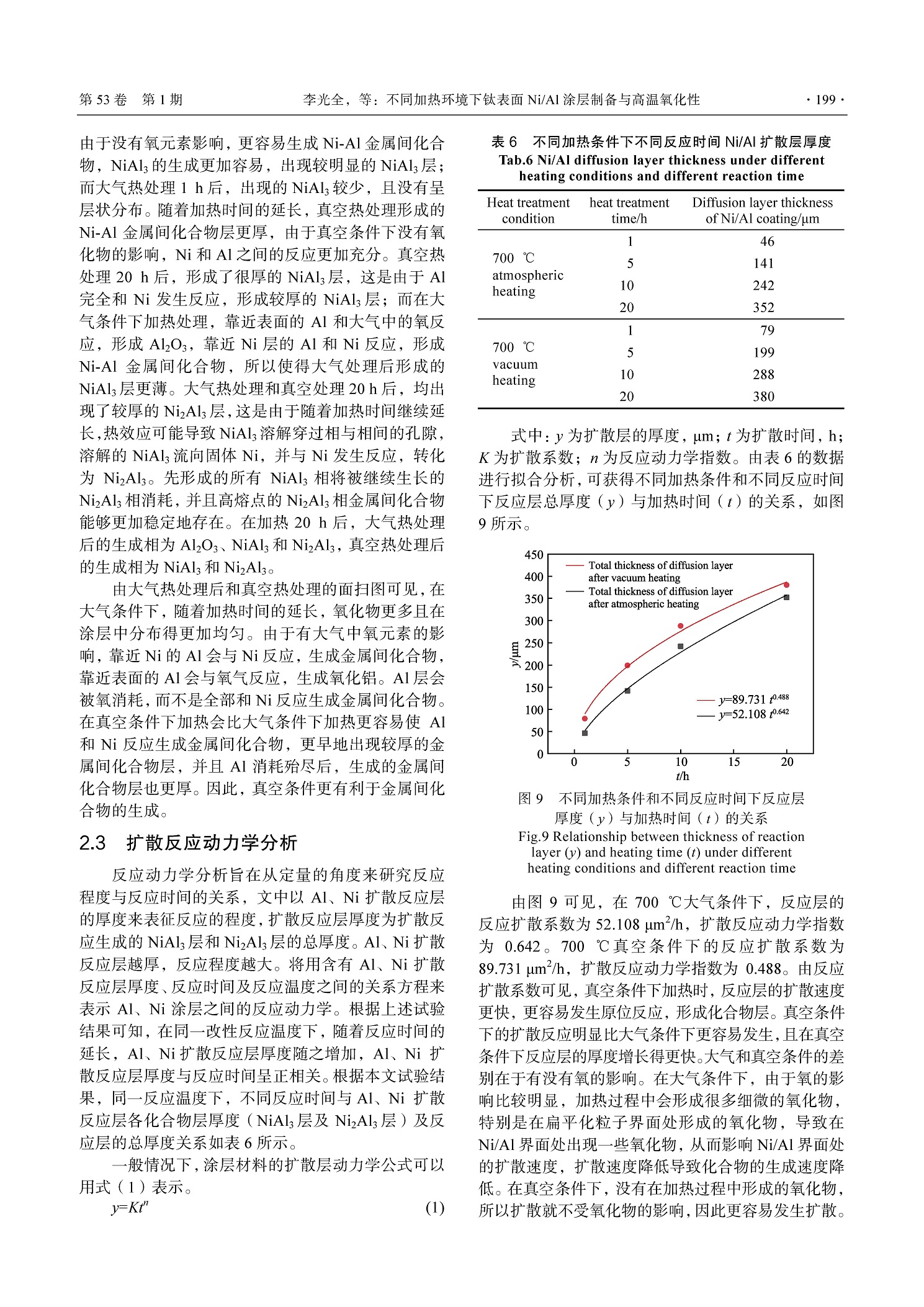 不同加热环境下钛表面 Ni/Al 涂层 制备与高温氧化性