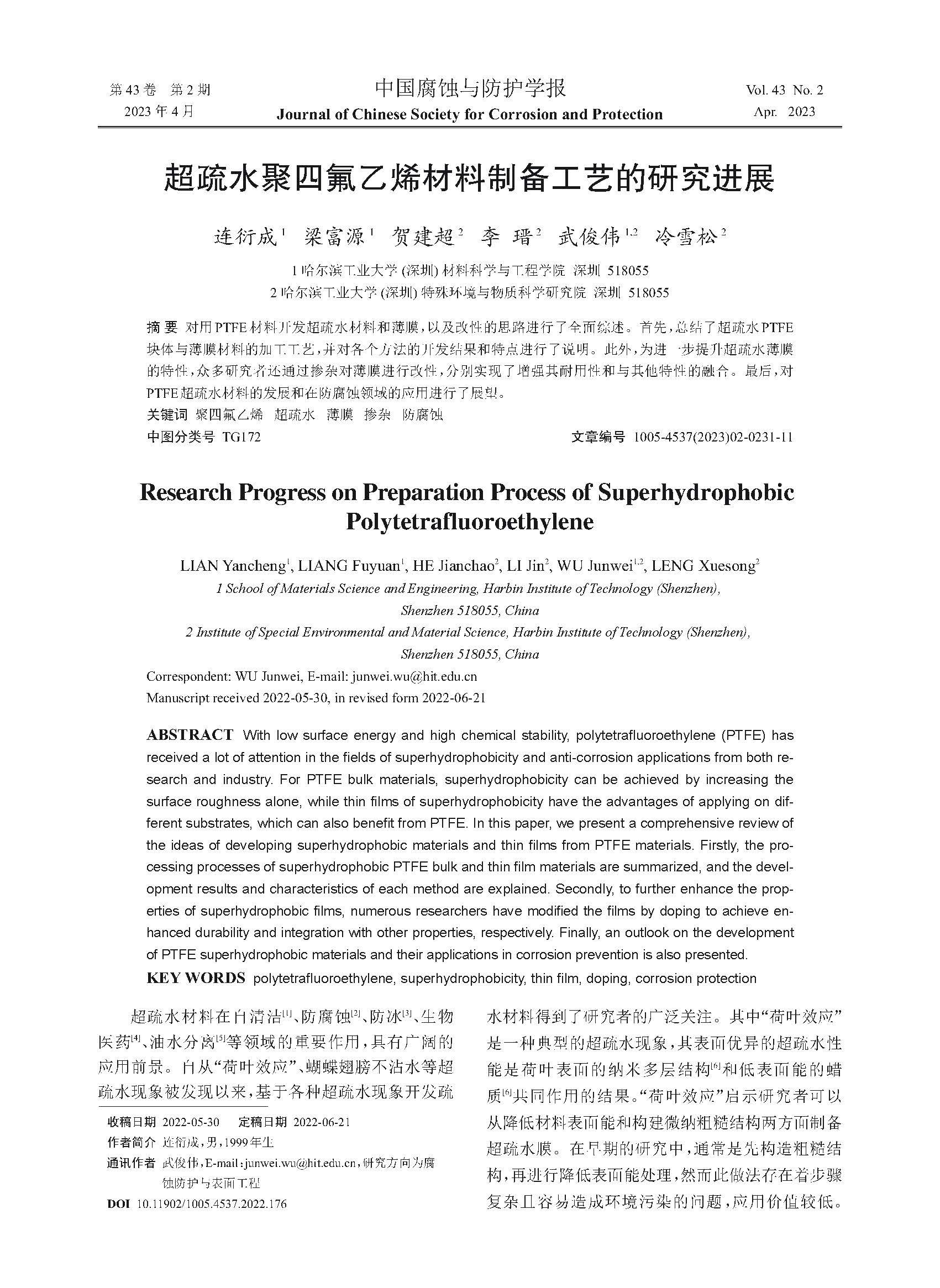 超疏水聚四氟乙烯材料制备工艺的研究进展