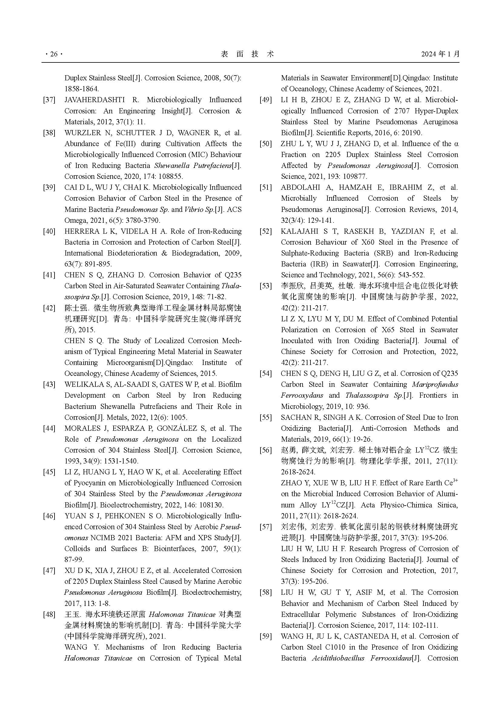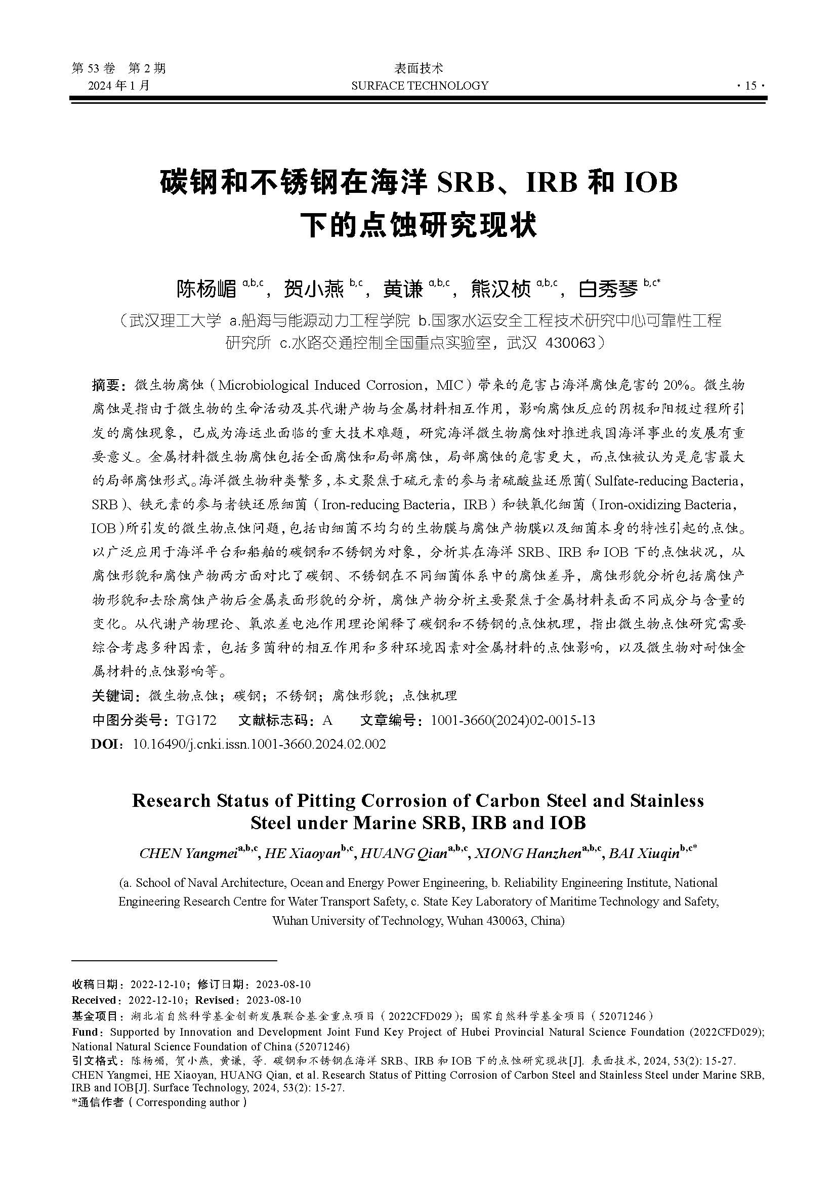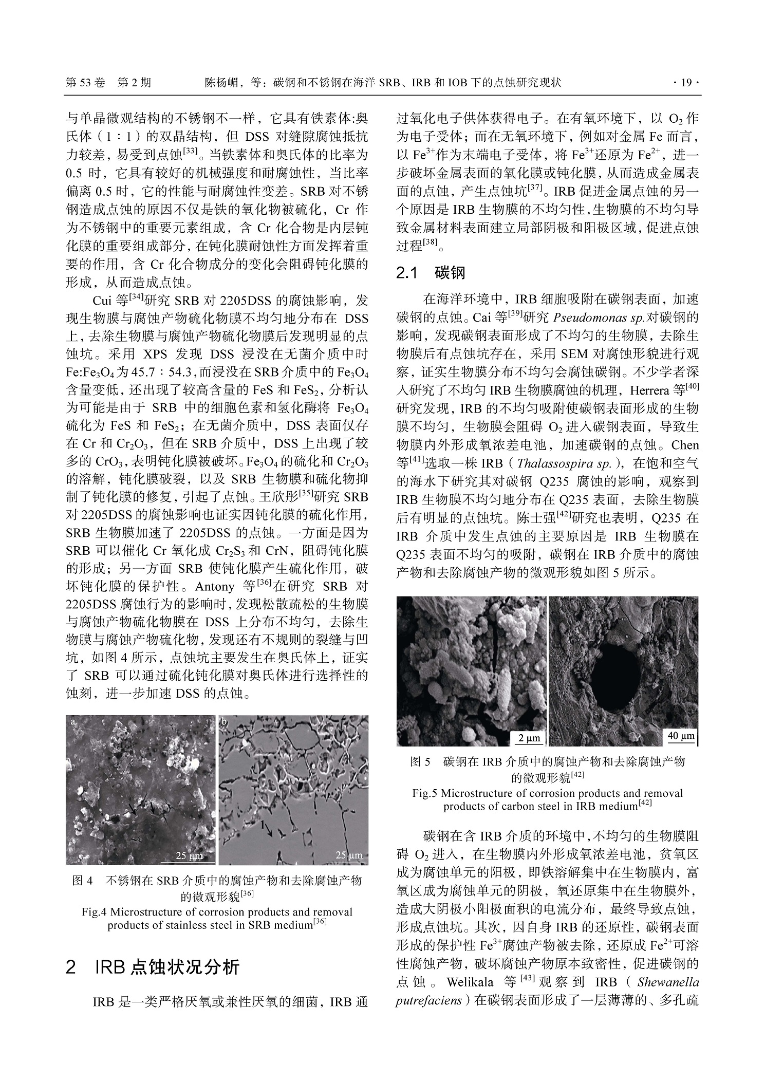 碳钢和不锈钢在海洋 SRB、IRB 和 IOB 下的点蚀研究现状