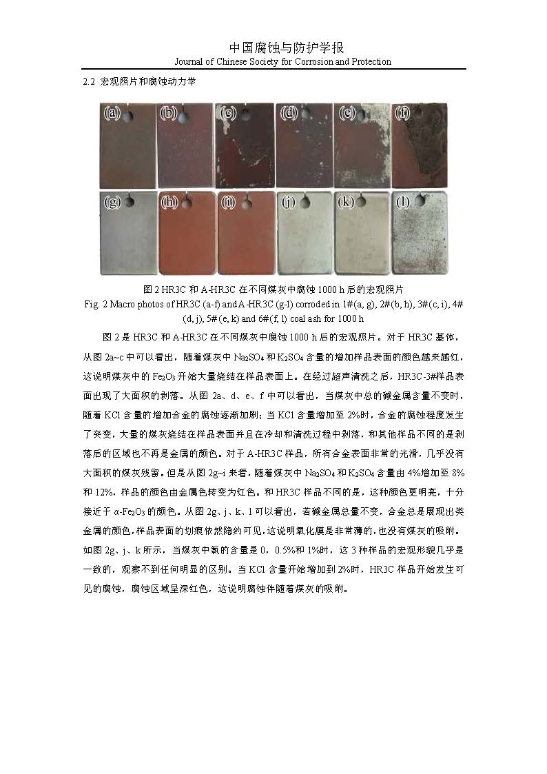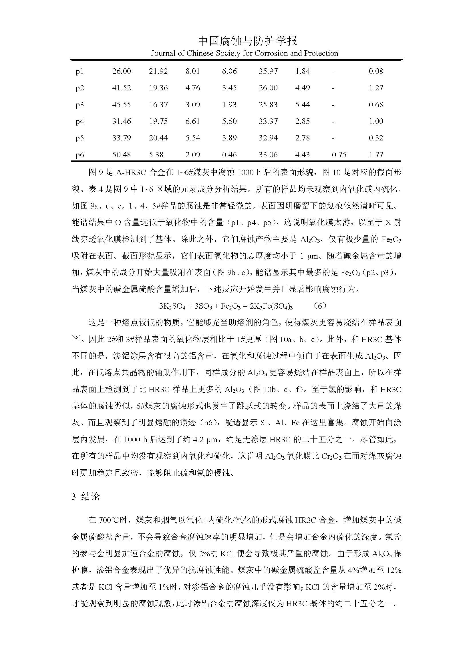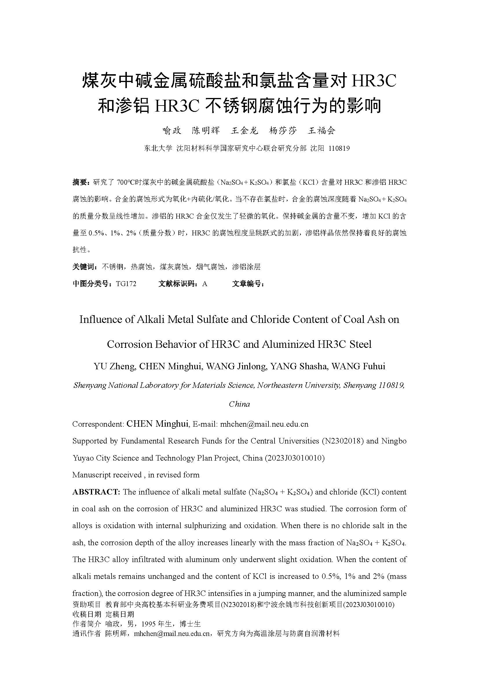 煤灰中碱金属硫酸盐和氯盐含量对HR3C和渗铝HR3C不锈钢腐蚀行为的影响