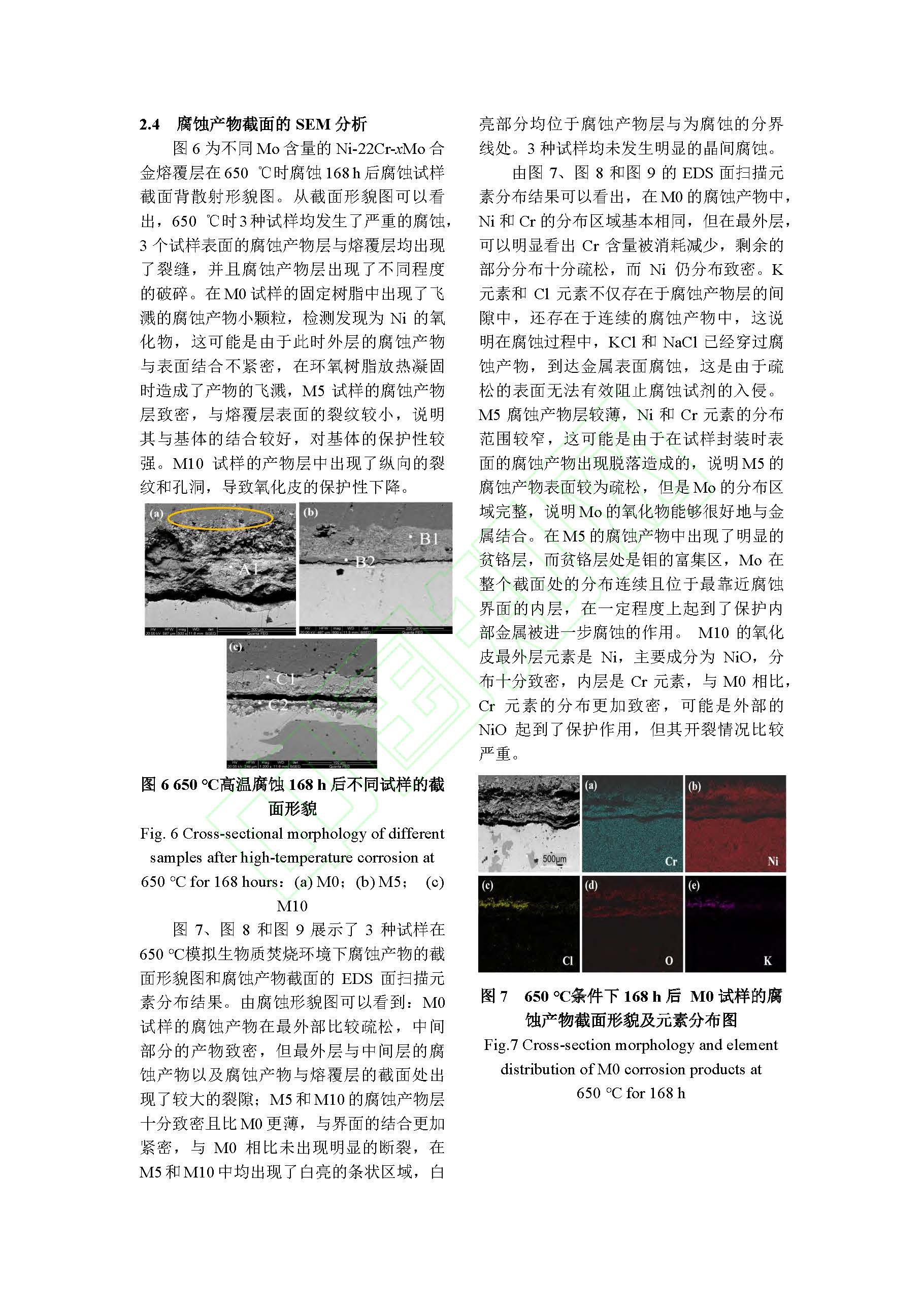 Mo含量对镍基合金熔覆层高温腐蚀特性的影响