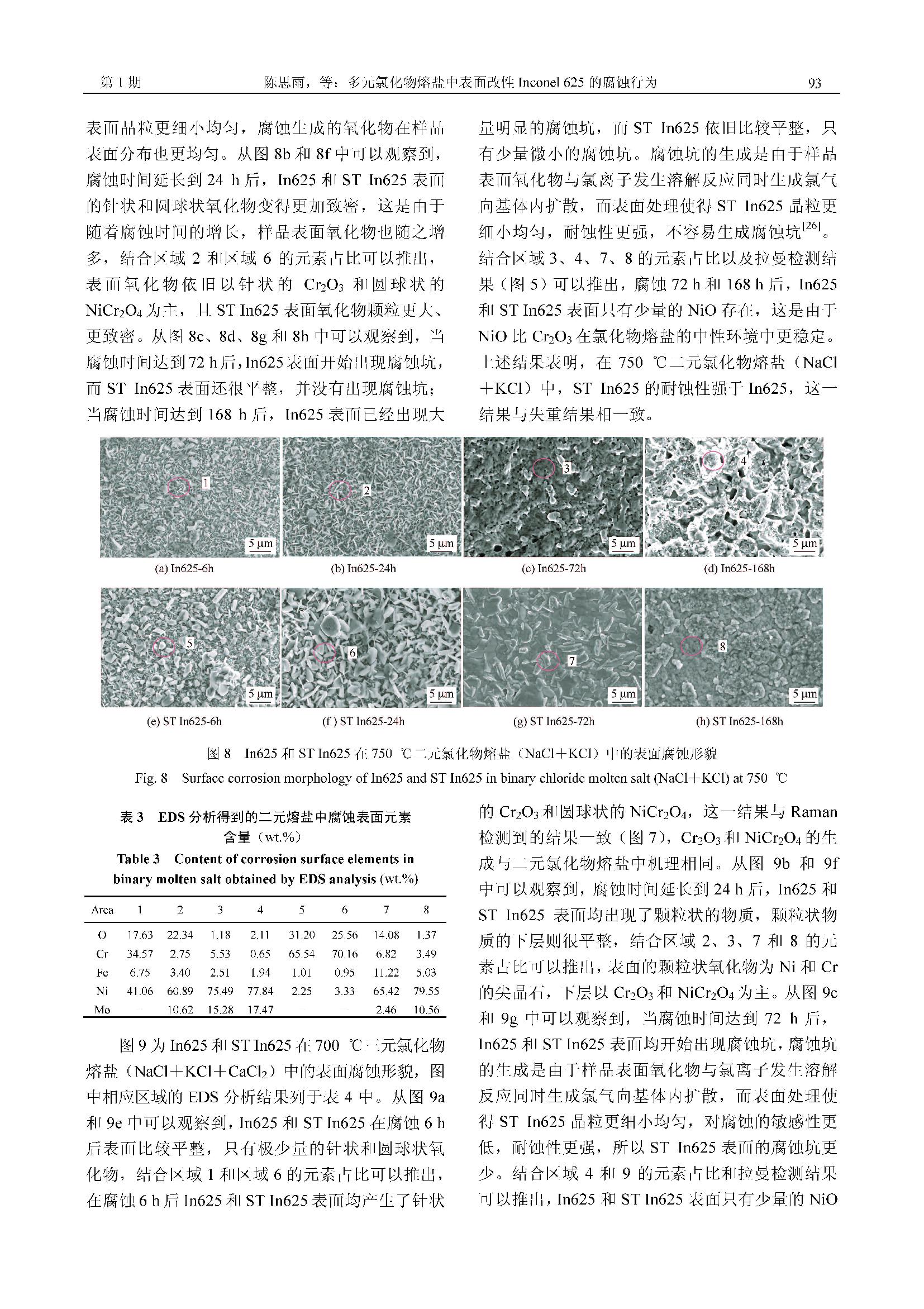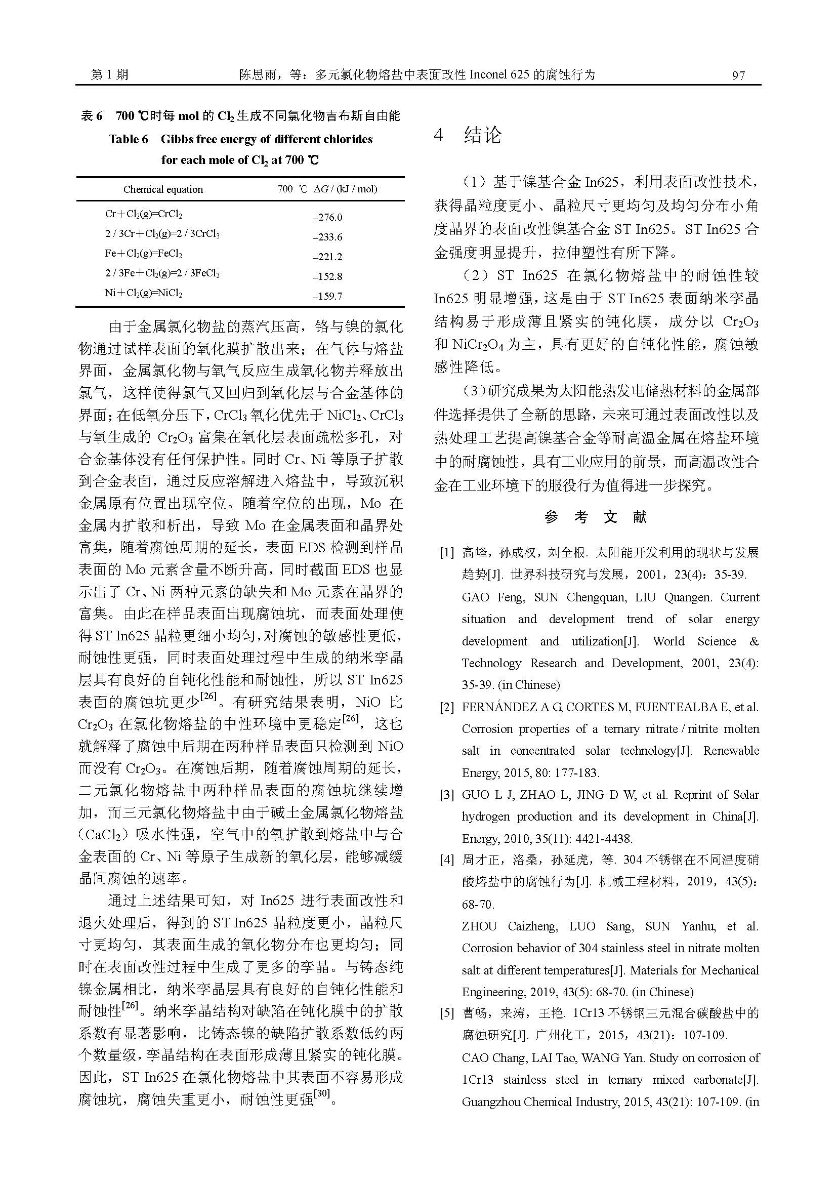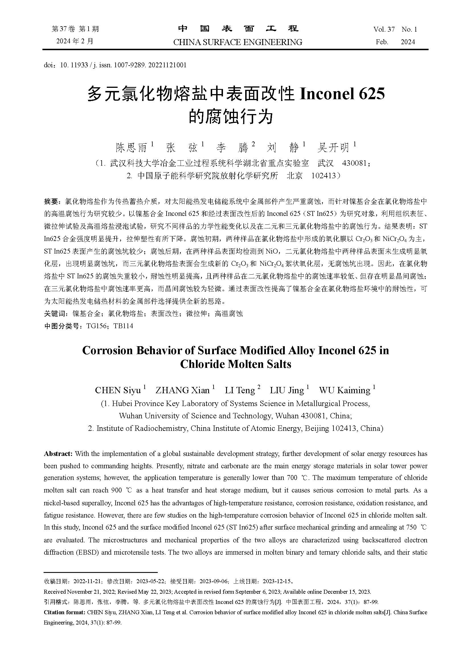 多元氯化物熔盐中表面改性Inconel625的腐蚀行为