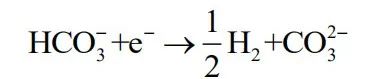 而在直接还原机制中,H2CO3和HCO3–中的H+可能直接被还原,反应式如下: