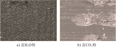 图3 超临界CO2/H2O体系在富H2O相和富CO2相环境下N80钢微观腐蚀形貌