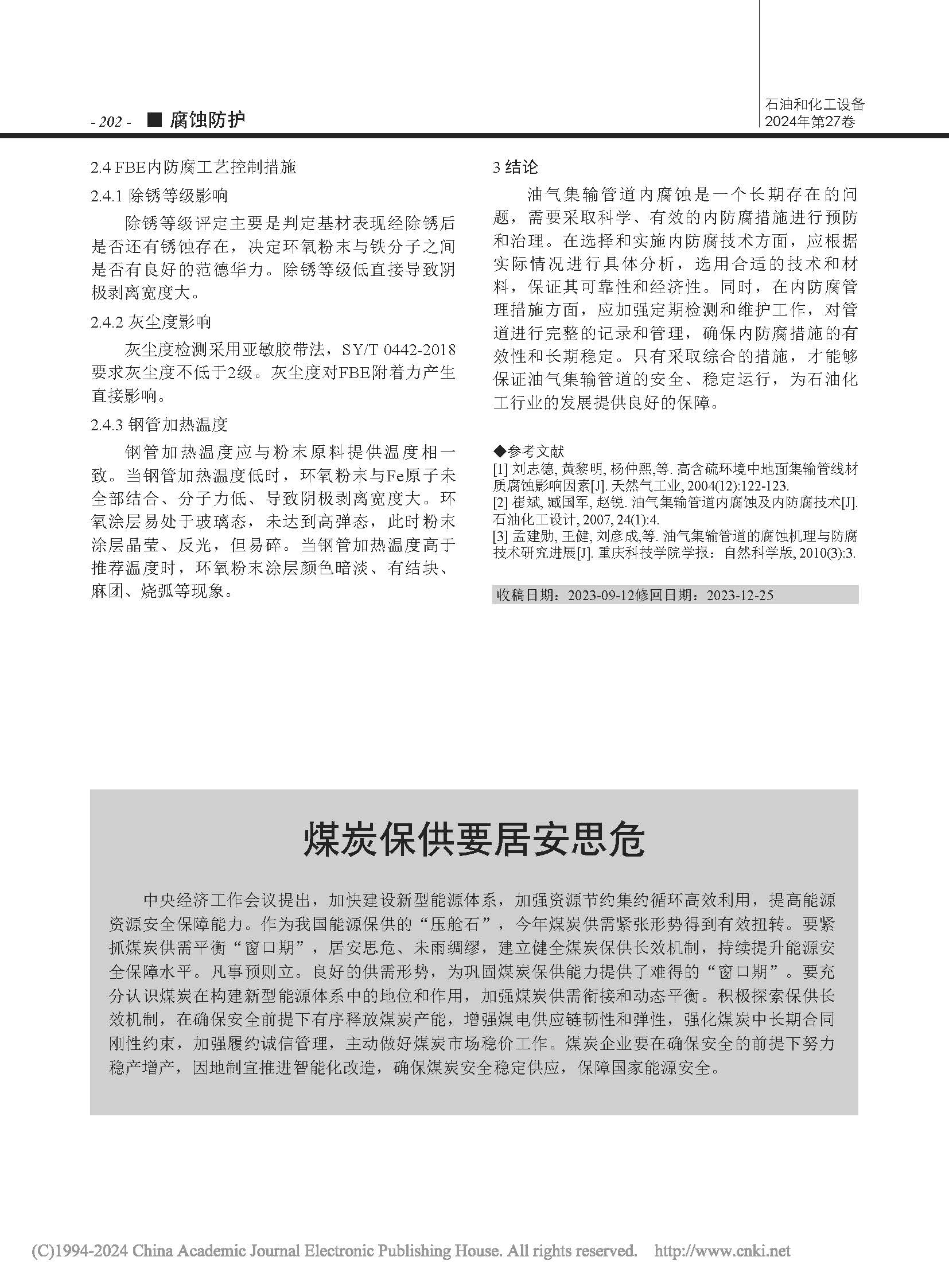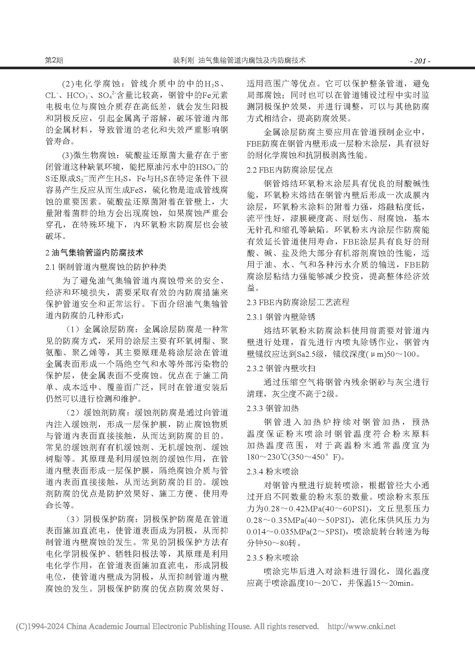 油气集输管道内腐蚀及内防腐技术