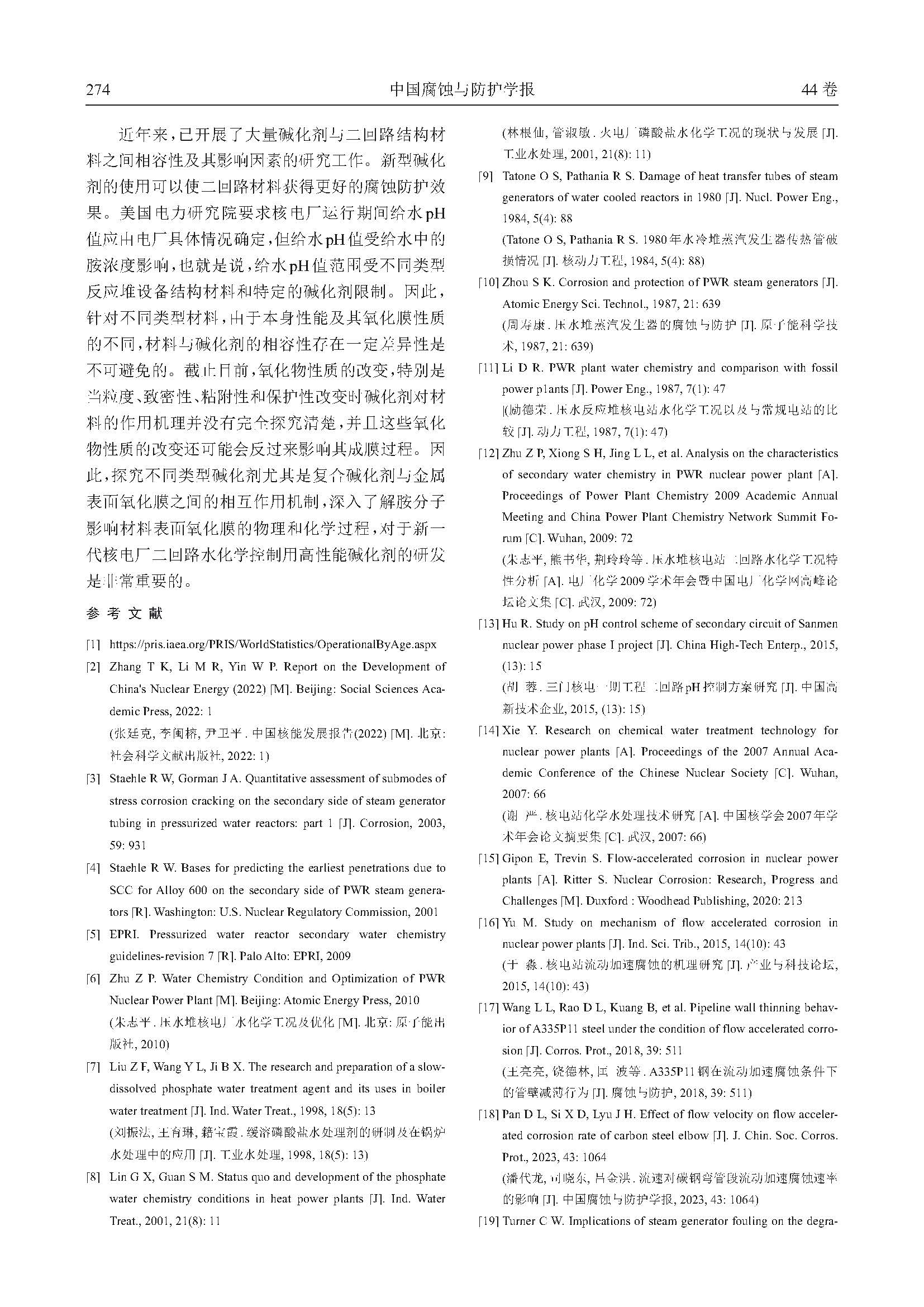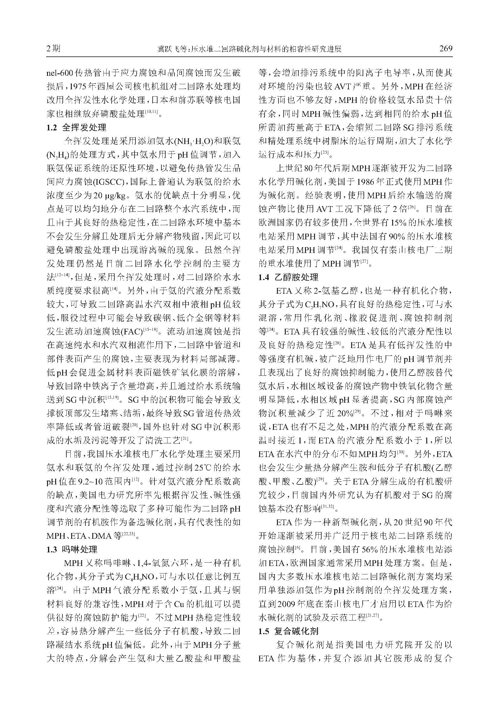 压水堆二回路碱化剂与材料的相容性研究进展