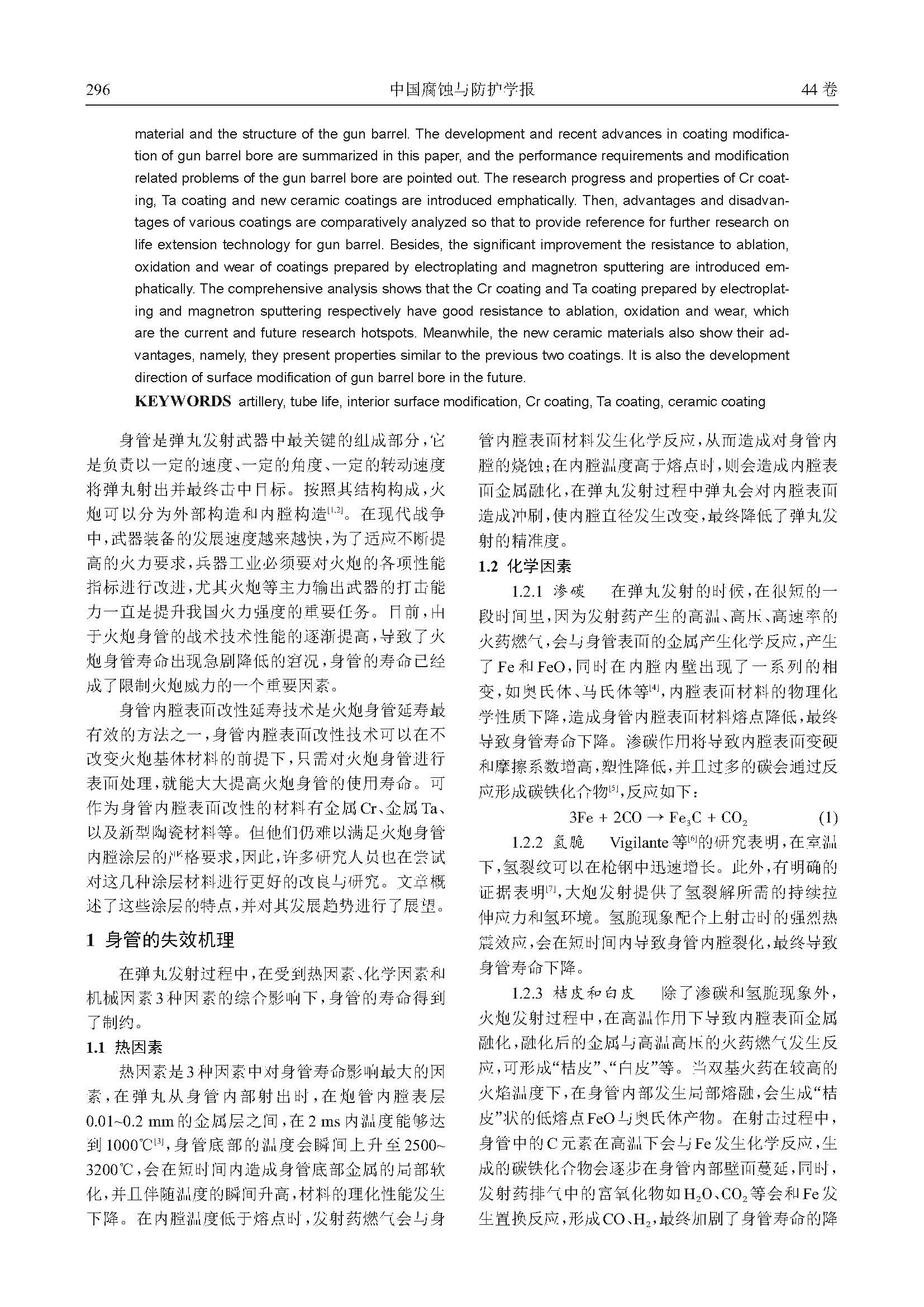 基于涂层改性炮管寿命的研究进展