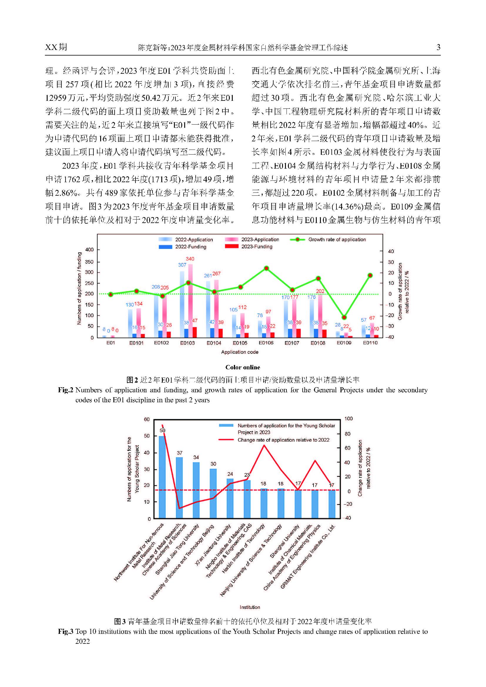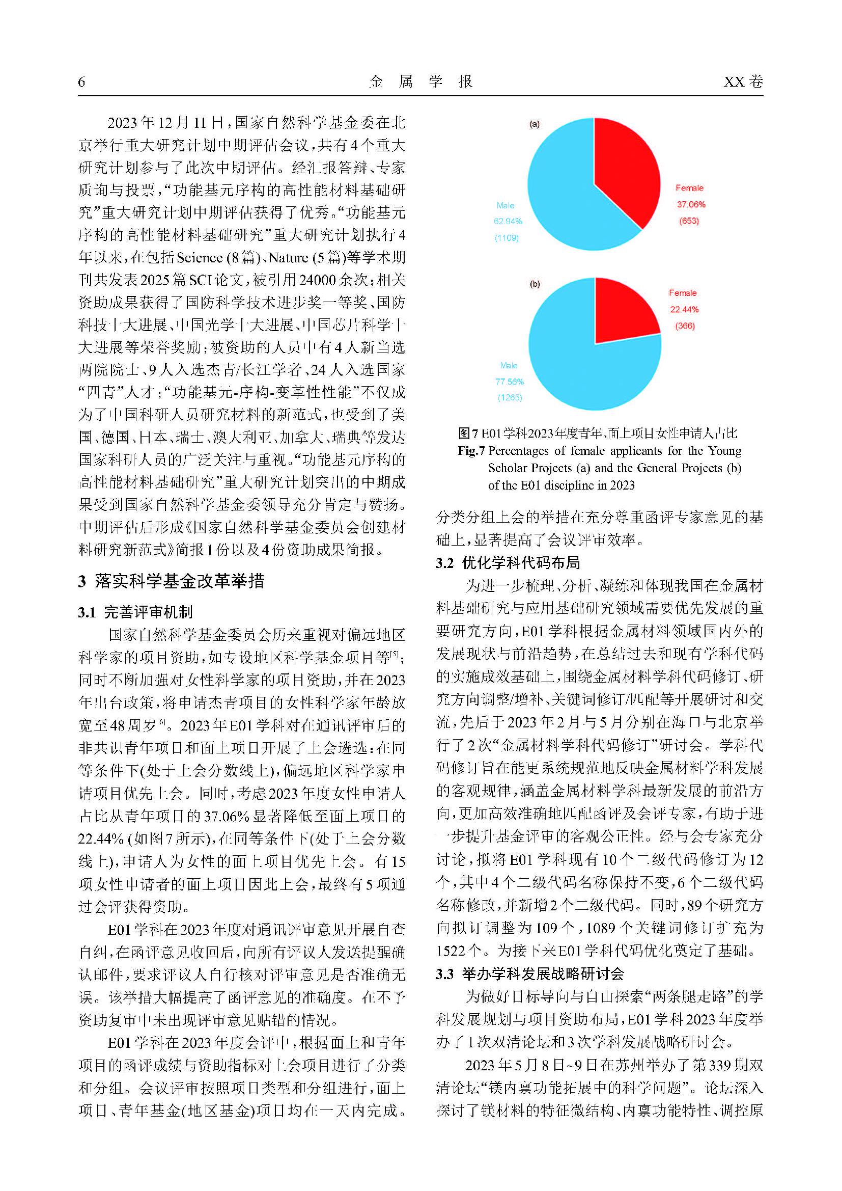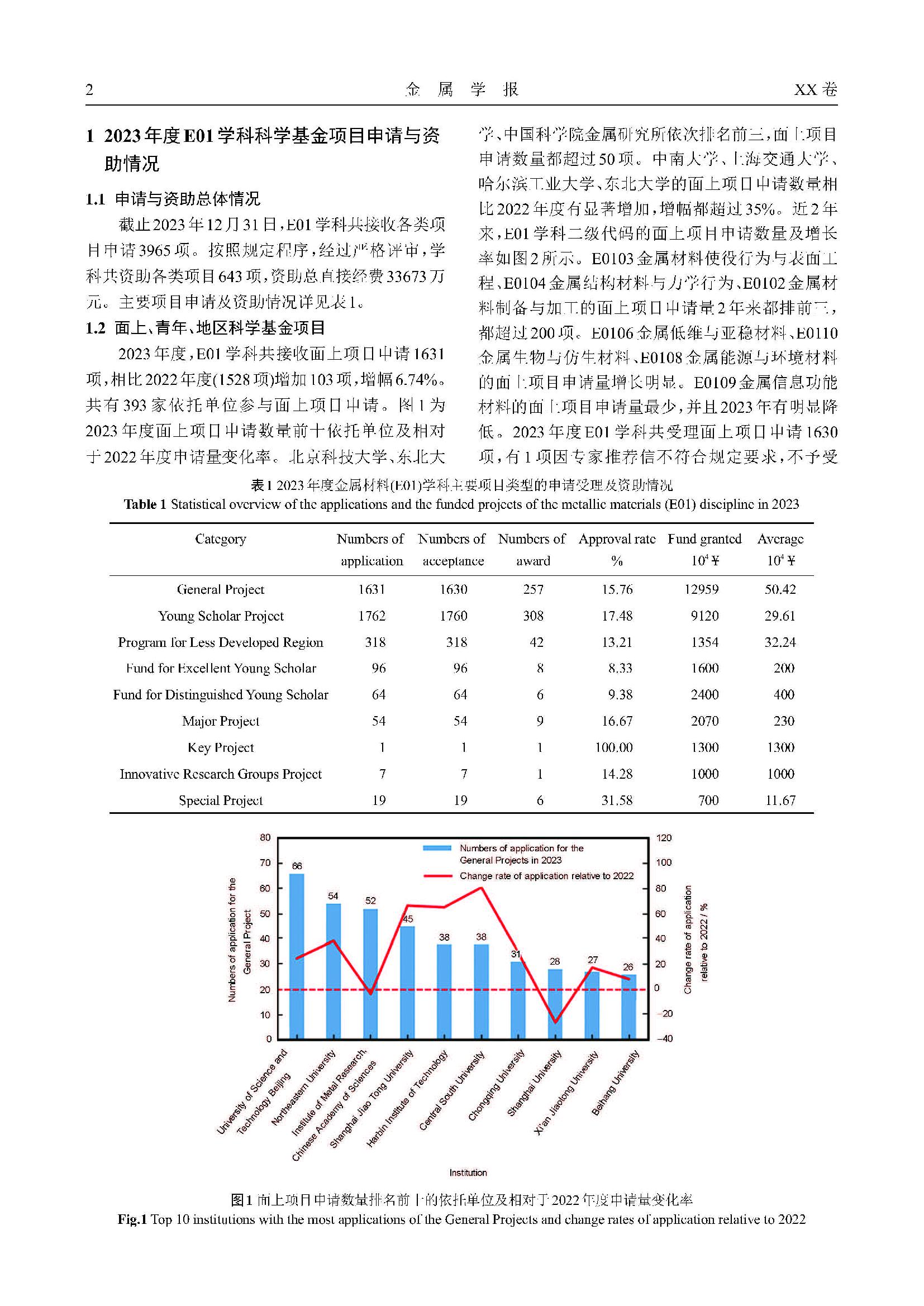 2023年度金属材料学科国家自然科学基金管理工作综述