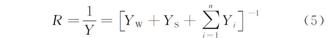 式中:R为单位体积土壤的电阻,Ω;Y为单位体积土壤的电导,S;YW为孔隙水液相导电路径电导,S;YS为固体颗粒导电路径电导,S;Yi为i层电介质等效电导,S。