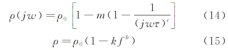 式中:ρ0为直流电下的电阻率,Ω·m;ω为角频率,rad/s;m为充电率,%;τ为时间常数;b,c为与交流电流频率相关的系数。