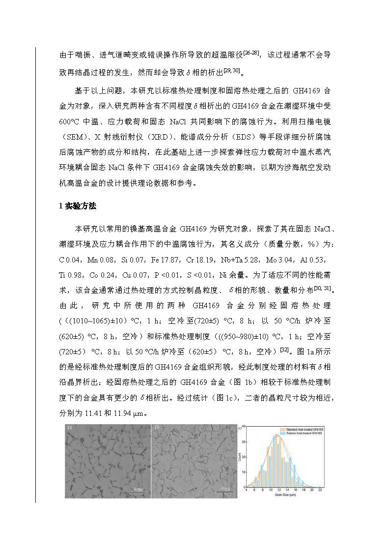 中温潮湿环境中应力耦合固态NaCl作用下GH4169合金的腐蚀行为研究