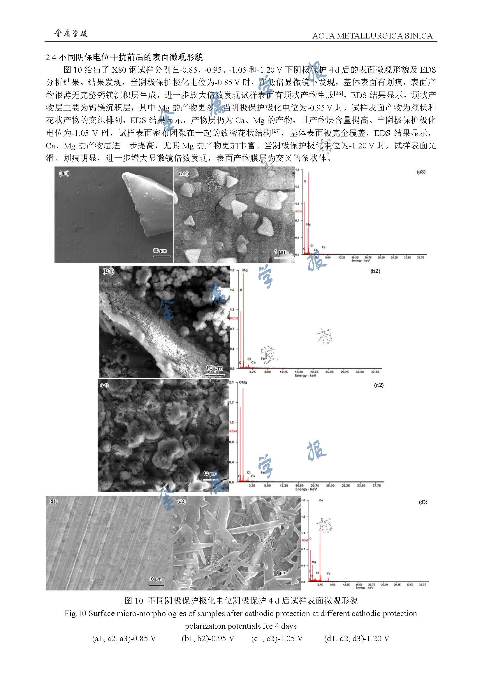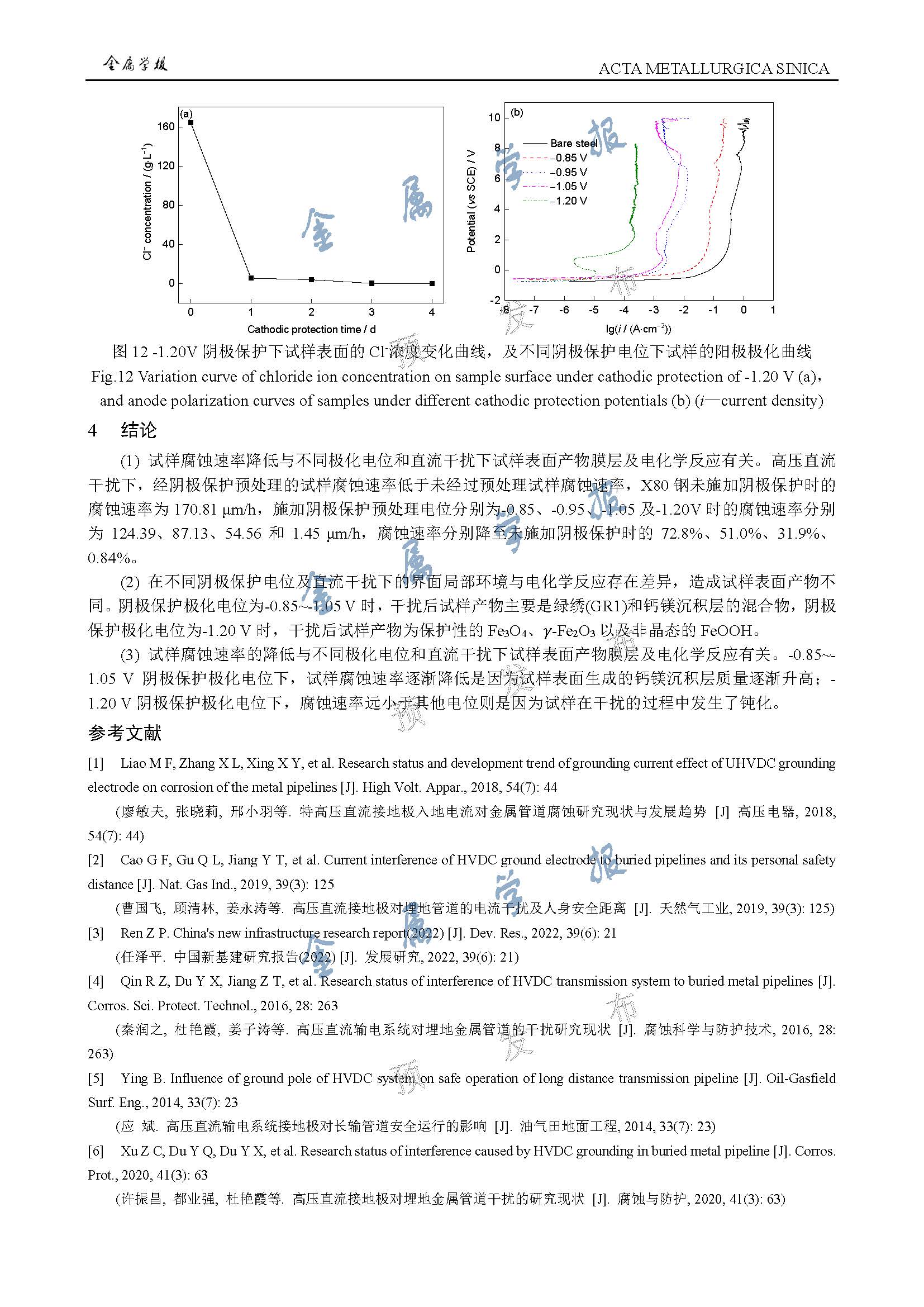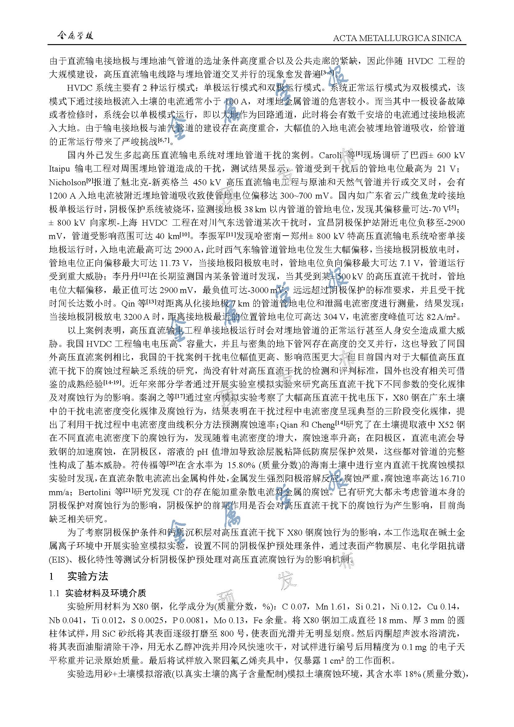 阴极保护条件对高压直流干扰下X80钢腐蚀行为影响规律及作用机制研究