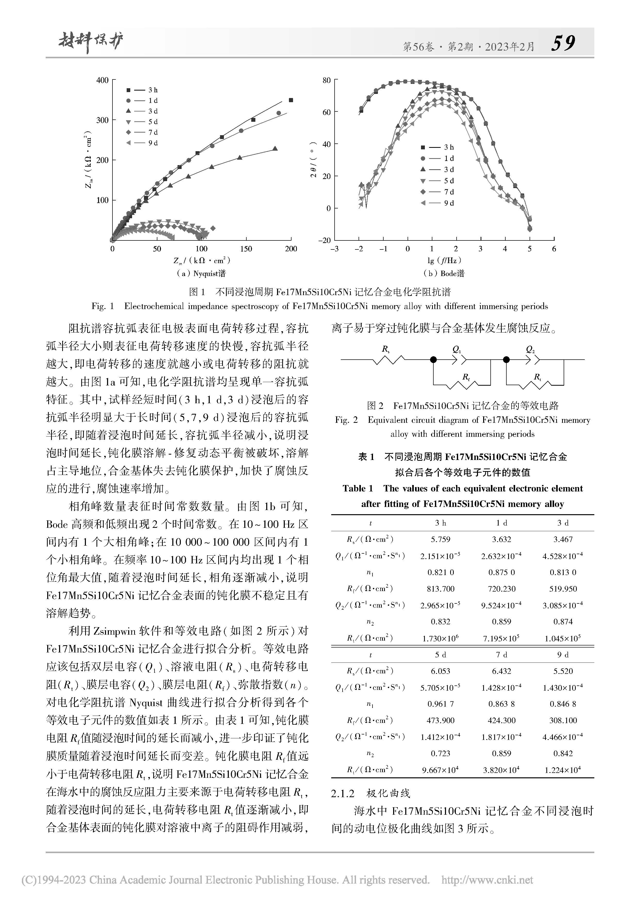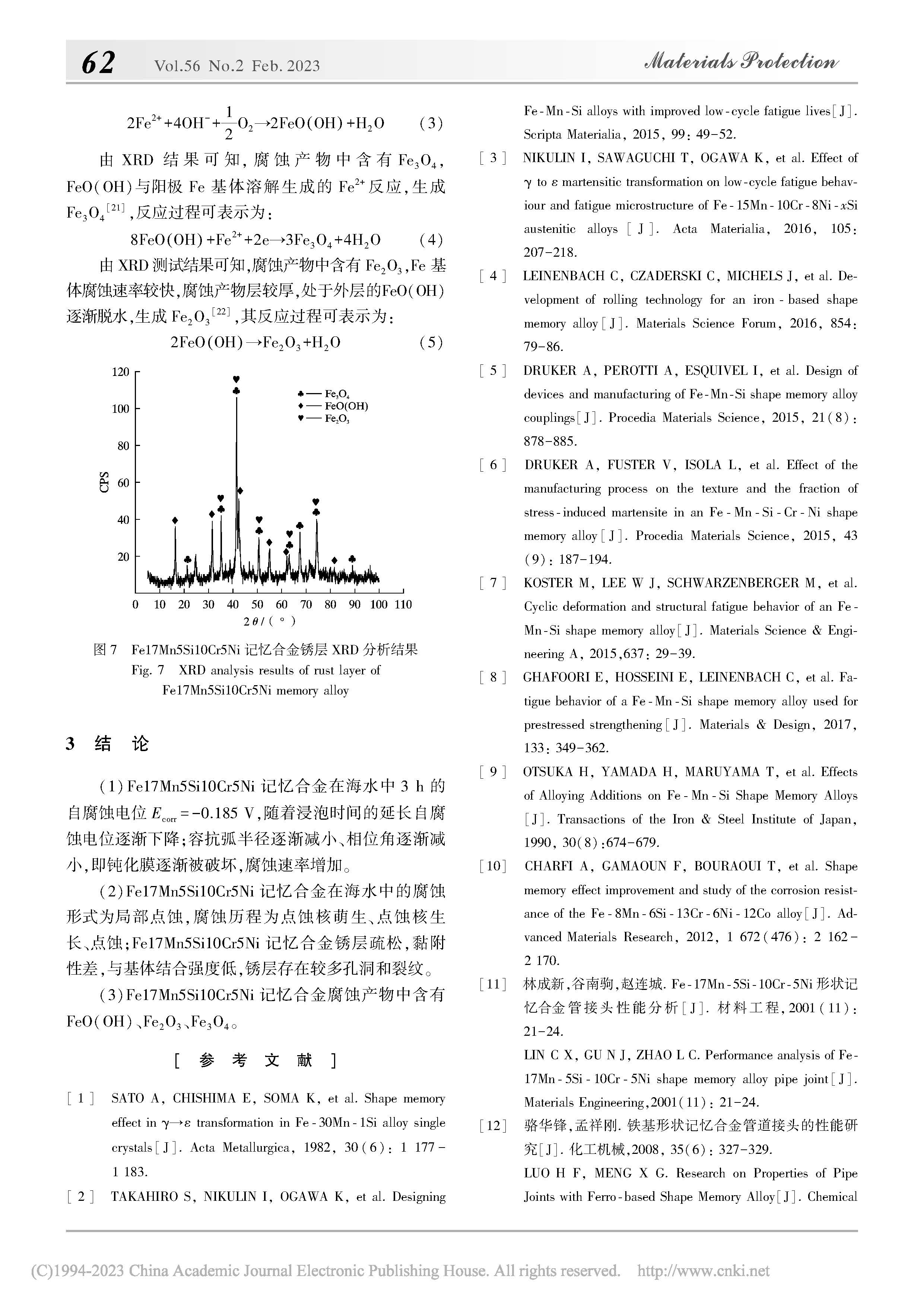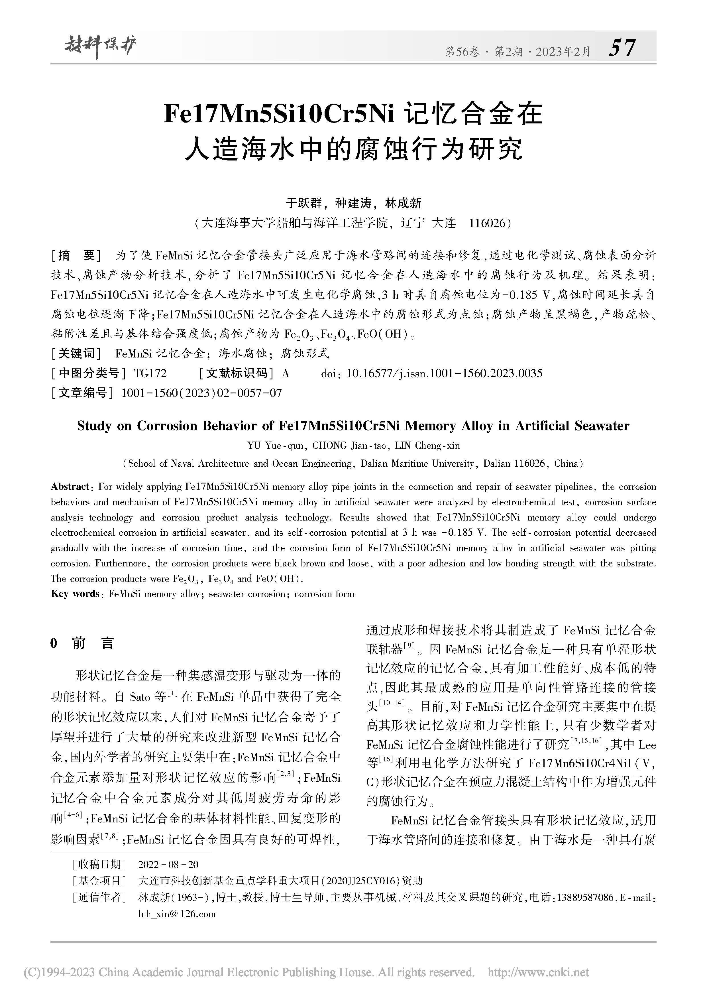 Fe17Mn5Si10Cr5Ni记忆合金在人造海水中的腐蚀行为研究