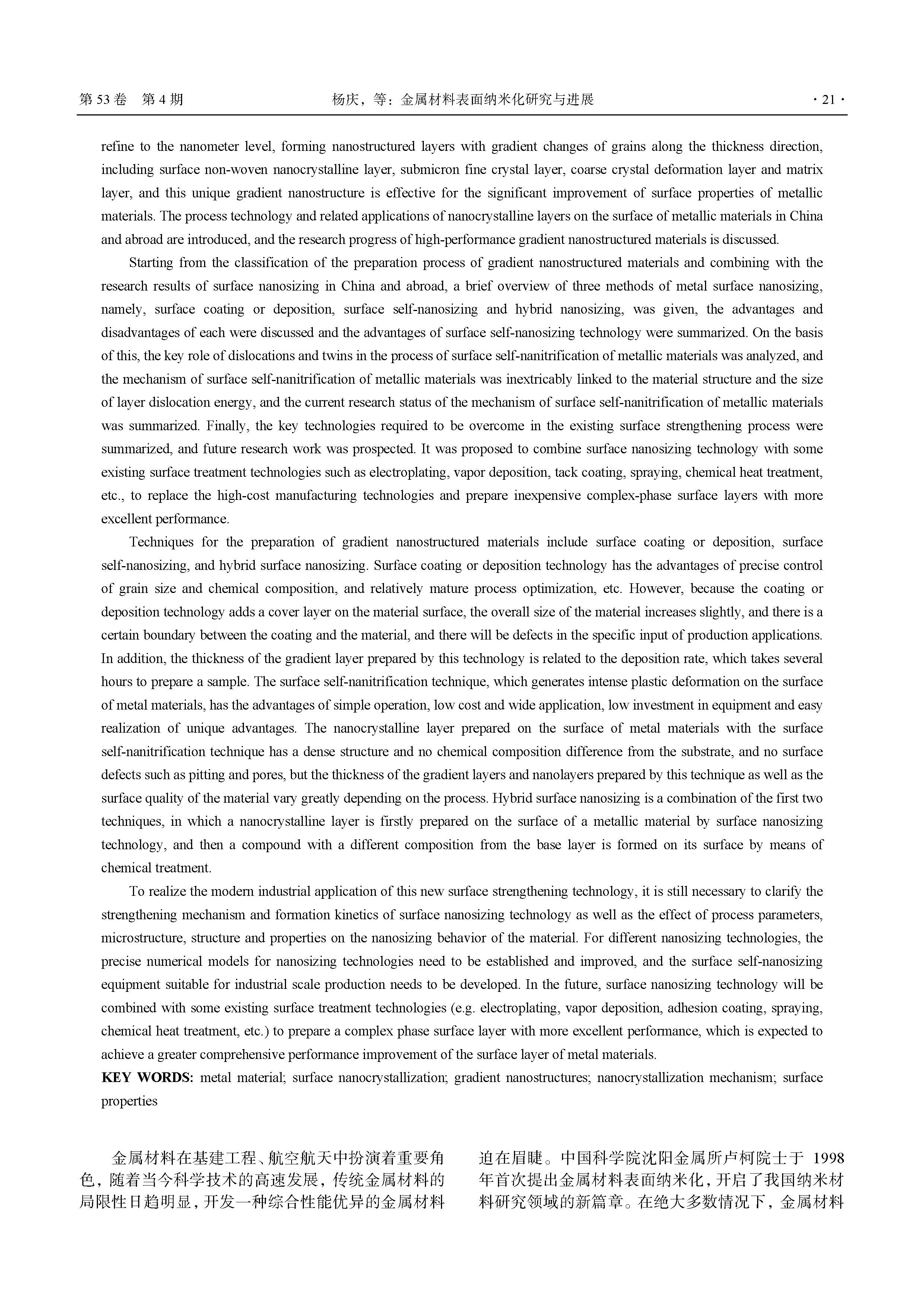 金属材料表面纳米化研究与进展