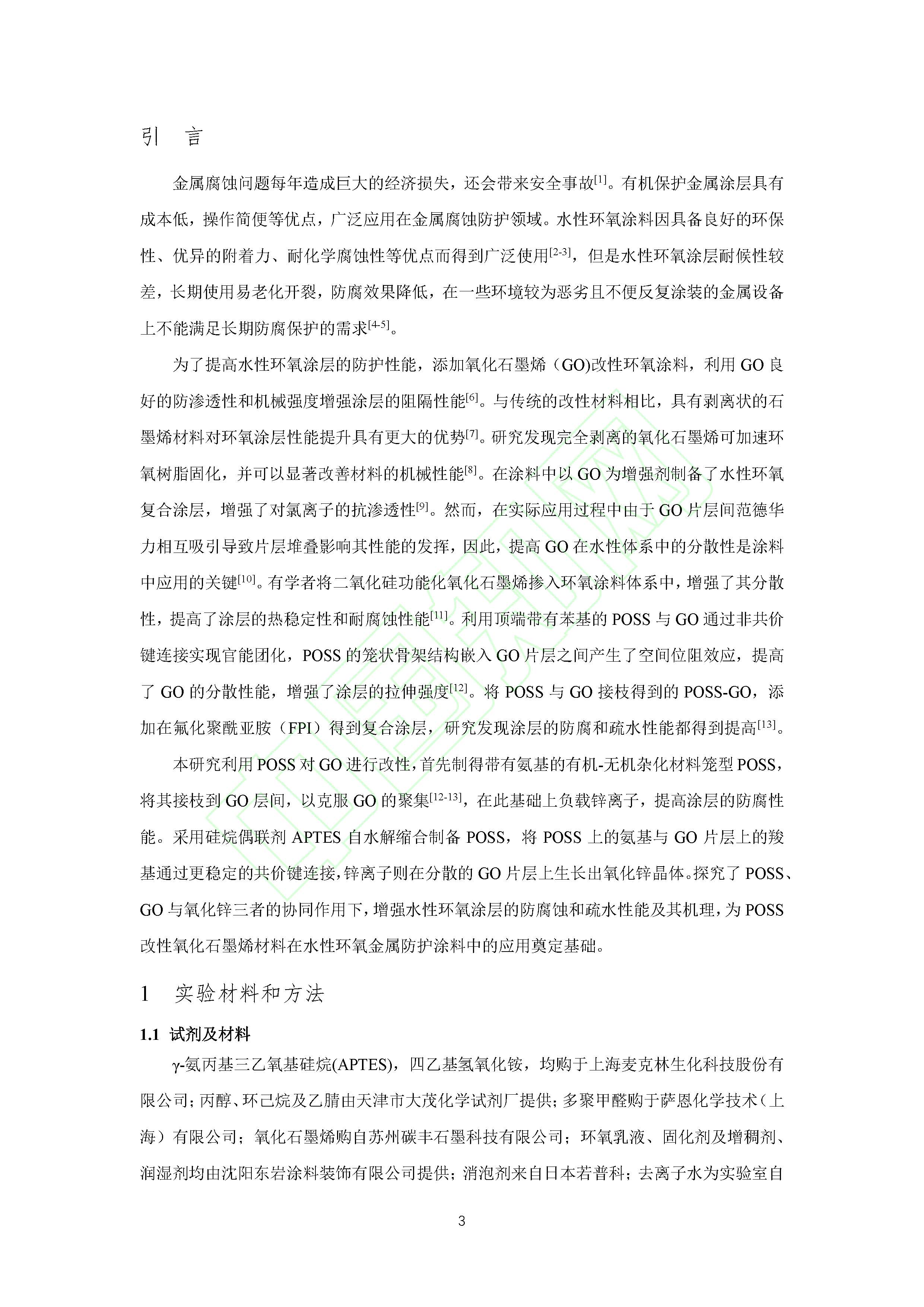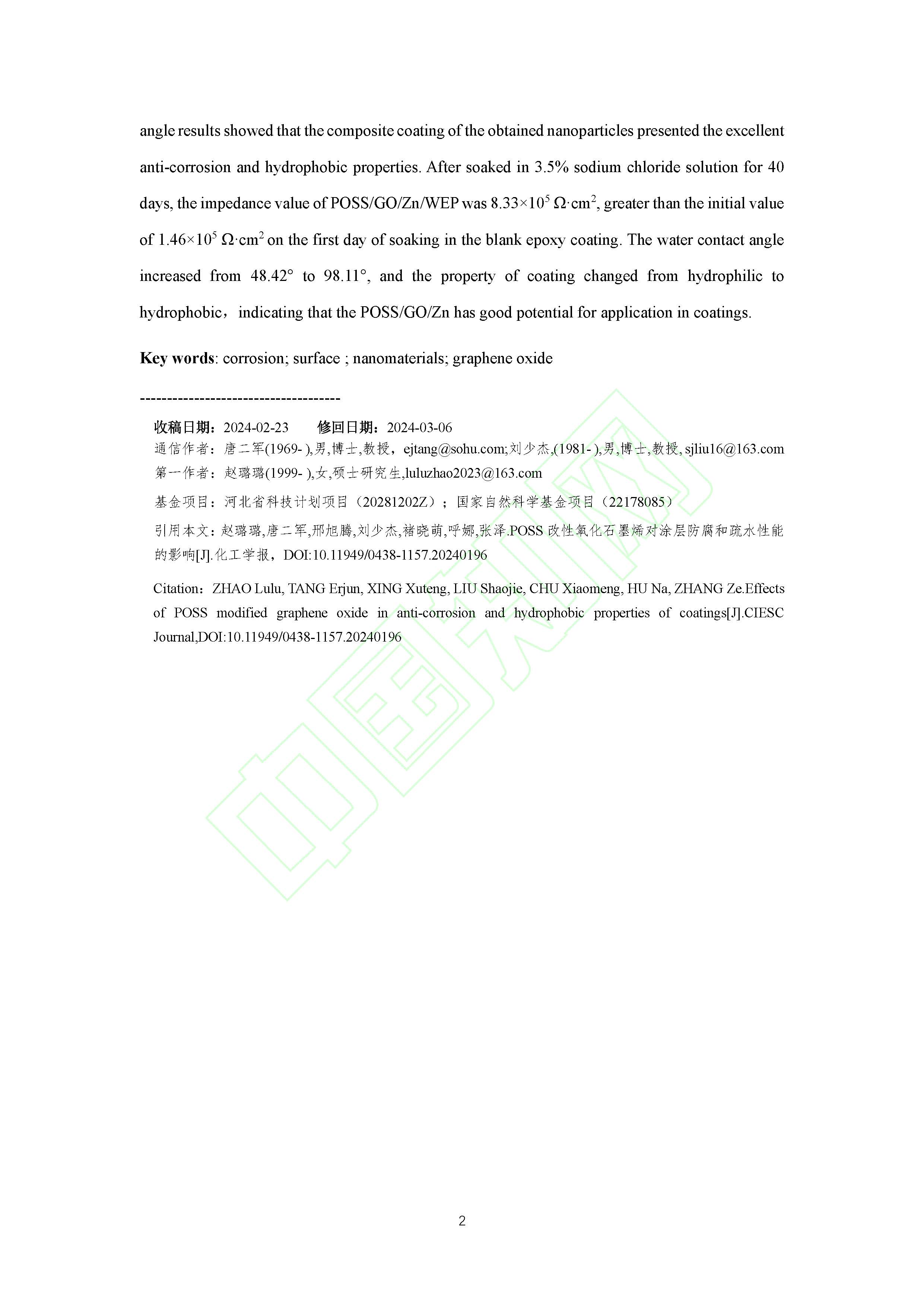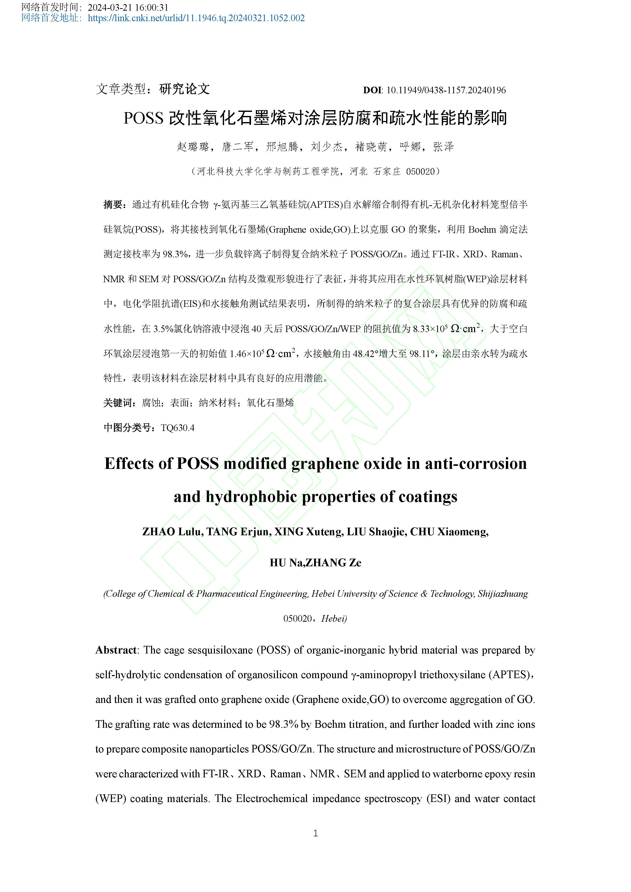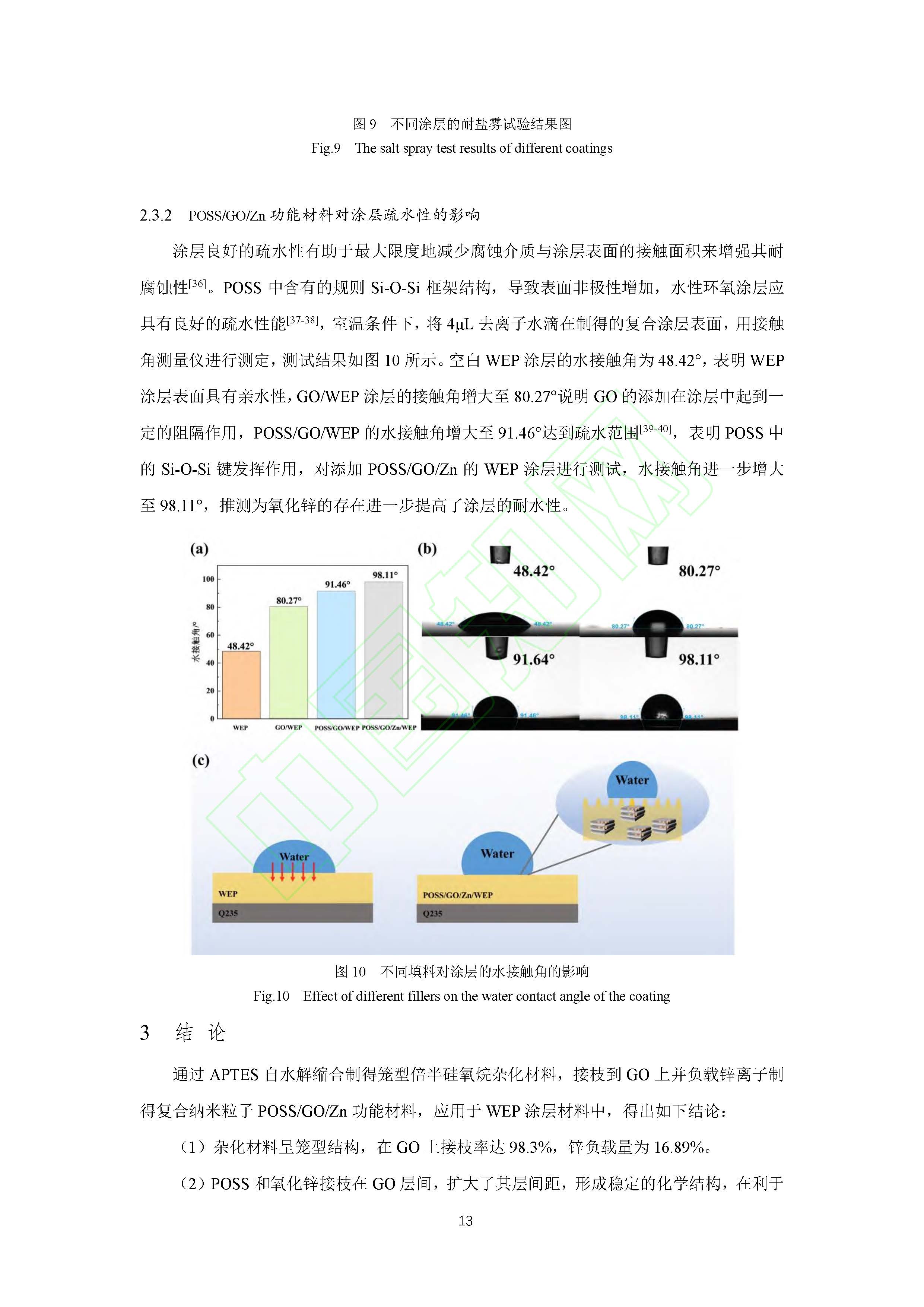 POSS改性氧化石墨烯对涂层防腐和疏水性能的影响