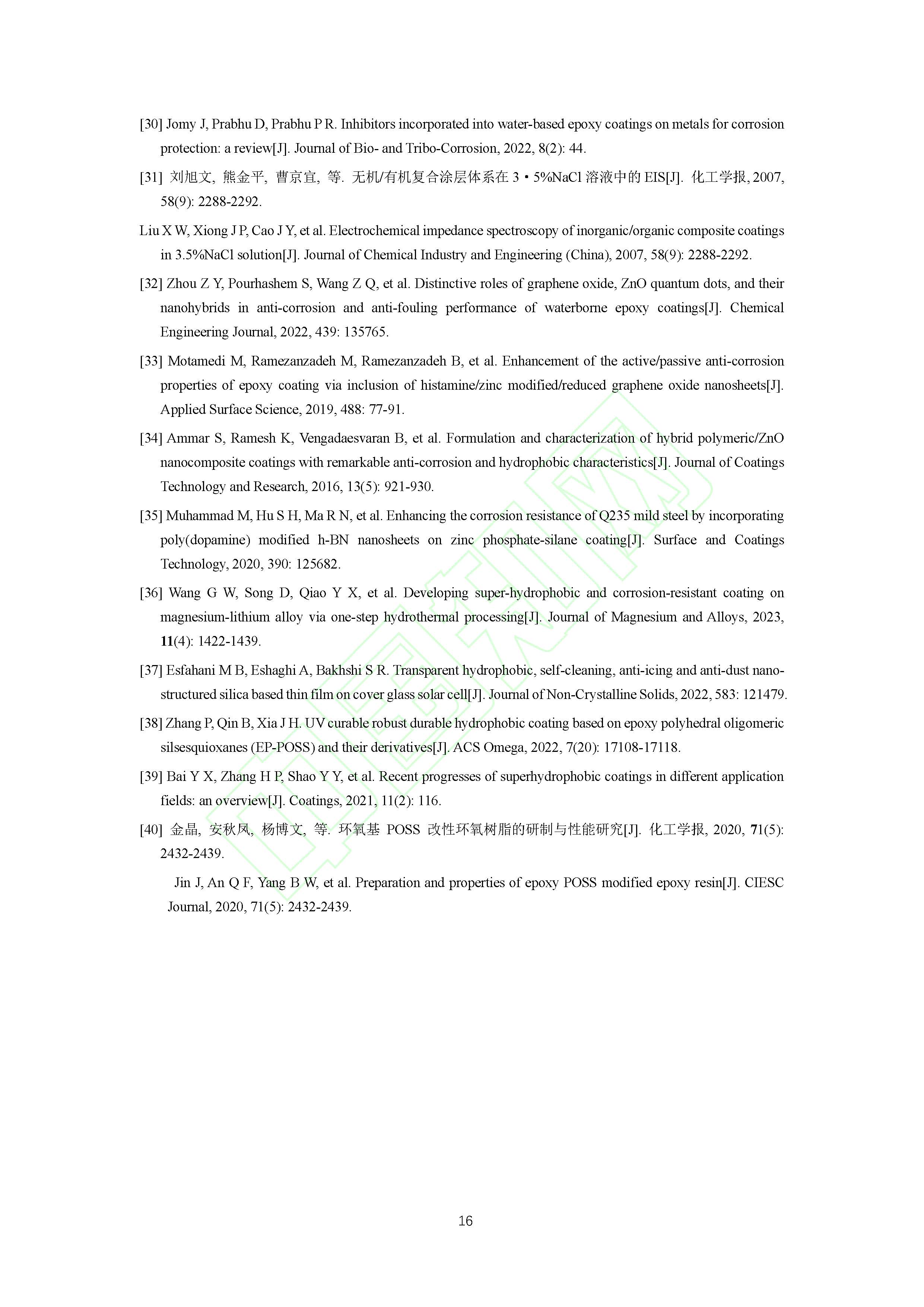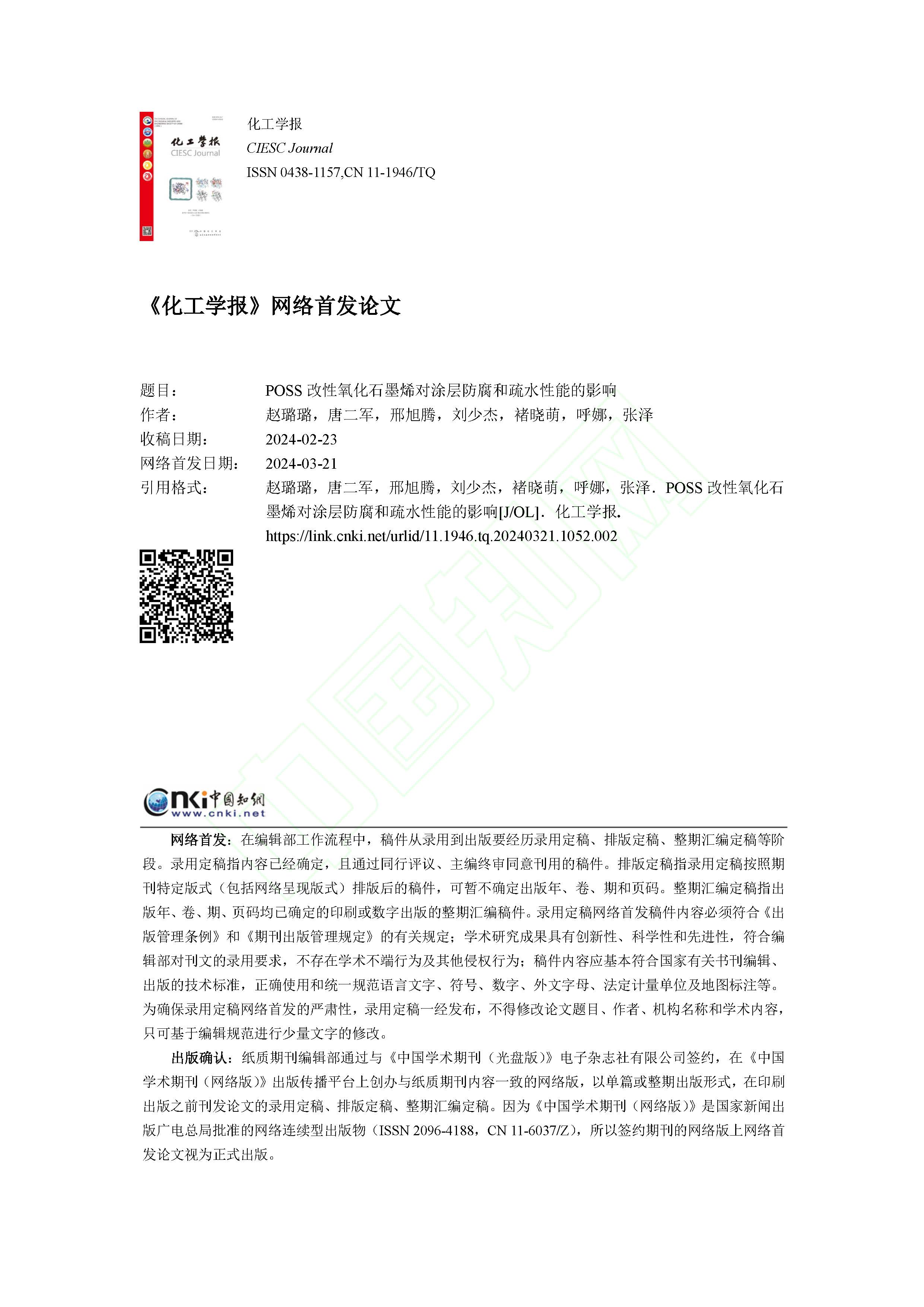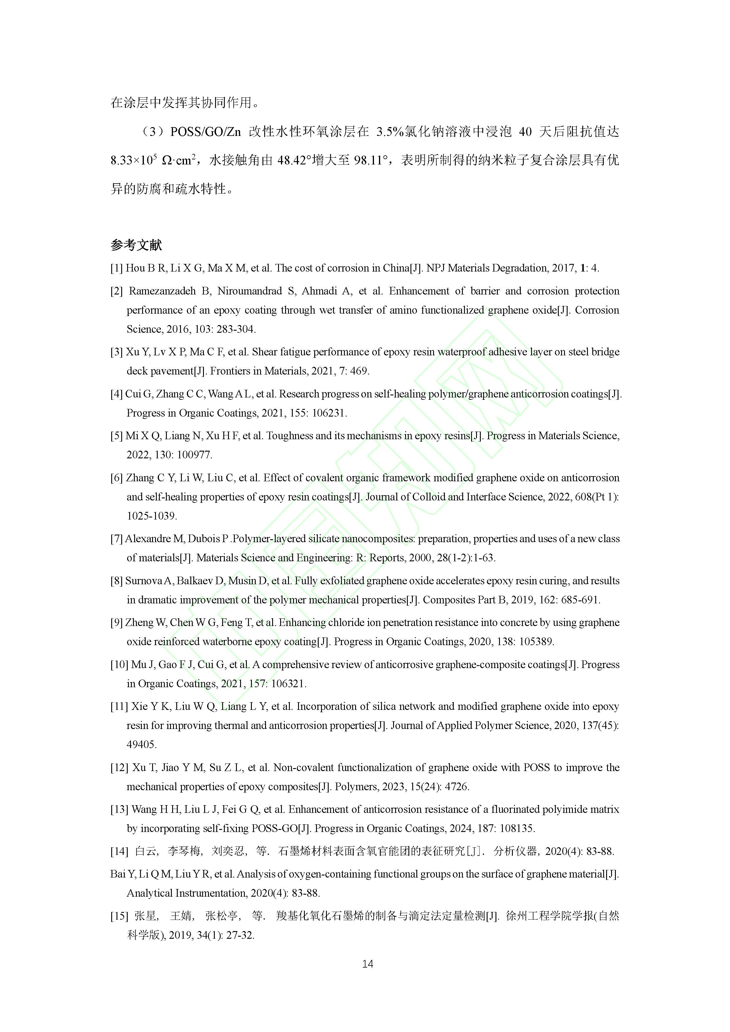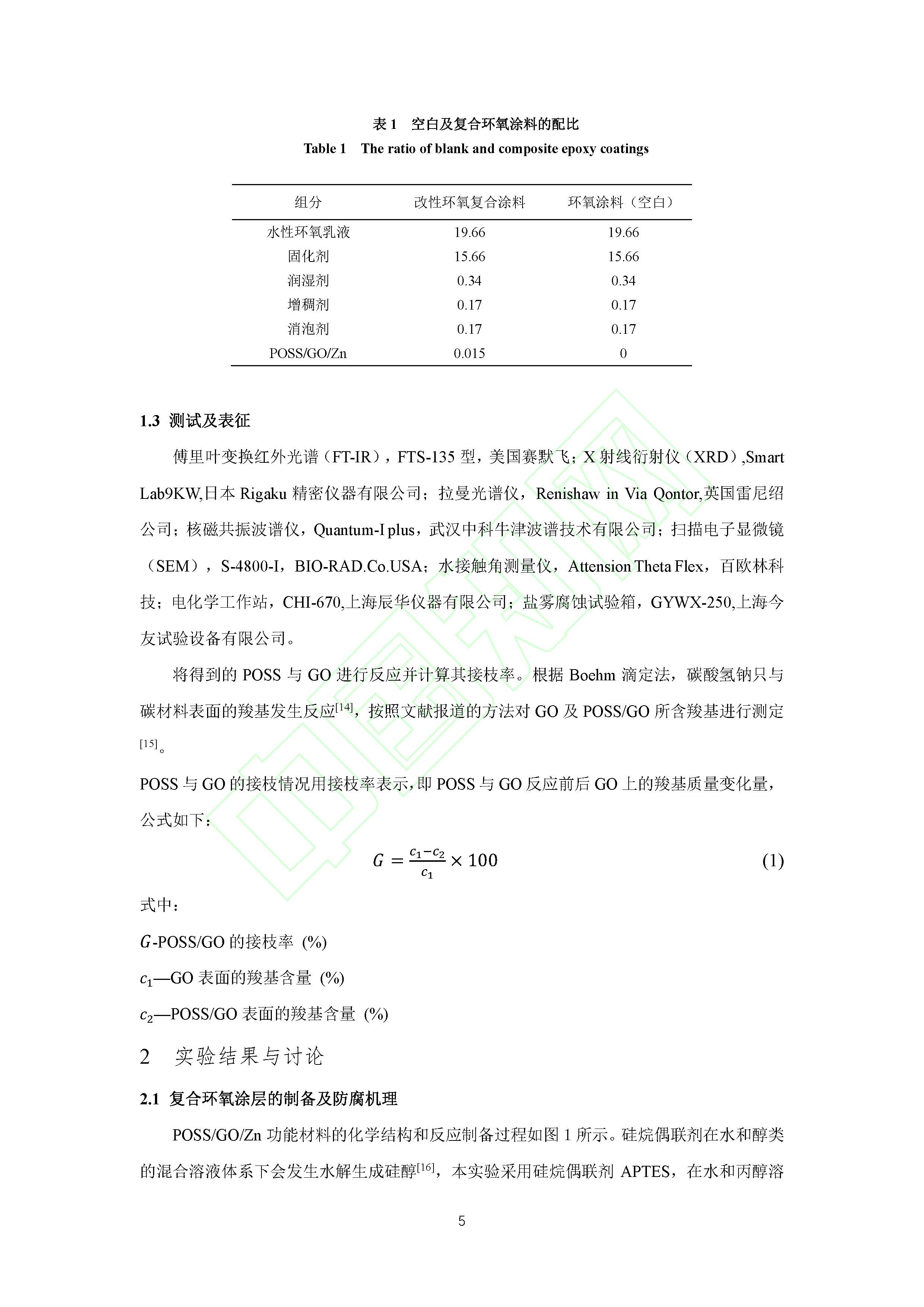 POSS改性氧化石墨烯对涂层防腐和疏水性能的影响
