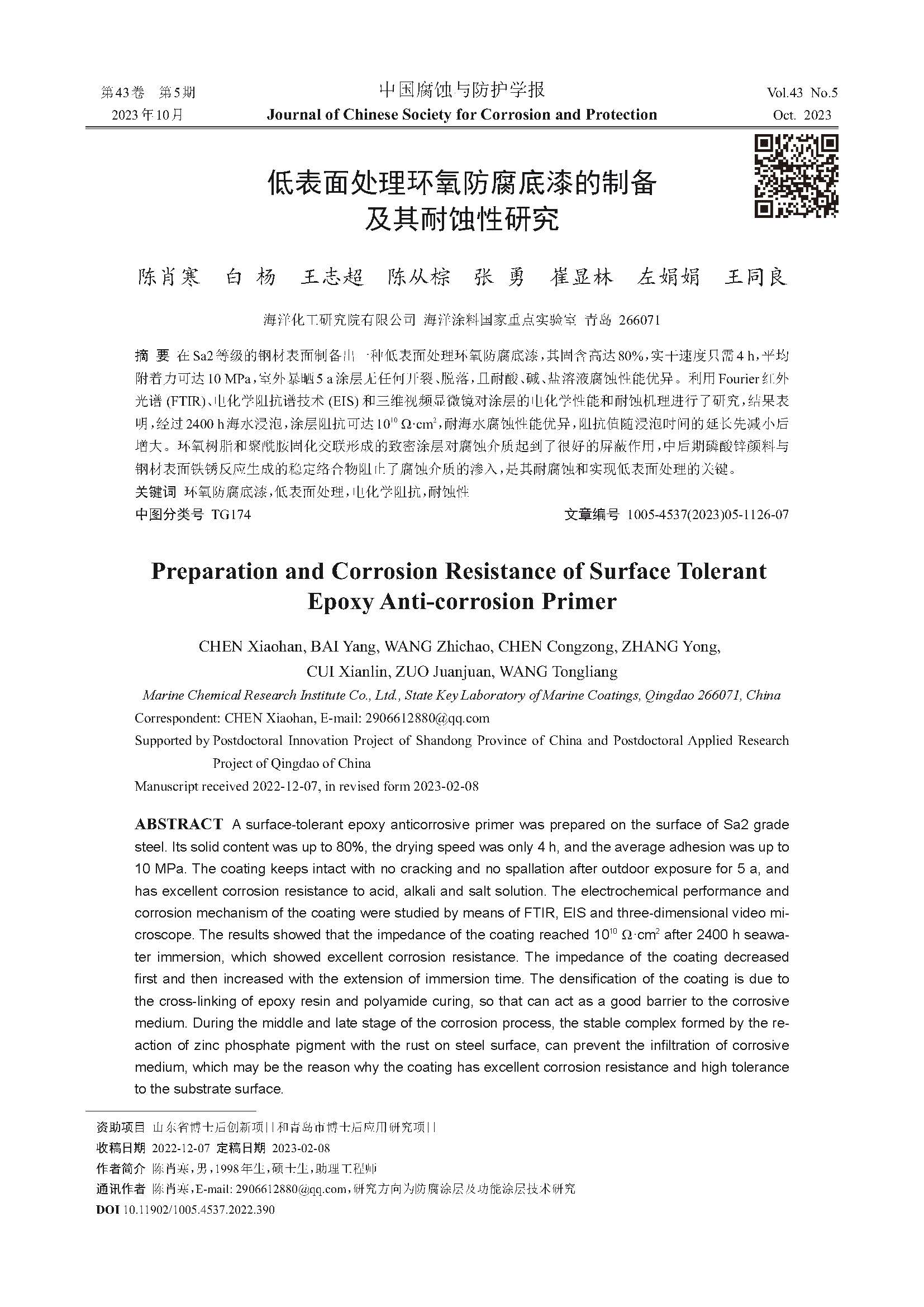 来源:中国腐蚀与防护学报
