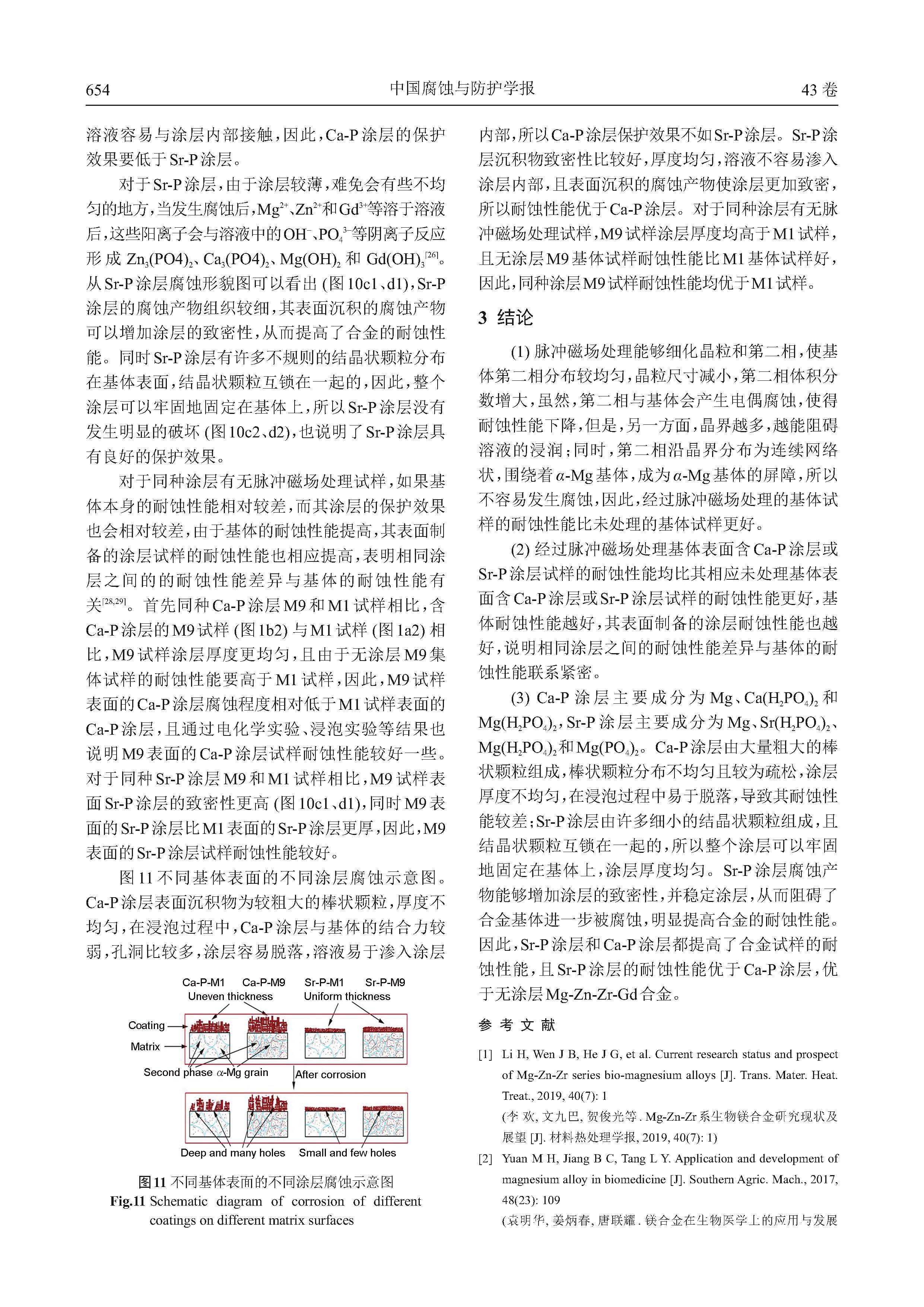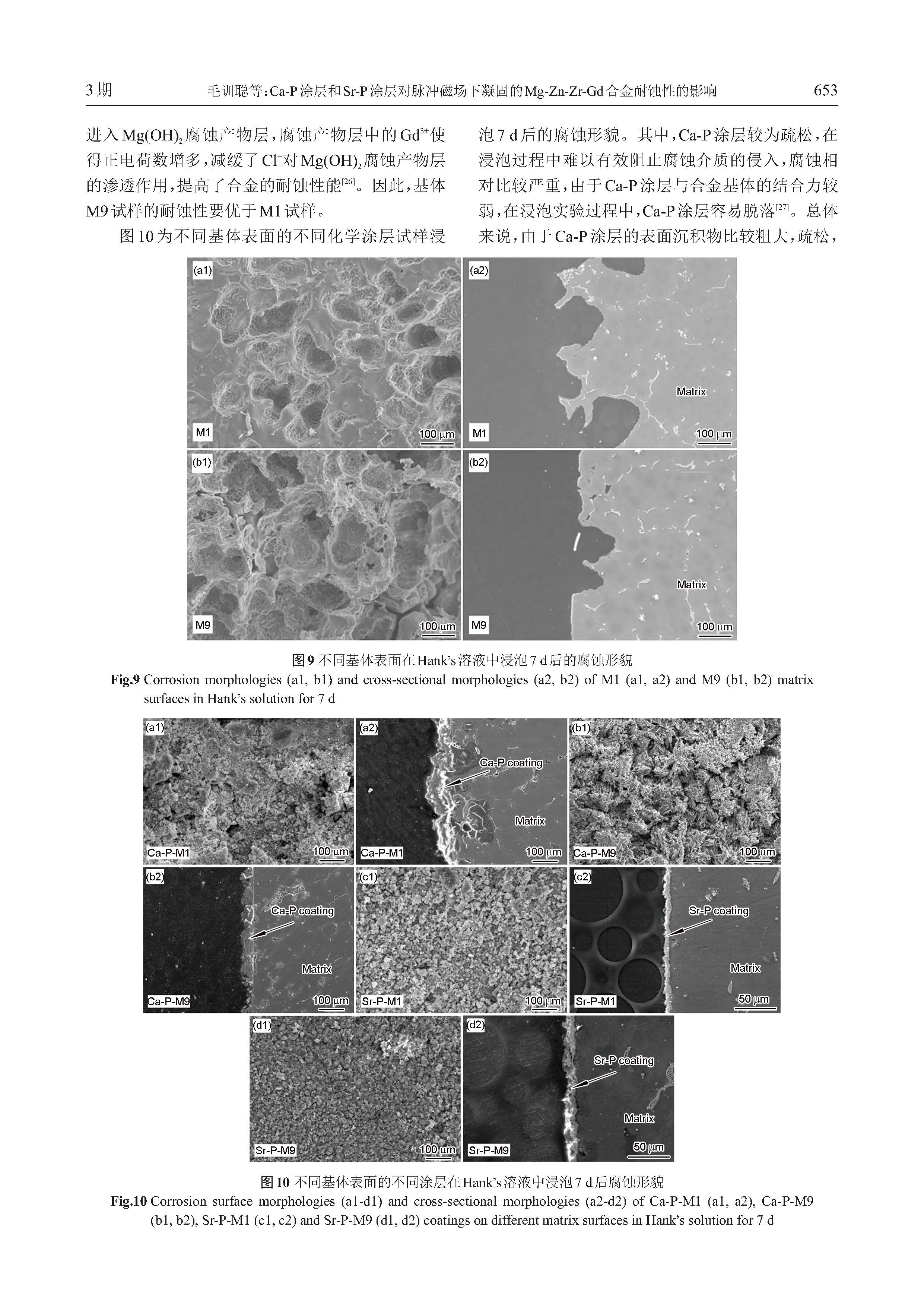 Ca-P涂层和Sr-P涂层对脉冲磁场下凝固的Mg-Zn-Zr-Gd合金耐蚀性的影响