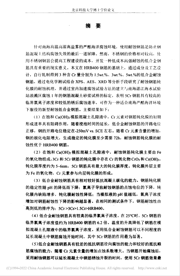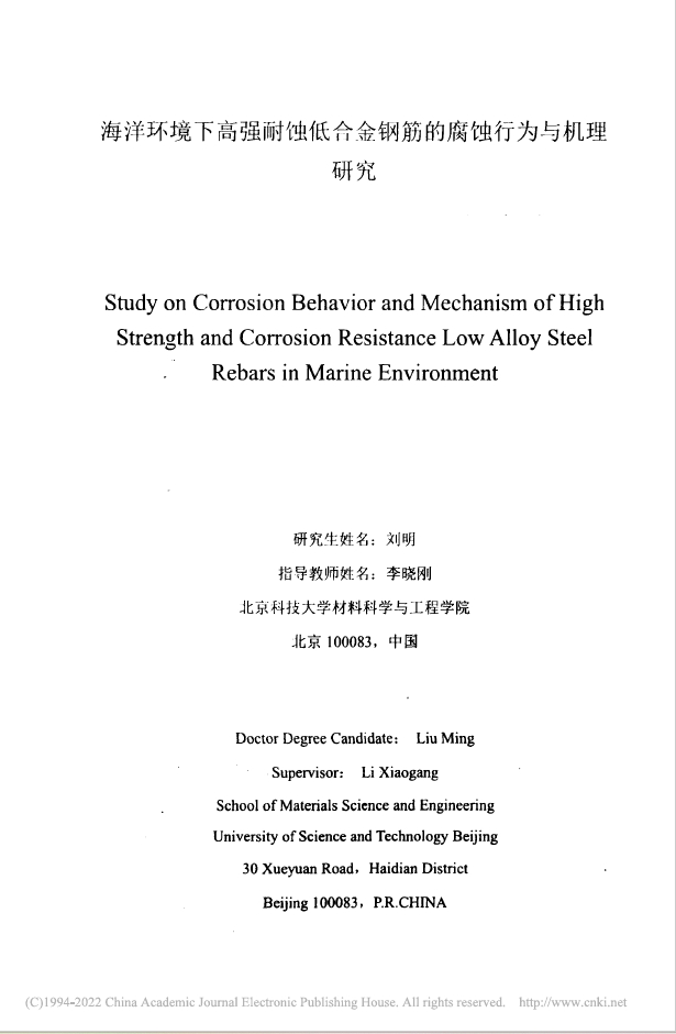 海洋环境下高强耐蚀低合金钢筋的腐蚀行为与机理研究_刘明.pdf