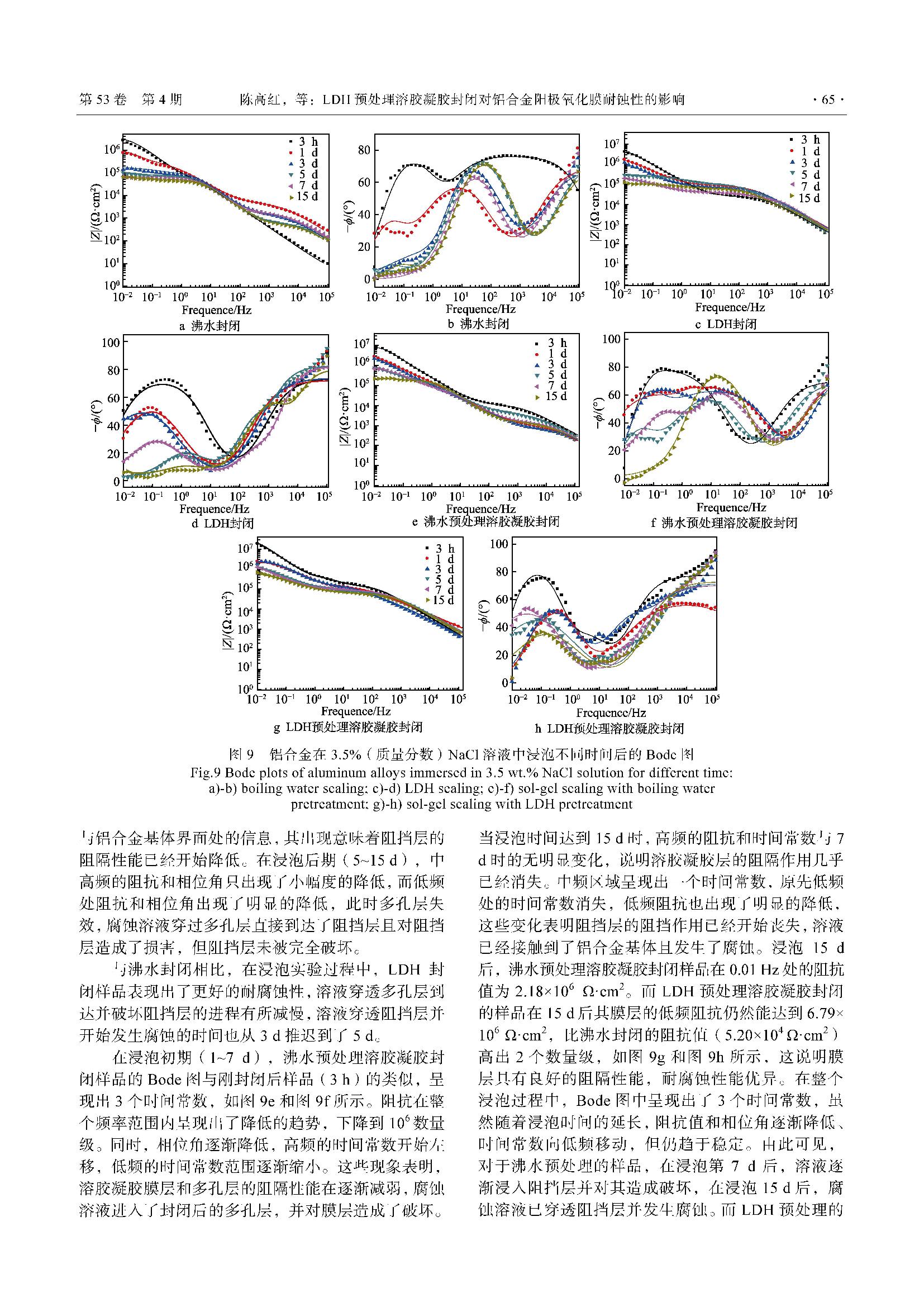 LDH预处理溶胶凝胶封闭对铝合金阳极氧化膜耐蚀性的影响