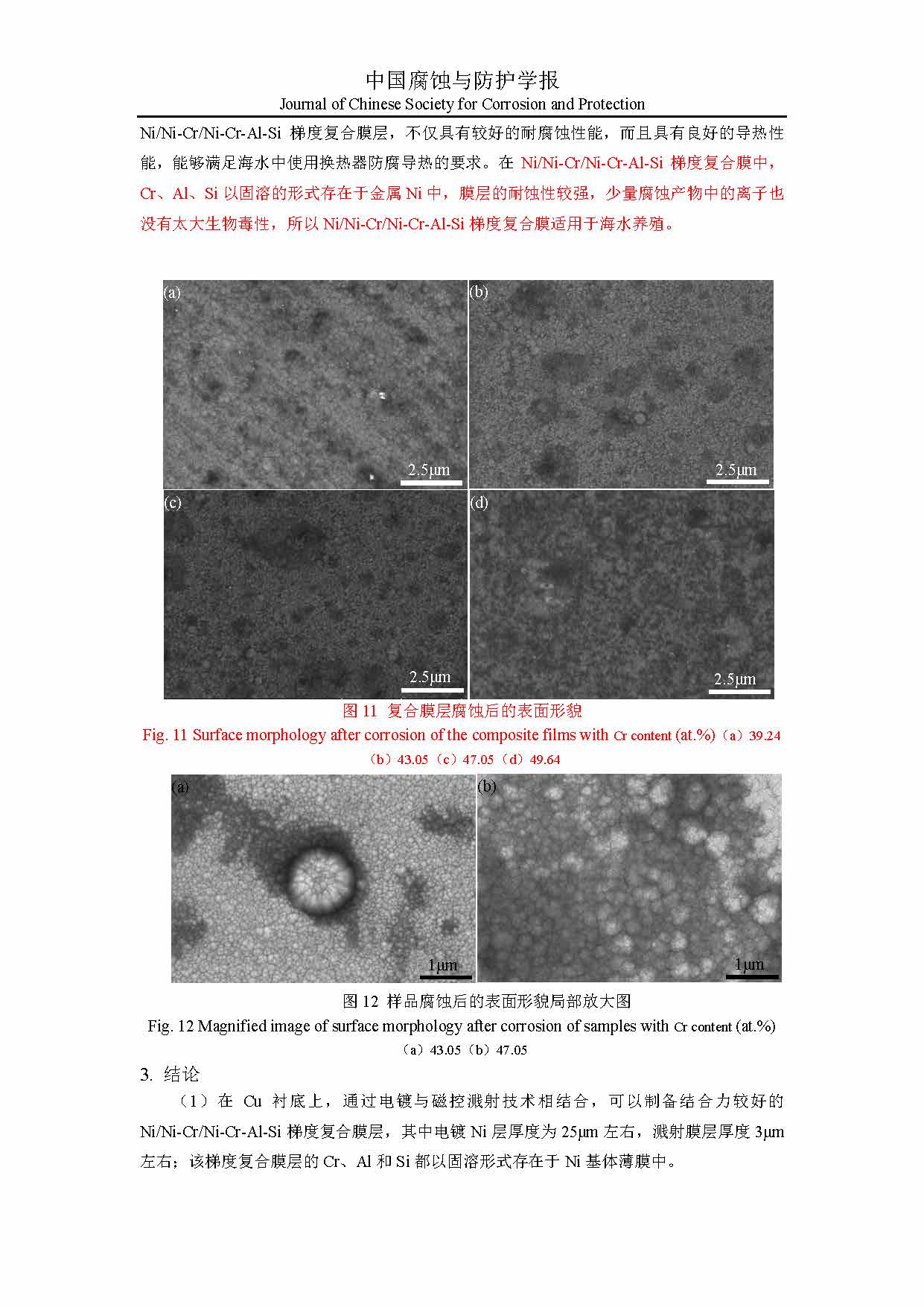 来源:中国腐蚀与防护学报